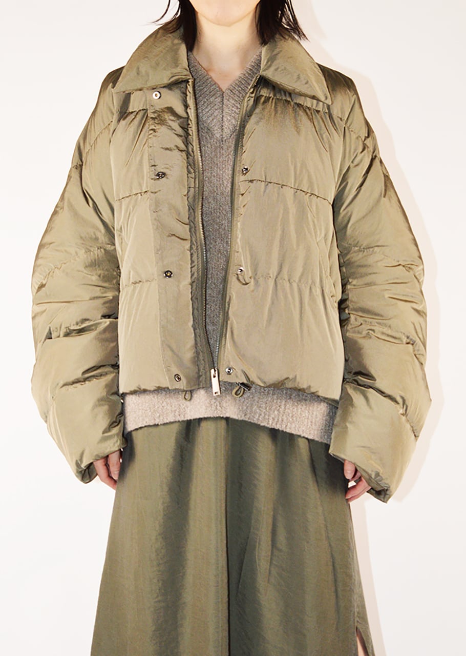 ステッチを効かせたミニマルなダウンジャケット。丸みを出したやや短めのシルエットに、袖はあえて少し長めにすることでバランス良く仕上がっています。ボリュームのあるボトムとも相性良く、様々なスタイリングに着こなし可能です。