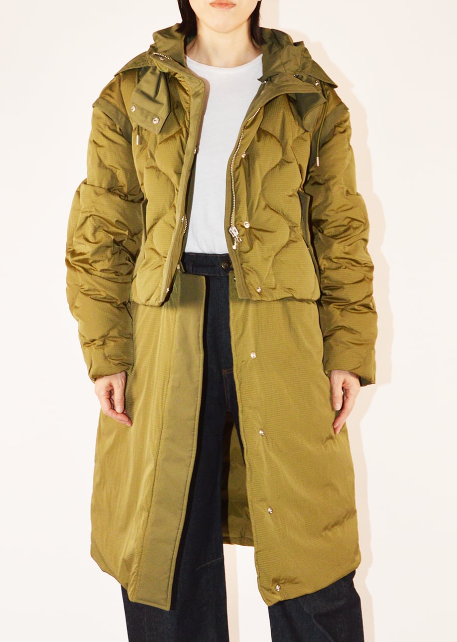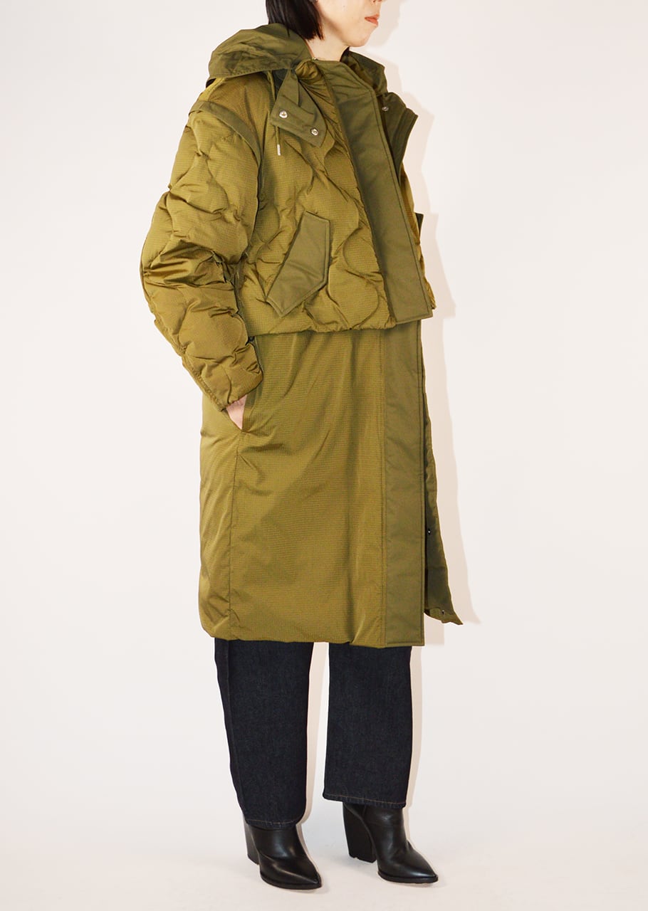 スタイリッシュな秋冬の装いを演出するナイロンキルティングジャケット。ゆったりとしたシルエットは、ジッパーによってショート丈にすることもでき、好みのアレンジが楽しめる自由度の高い1着。キルティング生地の風合いとフライフロントでカジュアル過ぎず、品よく着られるのもポイント。