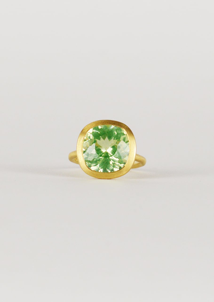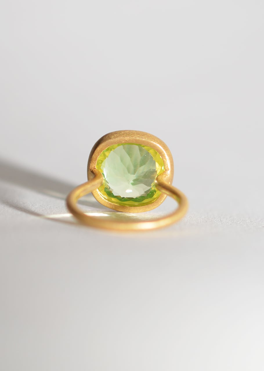 ありのままの石の輝きをそのまま楽しめるよう、シンプルに仕立てたカラーストーンリング。同じ石でも粒によってインクルージョンや色味が違い、眺めれば眺めるほどに個性を楽しめます。石の楽しみ方も多様化している現代、鮮やかな石、同じ石でもカットや色味が違うもの、インクルージョンの違い、表情豊かで希少性のある一点ものの素材を楽しめるのが魅力。近年進化した加工処理技術により、石の持つ色味を引き出し、同時に透明度もあげて処理をしたストーンとなります。