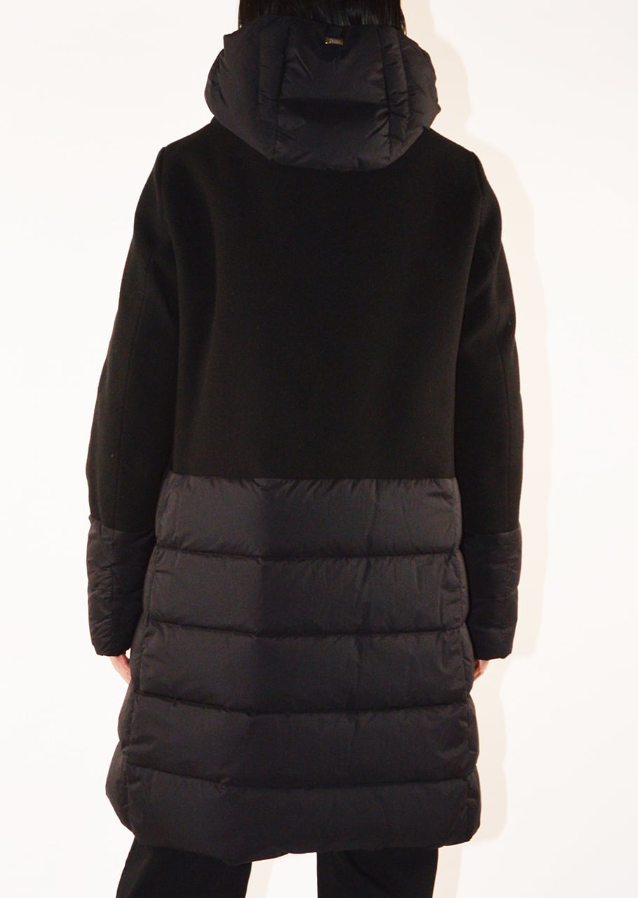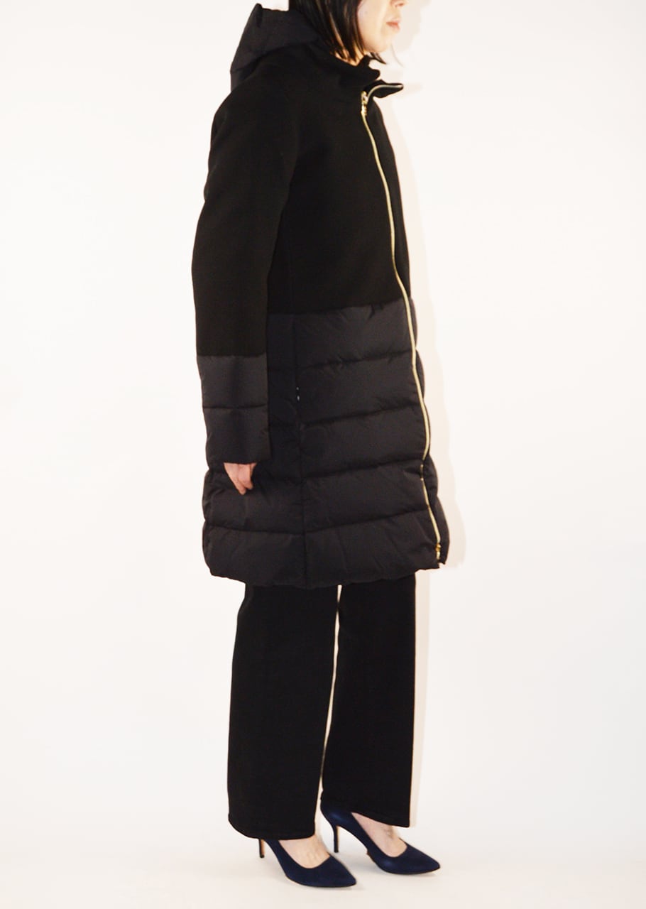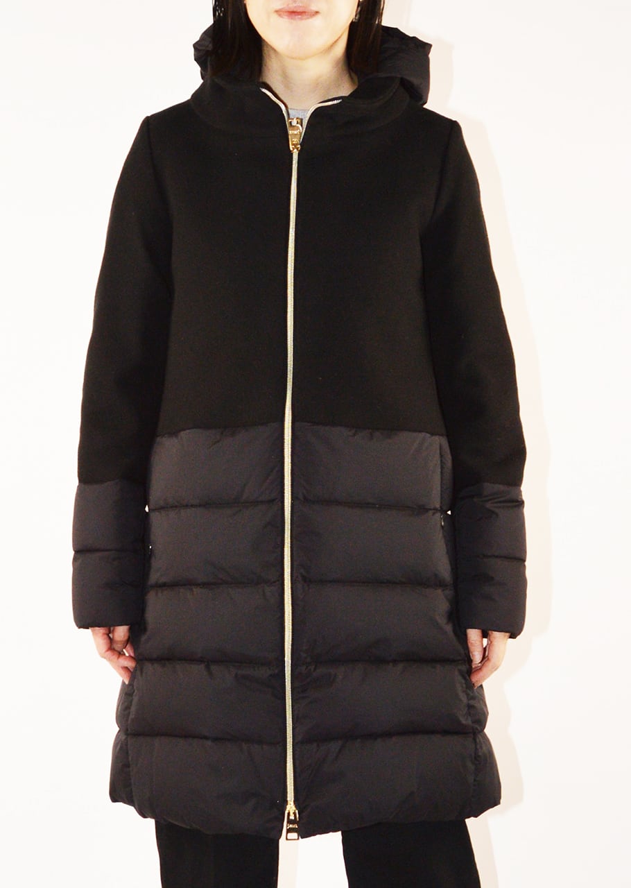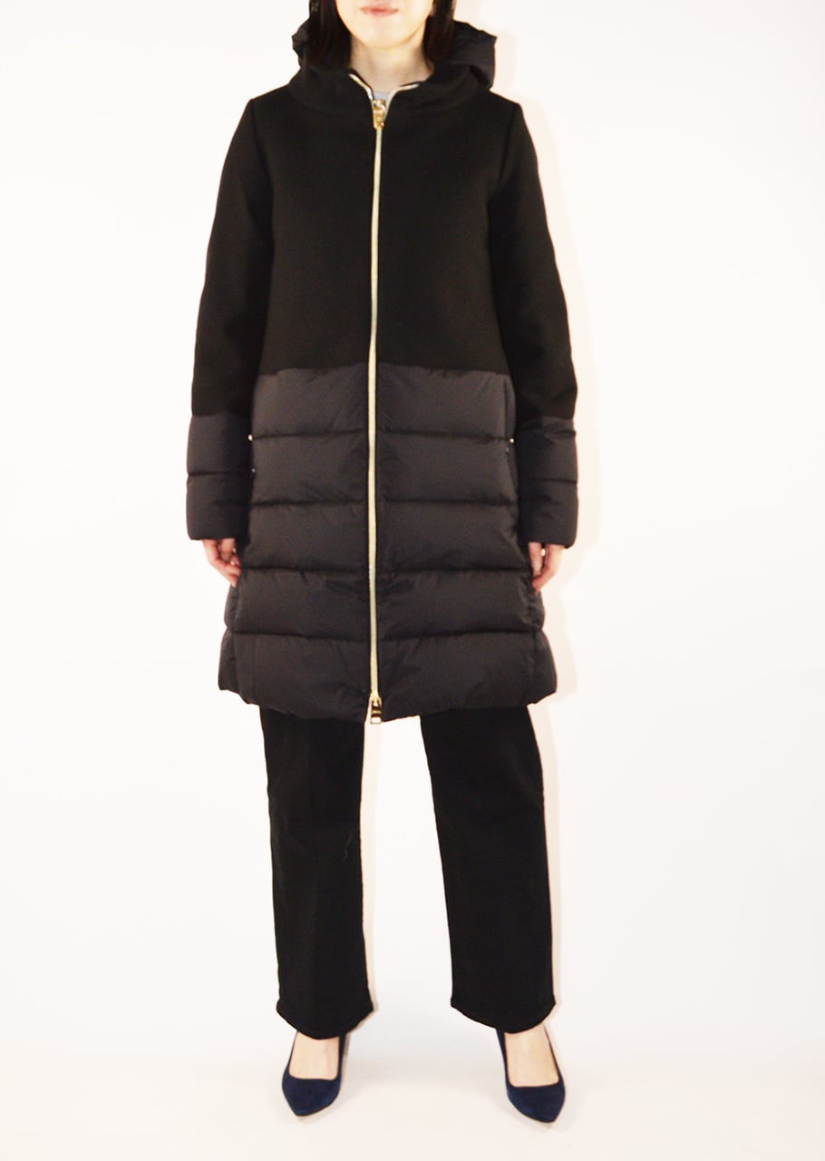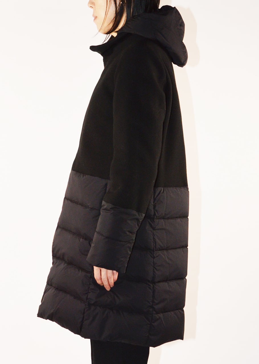 ナイロンとウールの切り替えデザインが印象的なダウンコート。着ぶくれしないすっきりとスタイリッシュなシルエットが完成、ウィンターシーズンのスタイリングの主役となるアウターです。
