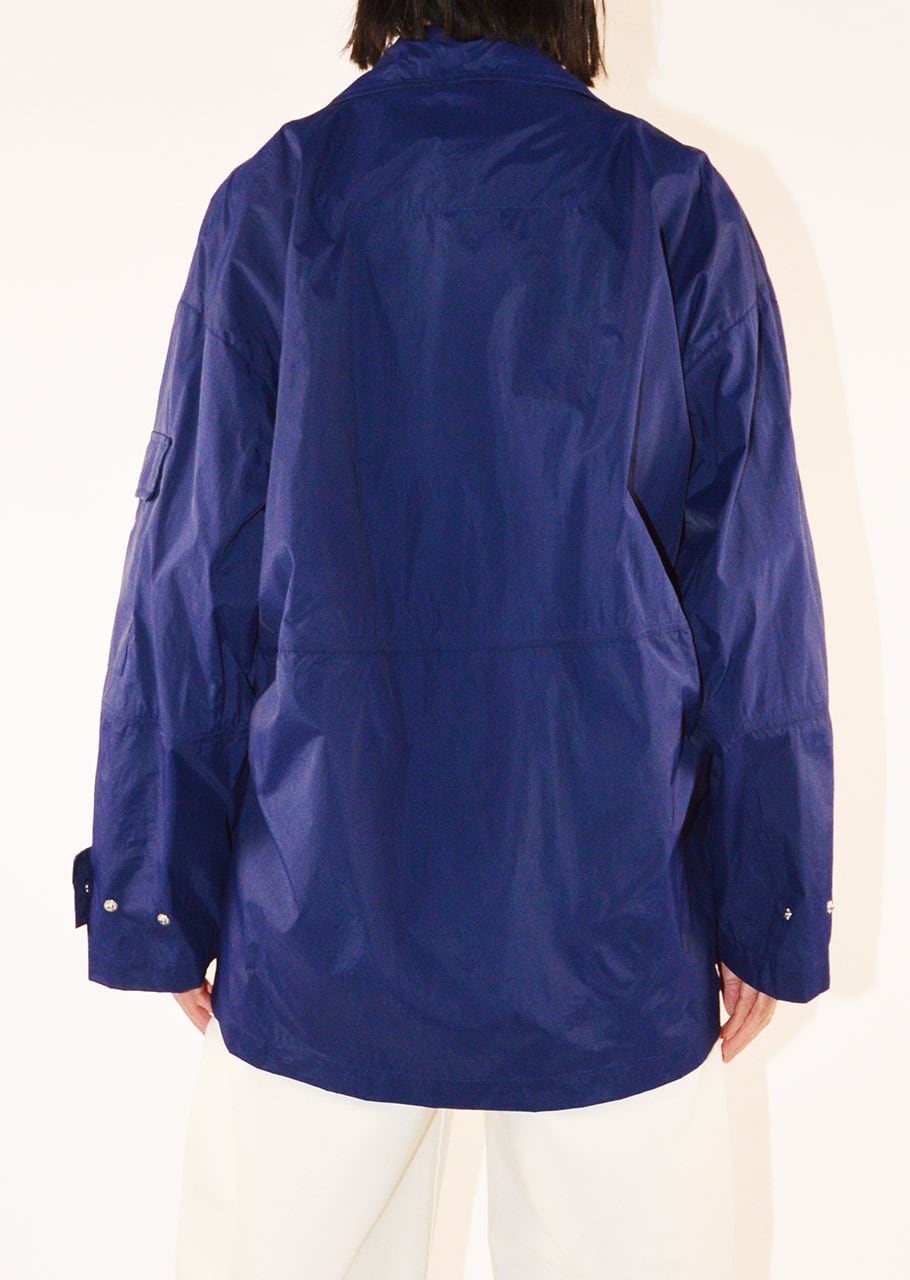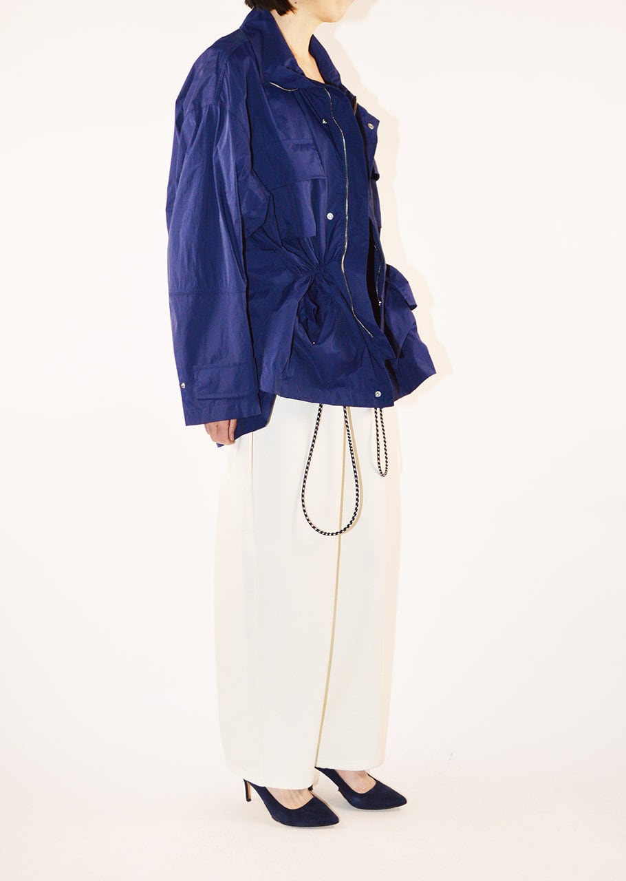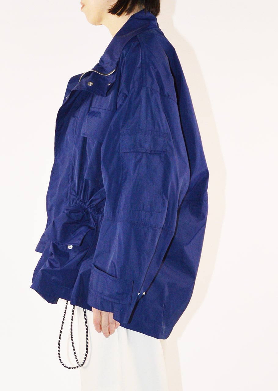 ナイロン100%のマウンテンパーカー。とても軽量で上品な光沢のある素材感。ボディラインは緩やかな前後差のあるシルエット。前身頃のウエストにあしらわれたドローコードでボディラインの調整が可能です。