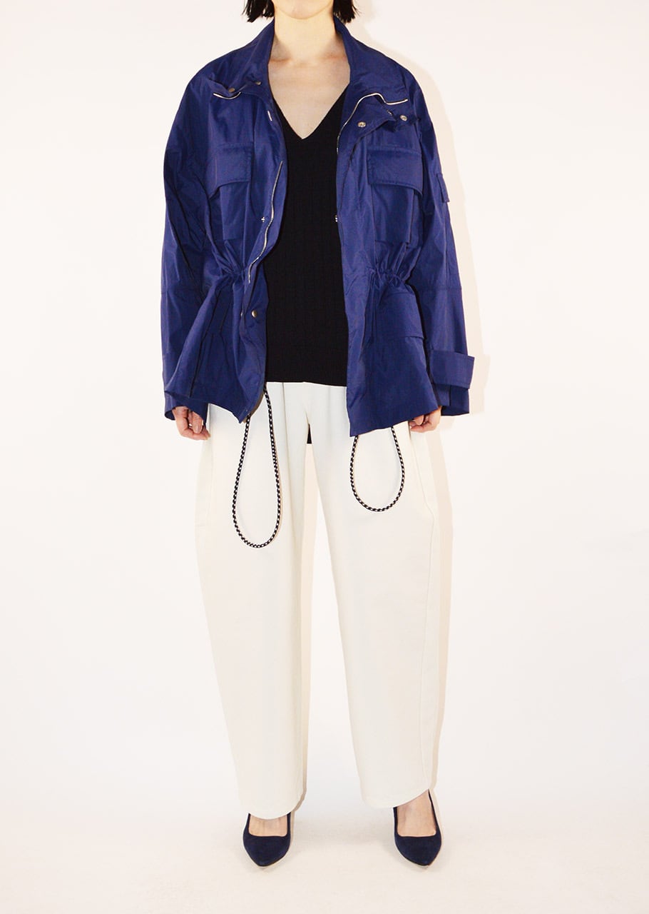 スポーティなマウンテンパーカーをベースにポケットやドローコードがポイントとなったデザイン。スカートやドレスと合わせたテイストミックススタイルもおすすめです。
