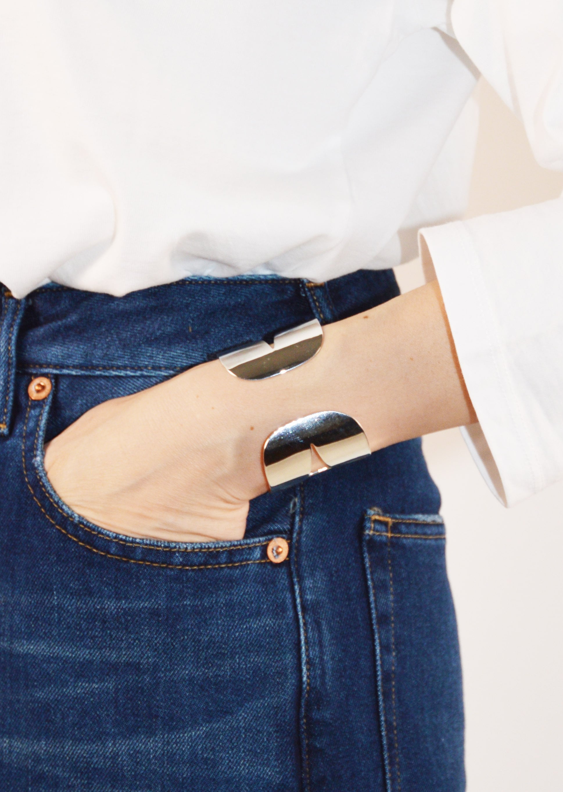 カジュアルな装いにはもちろん、ドレスにも匹敵する上品さも併せ持つバングル。同ブランドのリングやピアスと合わせたり、重ね付けもおすすめです。