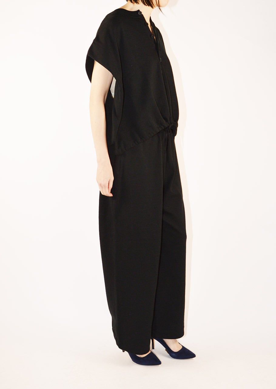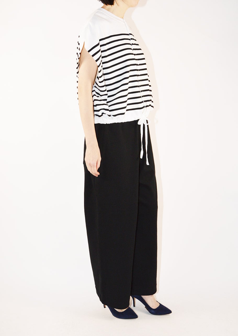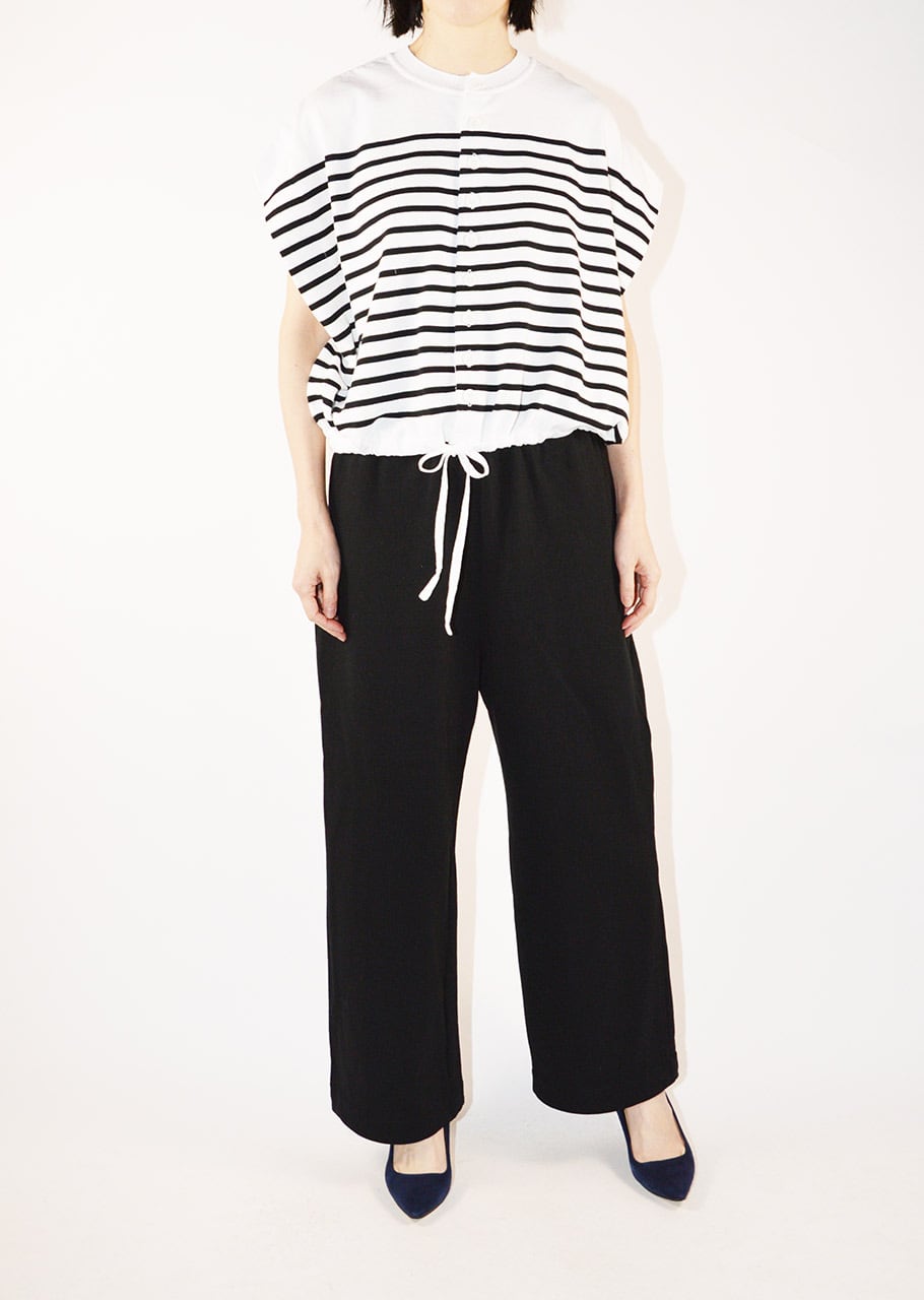 裾に施されたドローコードでボリューム感を調整できるデザイン。同素材のパンツを合わせたセットアップスタイルもおすすめです。
