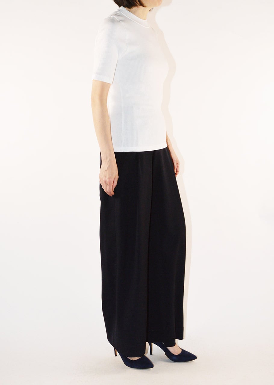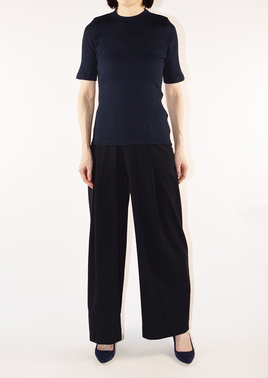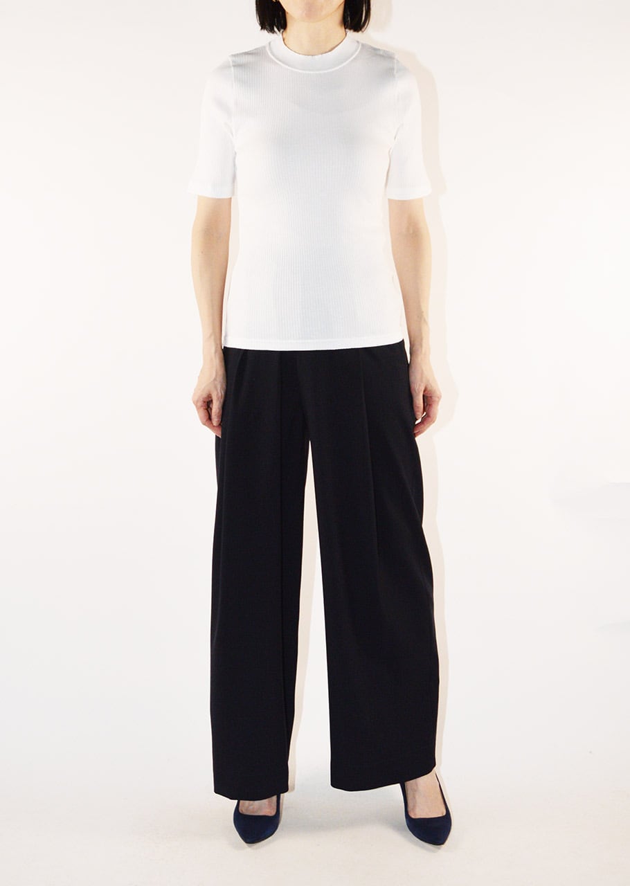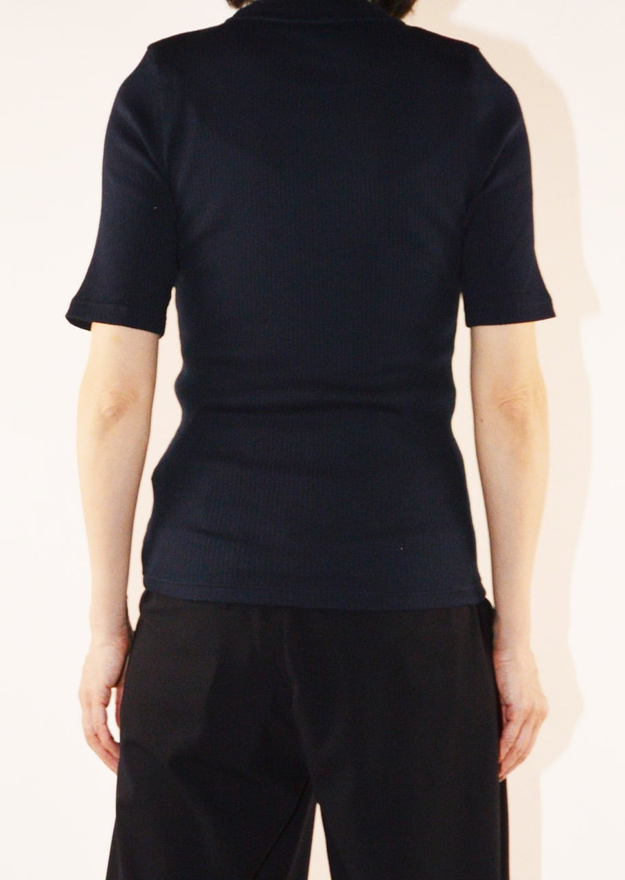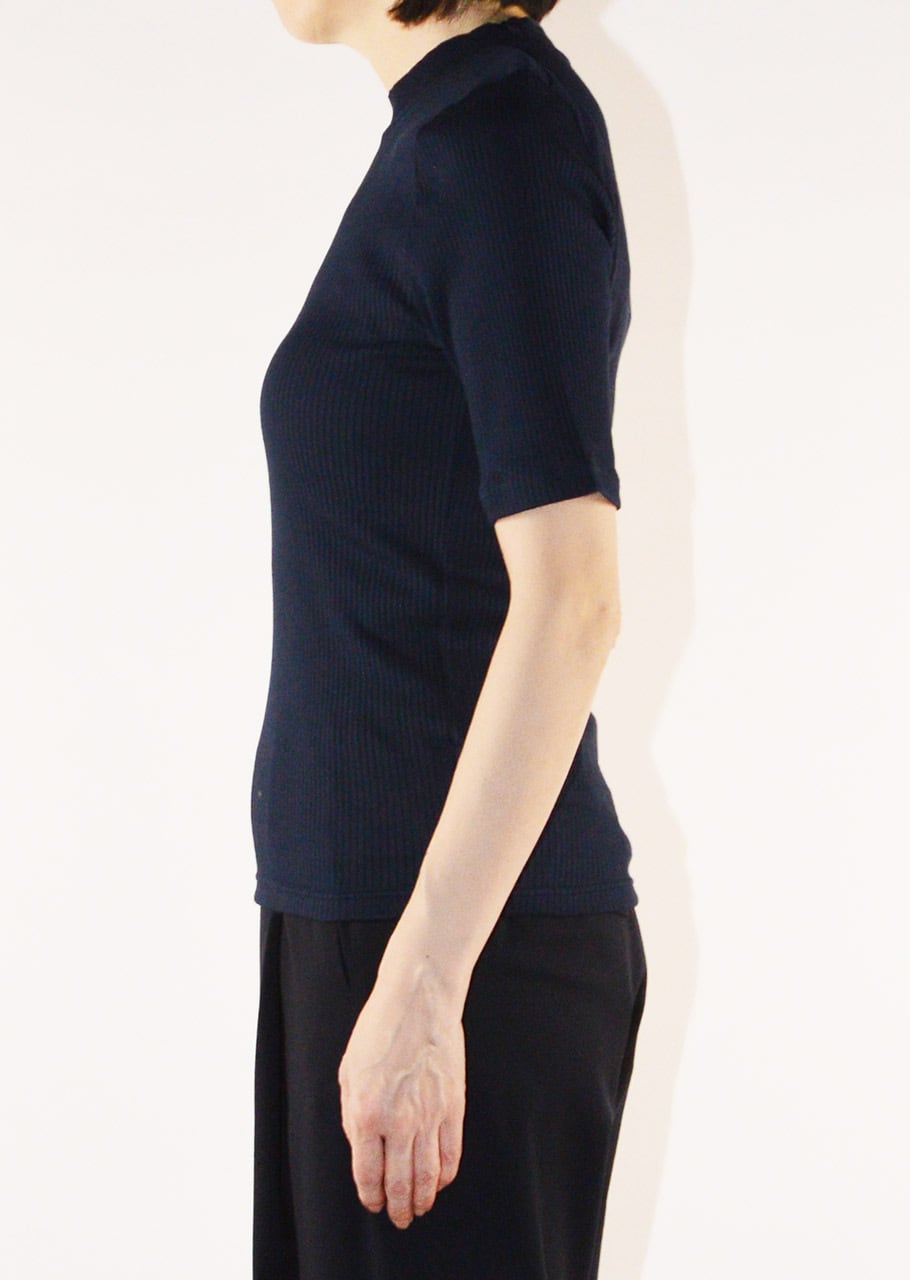 オーガニックコットンのリブクルーネックTシャツ。上質な素材をつかい美しい編み立てで仕上げられたモデル。ネックのリブをしっかりさせることでニットのような表情に仕上げられています。五分袖丈になっていて腕周りをすっきり見せてくれるバランスもうれしい。