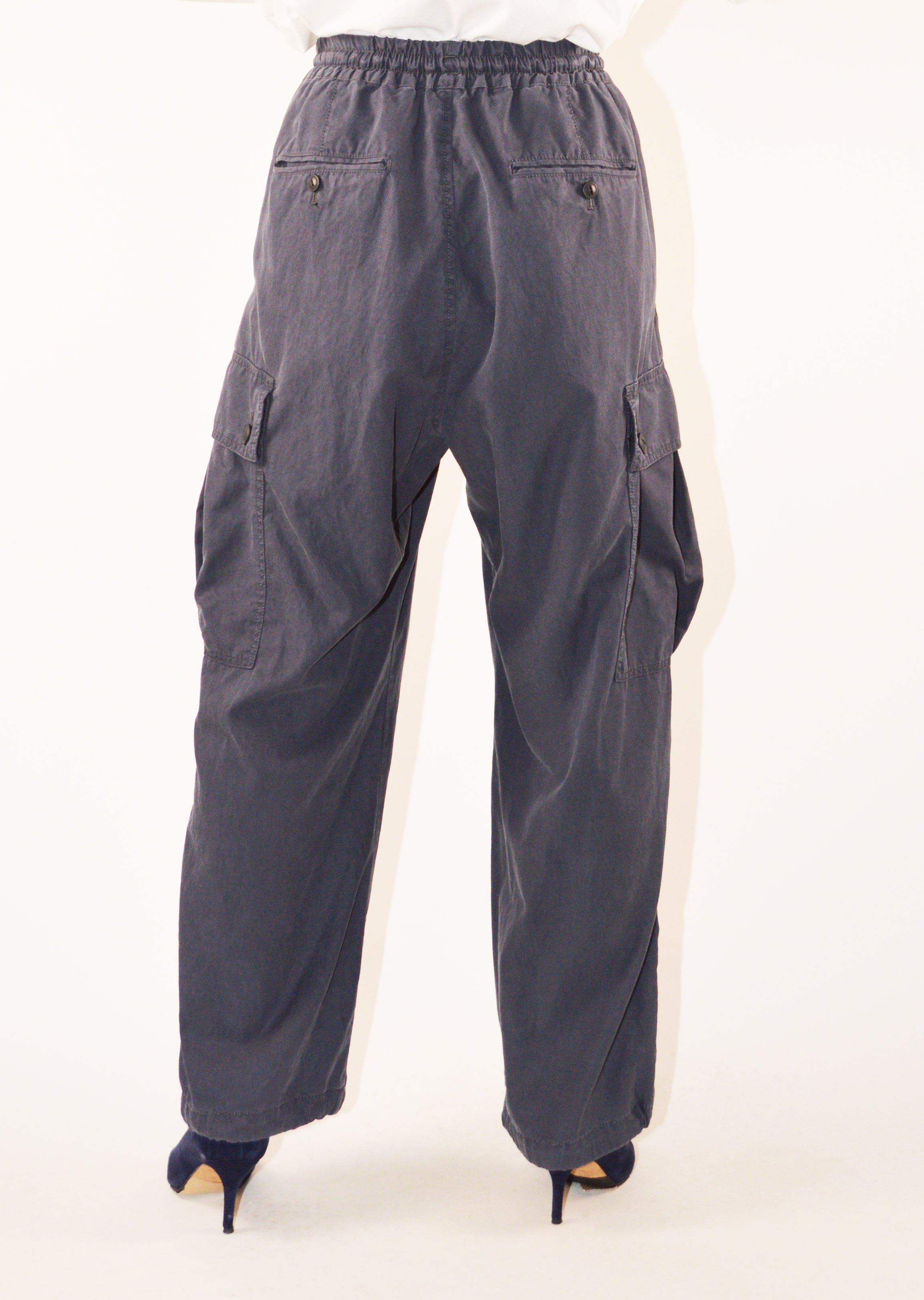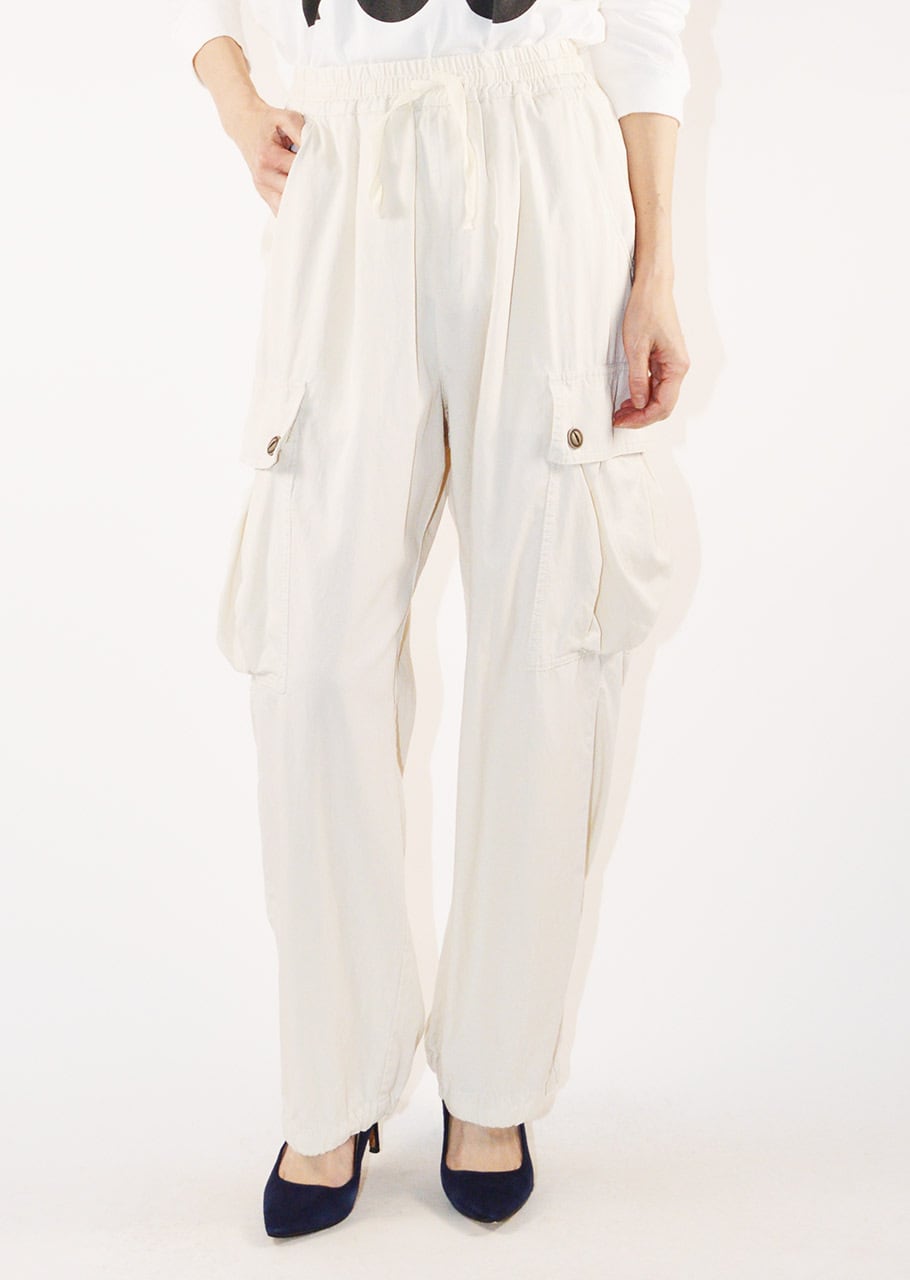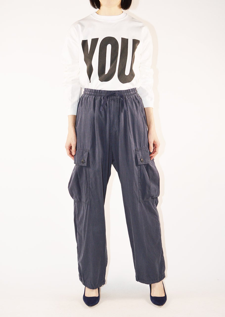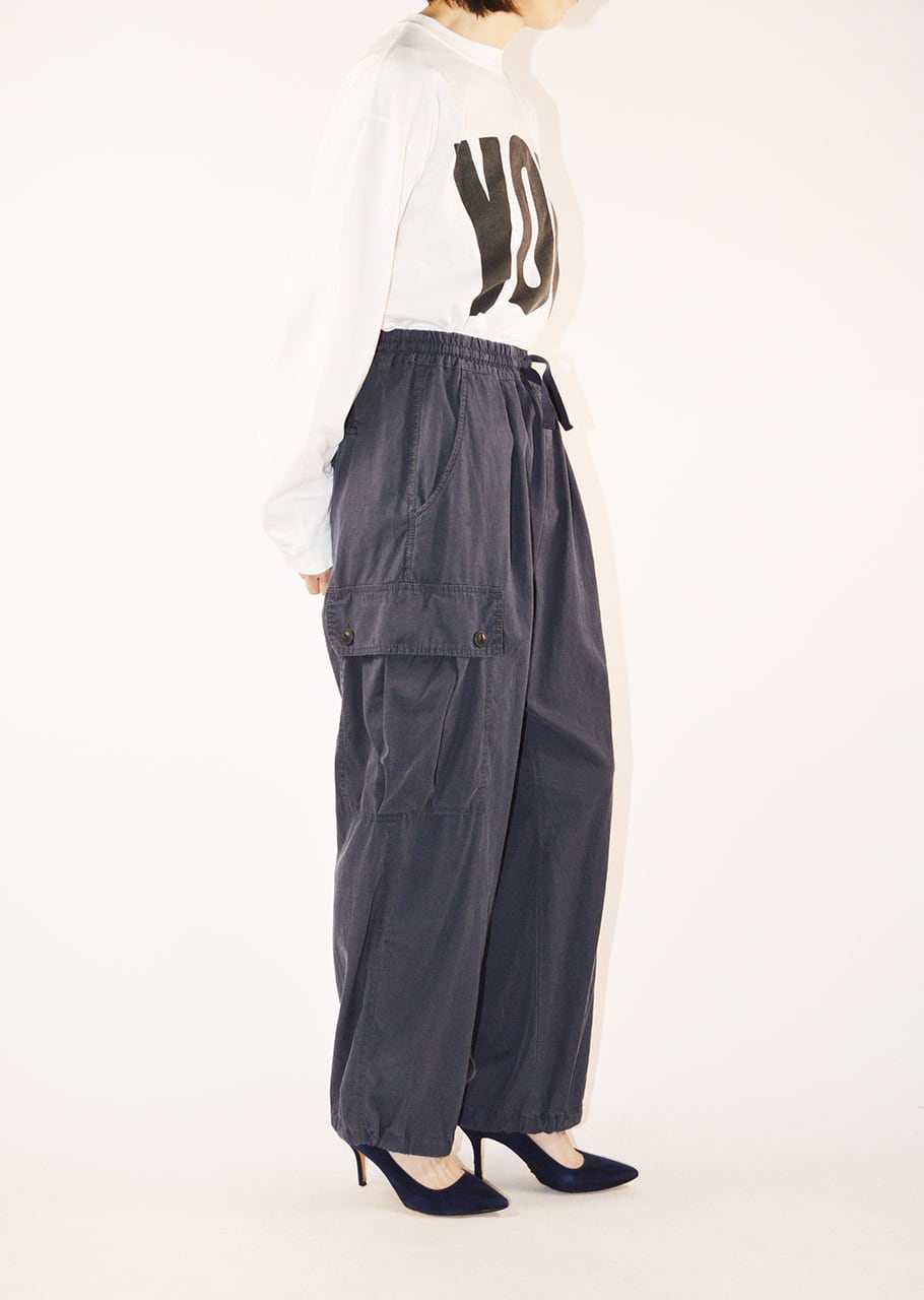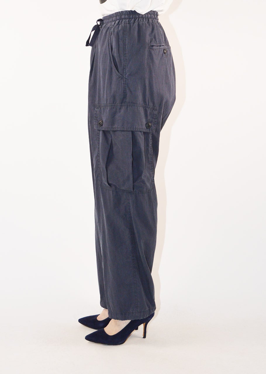 環境に配慮された製法で作られたテンセルとコットン素材を使用したカーゴパンツ。洗い込むことでうまれる独特の風合いやカラーリングを追求した一着。ワイドシルエットで裾のスピンドル調整でシルエットの変化を楽しめます。