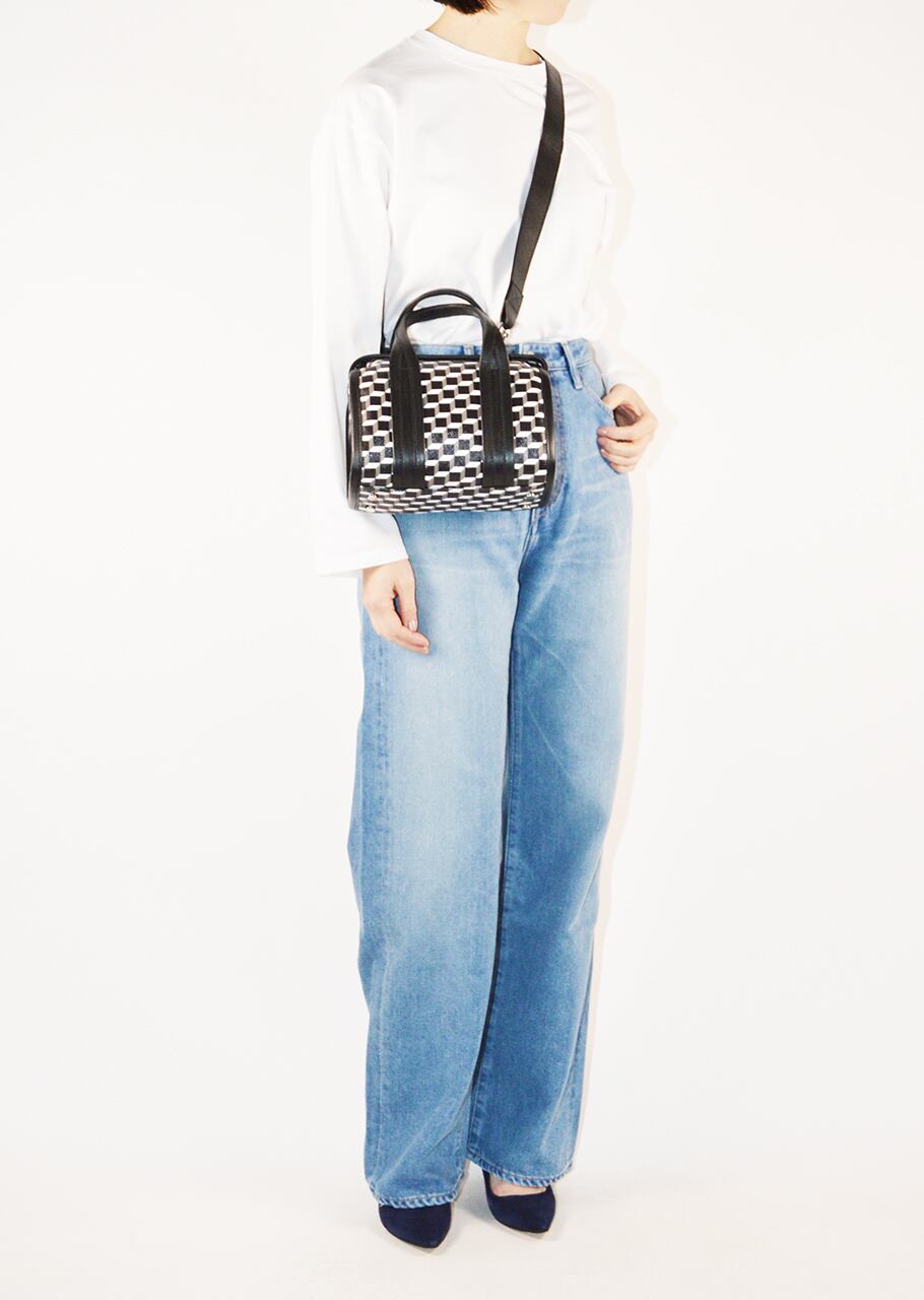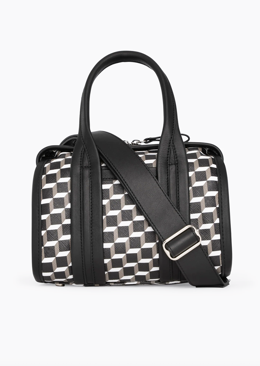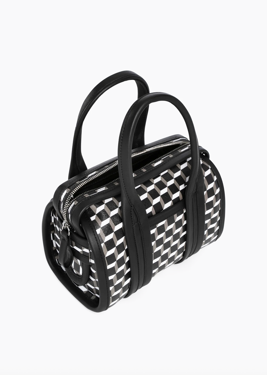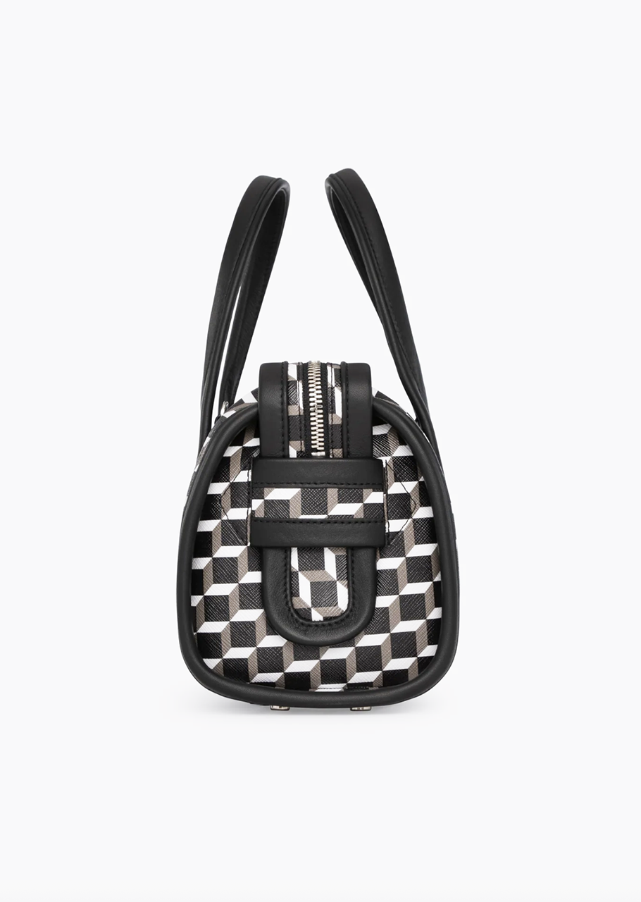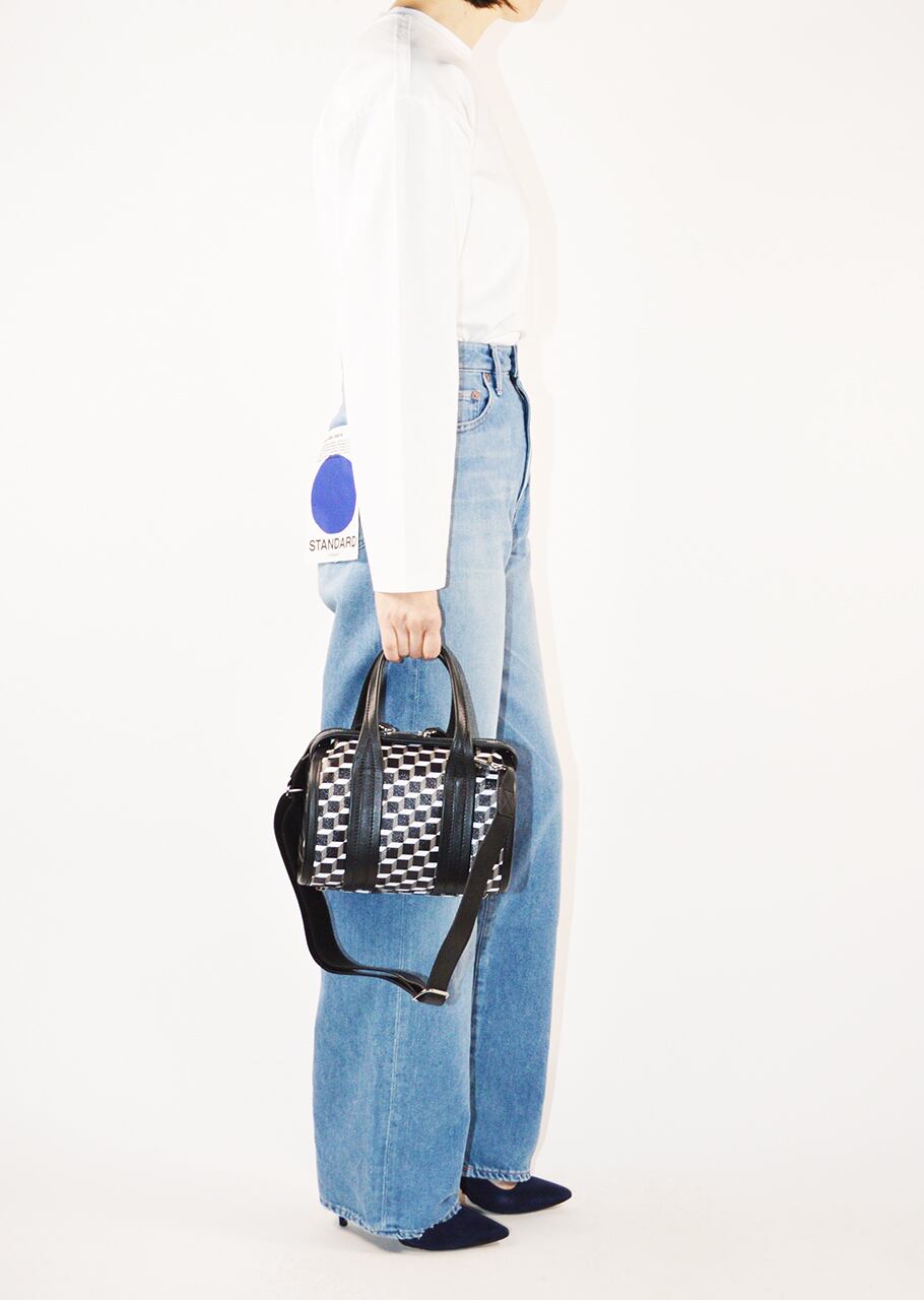 グラフィカルなモチーフが特徴的なミニボストンバッグ。シンプル&ストロングモチーフが、着こなしをモダンに仕上げてくれます。