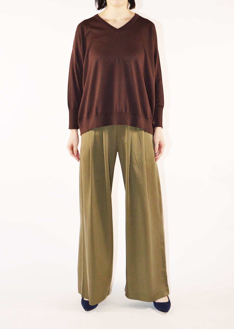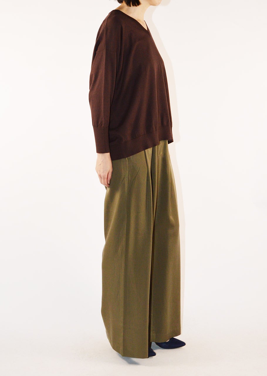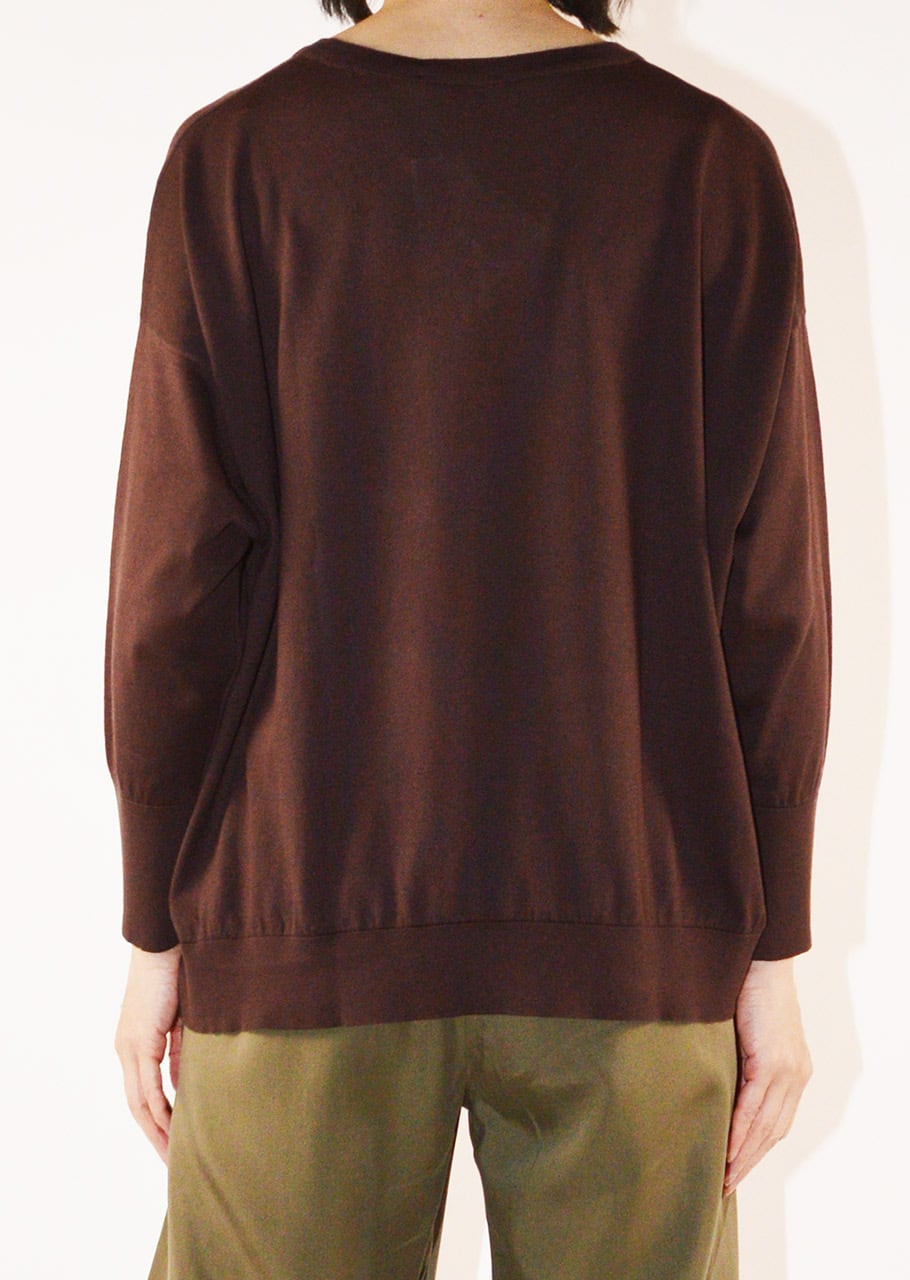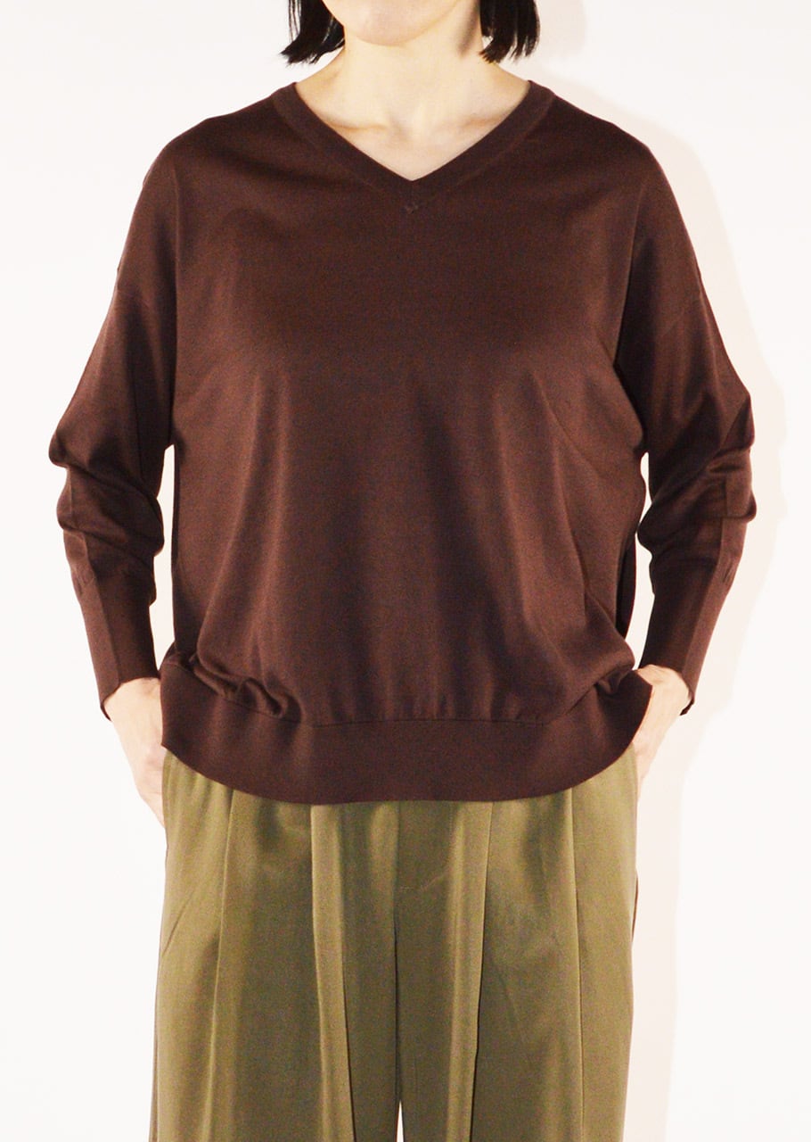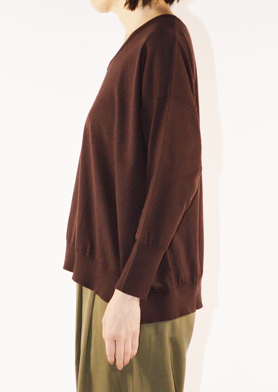 30ゲージのワイドシルエットのVネックプルオーバー。襟ぐりが太めのバンドの仕様になっていることで顔周りをすっきりと見せてくれネック周りに絶妙なニュアンスをもたらします。美しくきめ細かな質感で、薄手かつ軽量、快適で心地よい着用感の30ゲージシーアイランドコットンを使用しています。