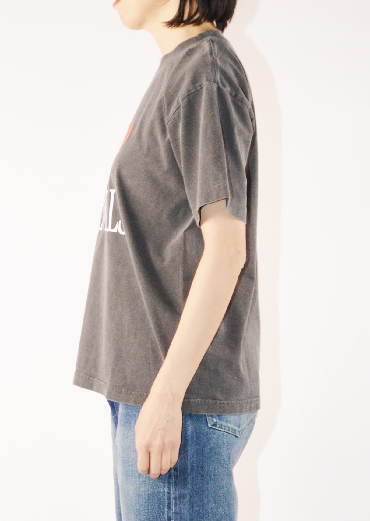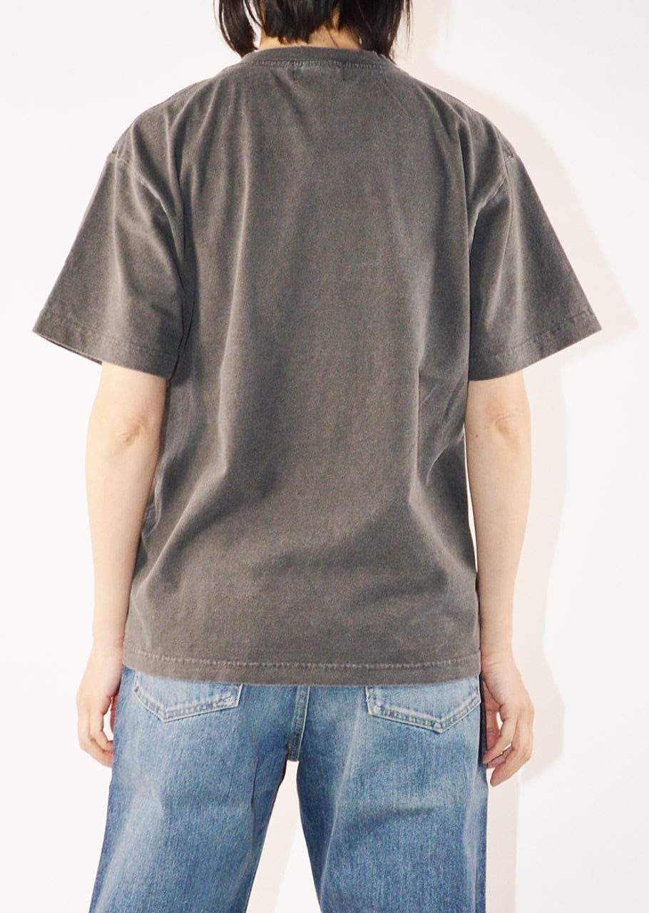 デザインは70~90年代のファッション・音楽・アートなどのカルチャーからインスパイアされています。プリントはラバープリントのクラック加工、ピグメントダイでヴィンテージライクなフェードを表現しています。ボールバイオウォッシュ加工によってUSEDのような柔らかい肌触りを再現。襟、裾、袖口にはライトなダメージ加工を施しています。