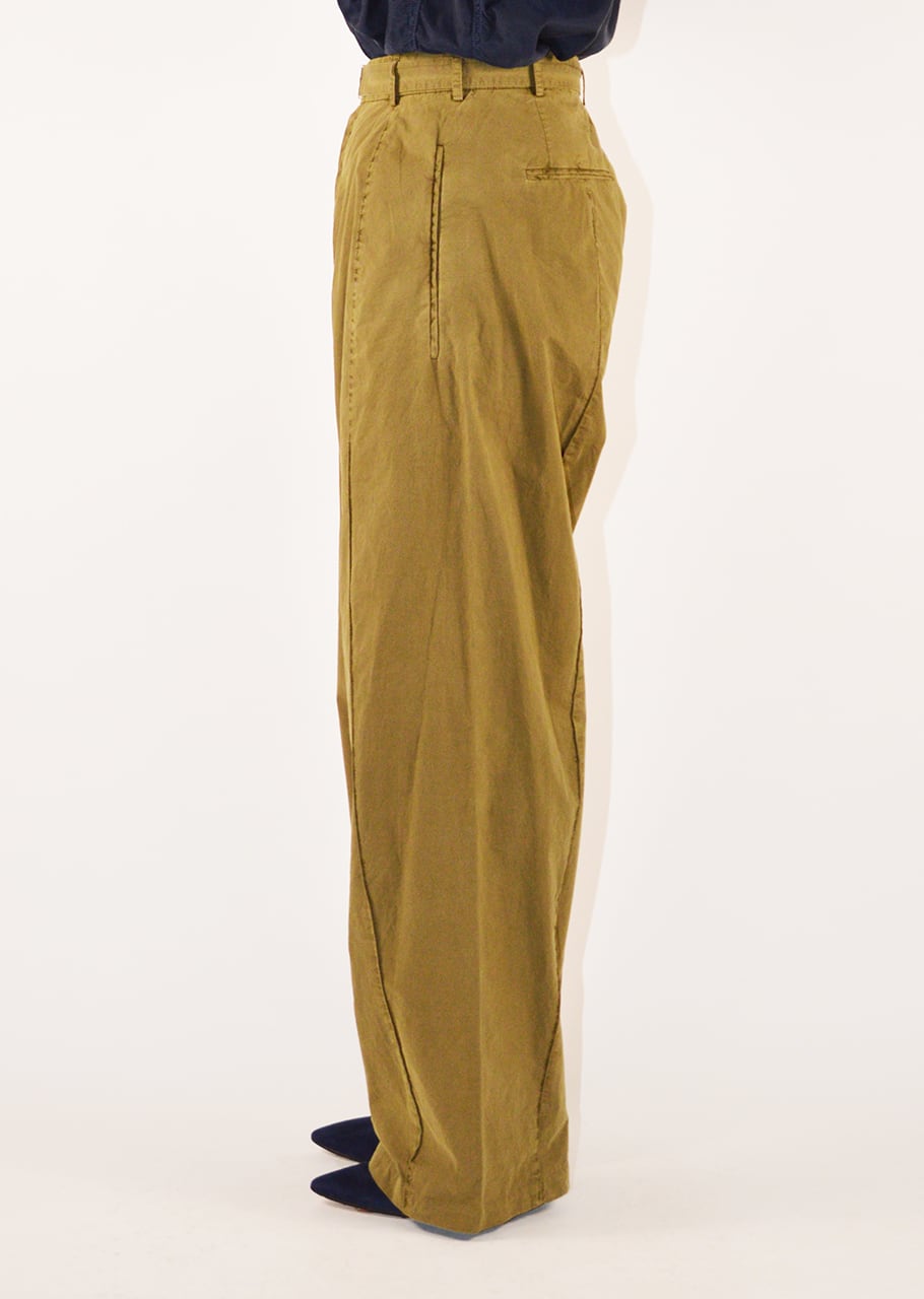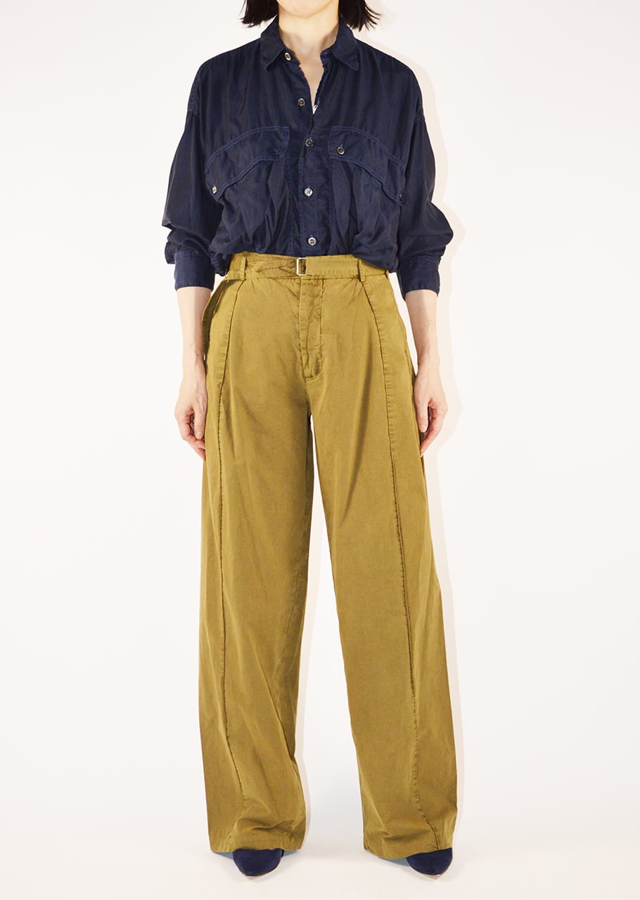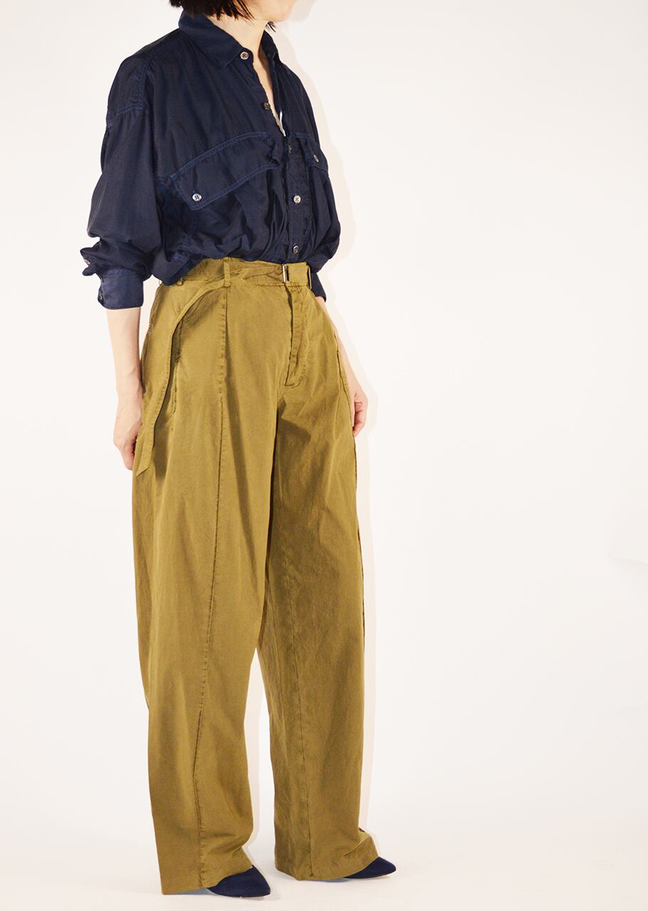 やわらかく味わい深いコットンファブリックを用いたパンツです。デイリーにもオフィシャルにも使えるシンプルなデザインで、落ち感のあるストレートシルエットがとにかくプロポーションを美しく見せてくれる。季節を問わず使える優秀なアイテムです。