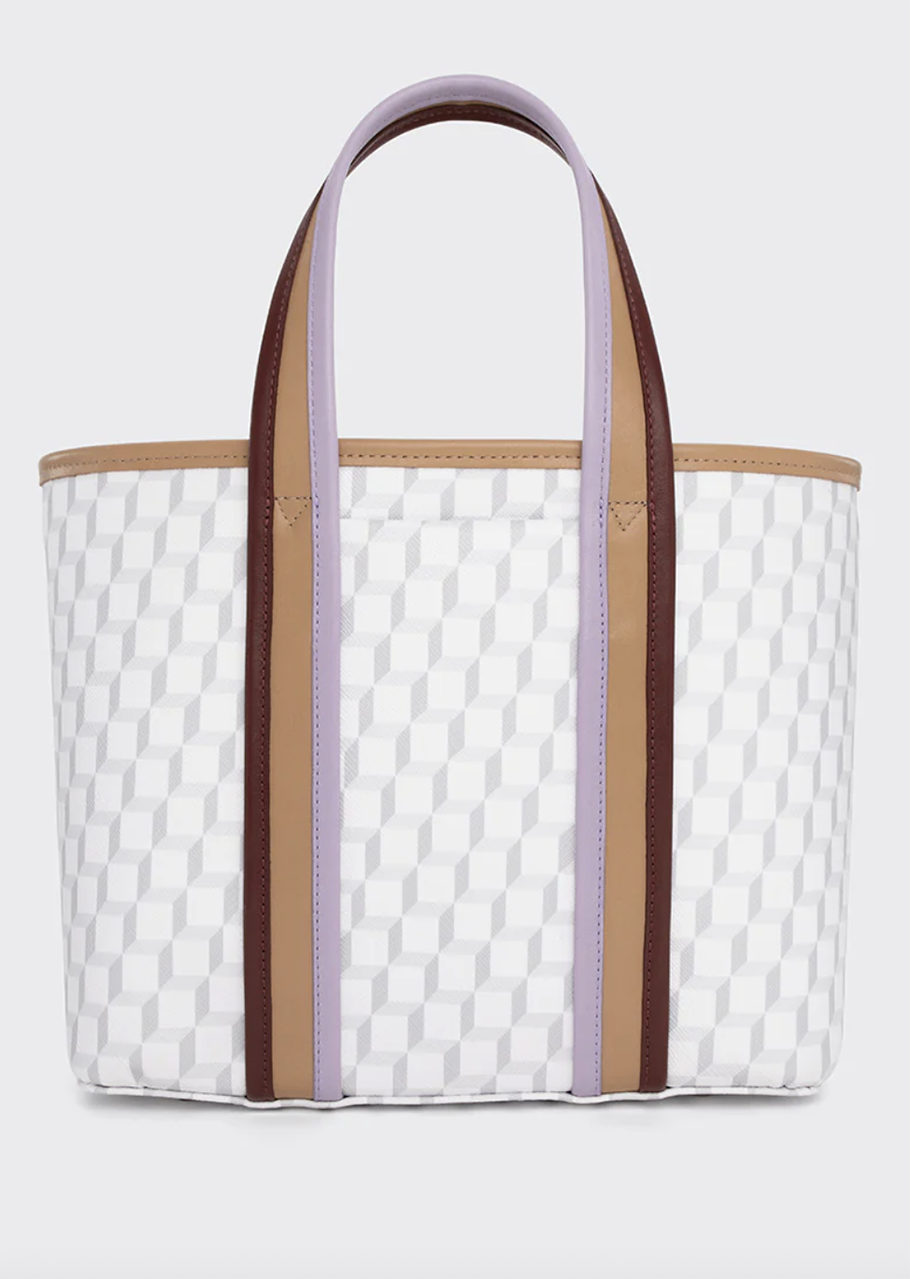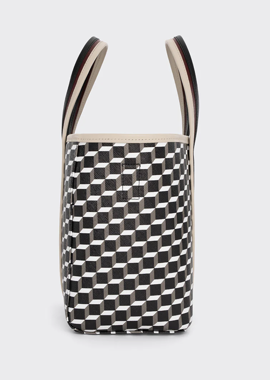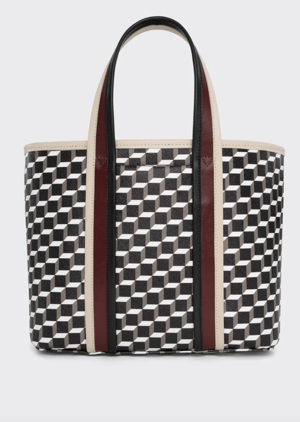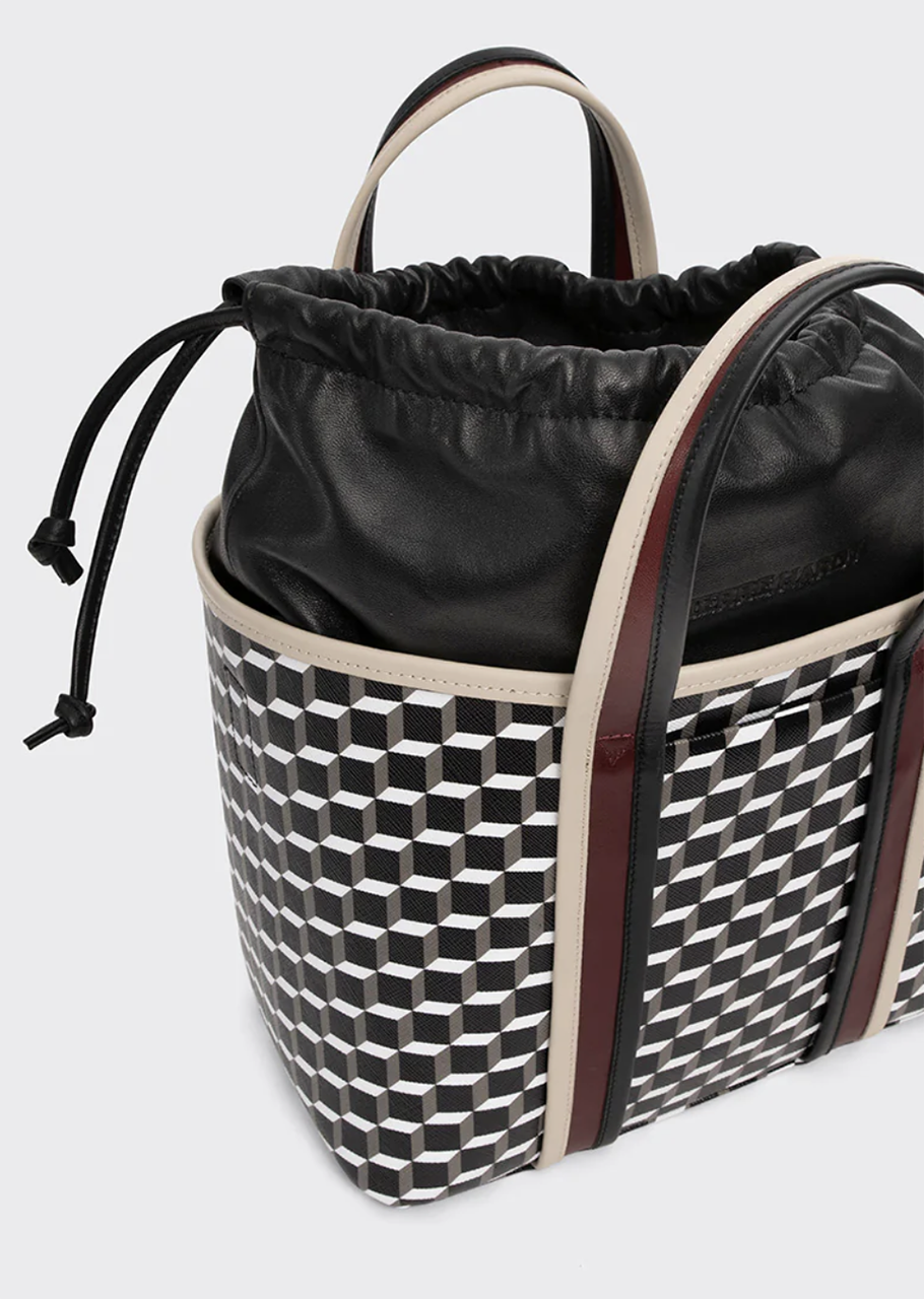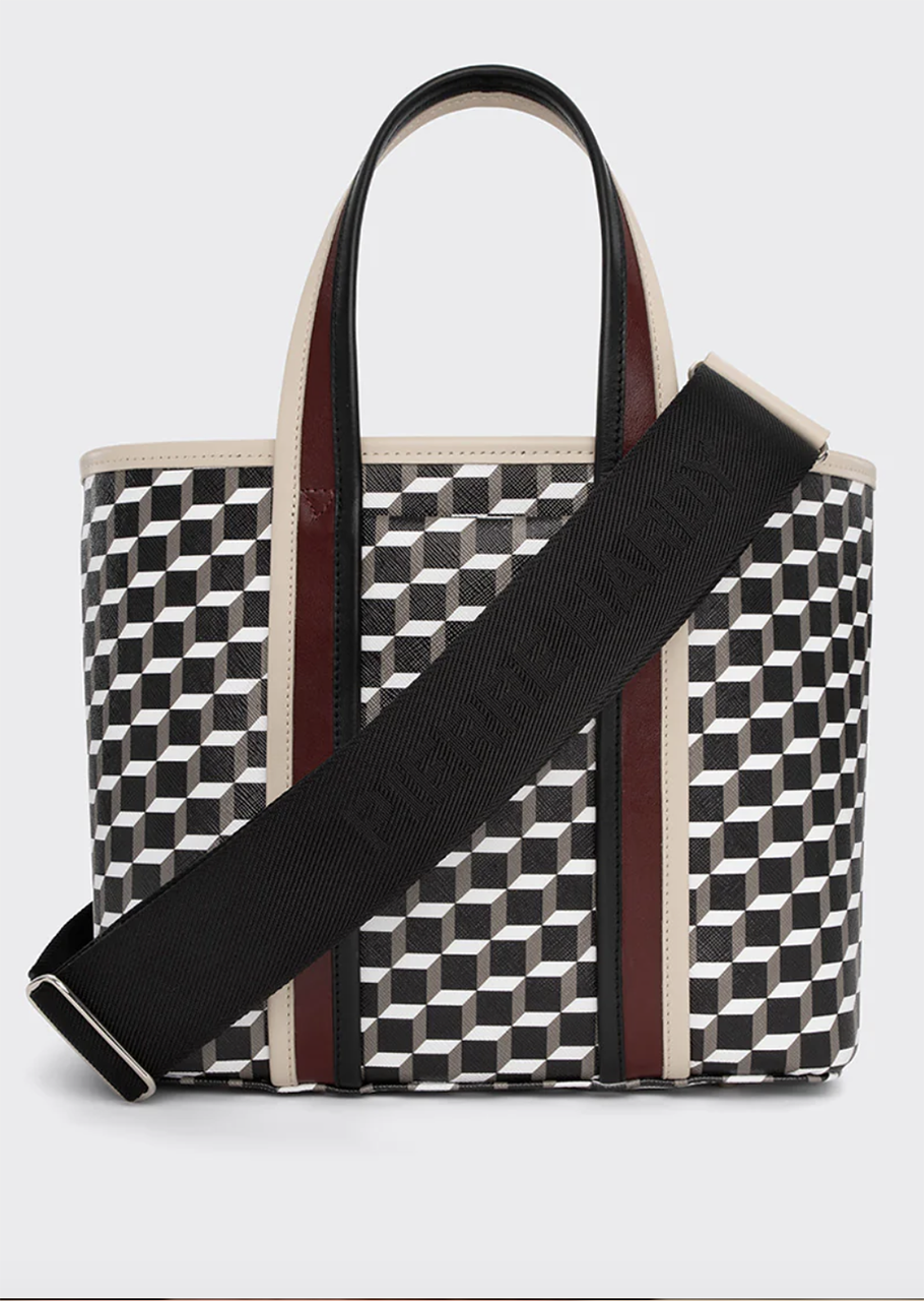 グラフィカルなモチーフが特徴的なトートバッグ。シンプル&ストロングモチーフが、着こなしをモダンに!