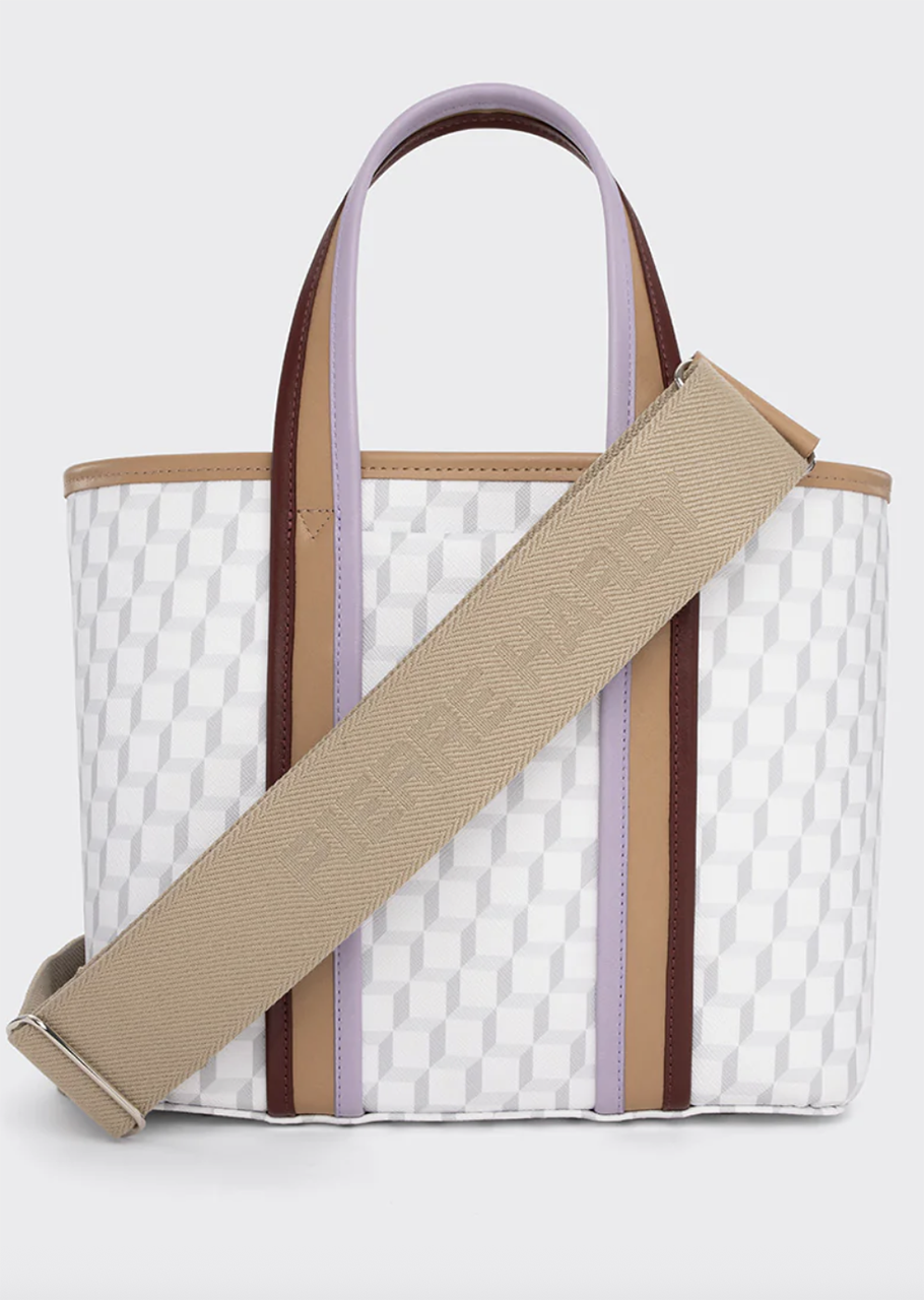 実用的なサイズ感と、機能性に優れたデイリーユースに最適なミニアーチトートバッグ。インナーのレザーバッグはスナップボタンによって取り外し可能。ロゴ入りのストラップをつけて、クロスボディバッグとしても楽しめます。