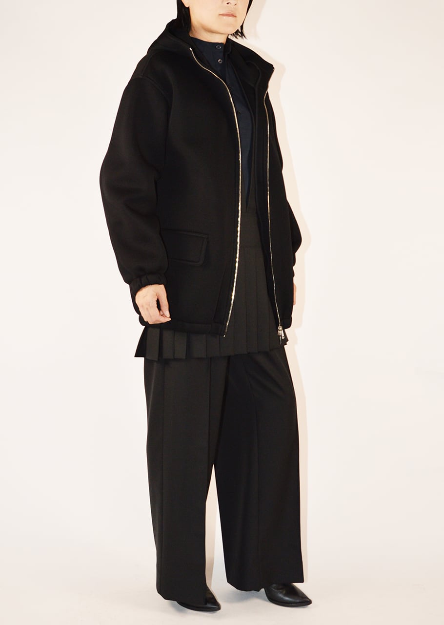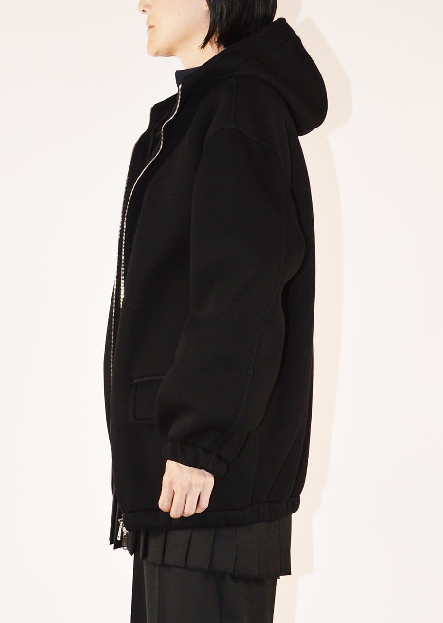 レーヨン素材のフーデッドジップアップブルゾン。ボンディングの仕様となっているので、適度なハリがフォルムをきれいに維持してみせつつとても軽量で快適な着心地です。袖を通した時のリラックスしたシルエットがこのブランドらしいモダンを感じさせます。レーヨン素材ならではのロングシーズン楽しめるのも魅力です。