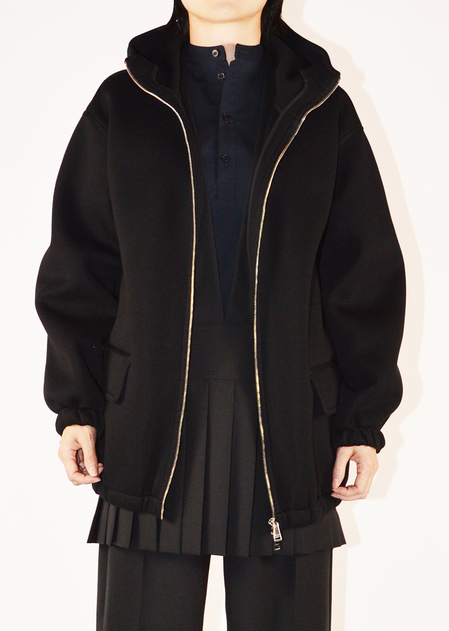 羽織りものとして、ジッパーを上げてこれ一枚でも着こなせる優秀アイテム。素材が持つムードでカジュアルにもドレッシーなスタイルの外しとしても着こなせます。