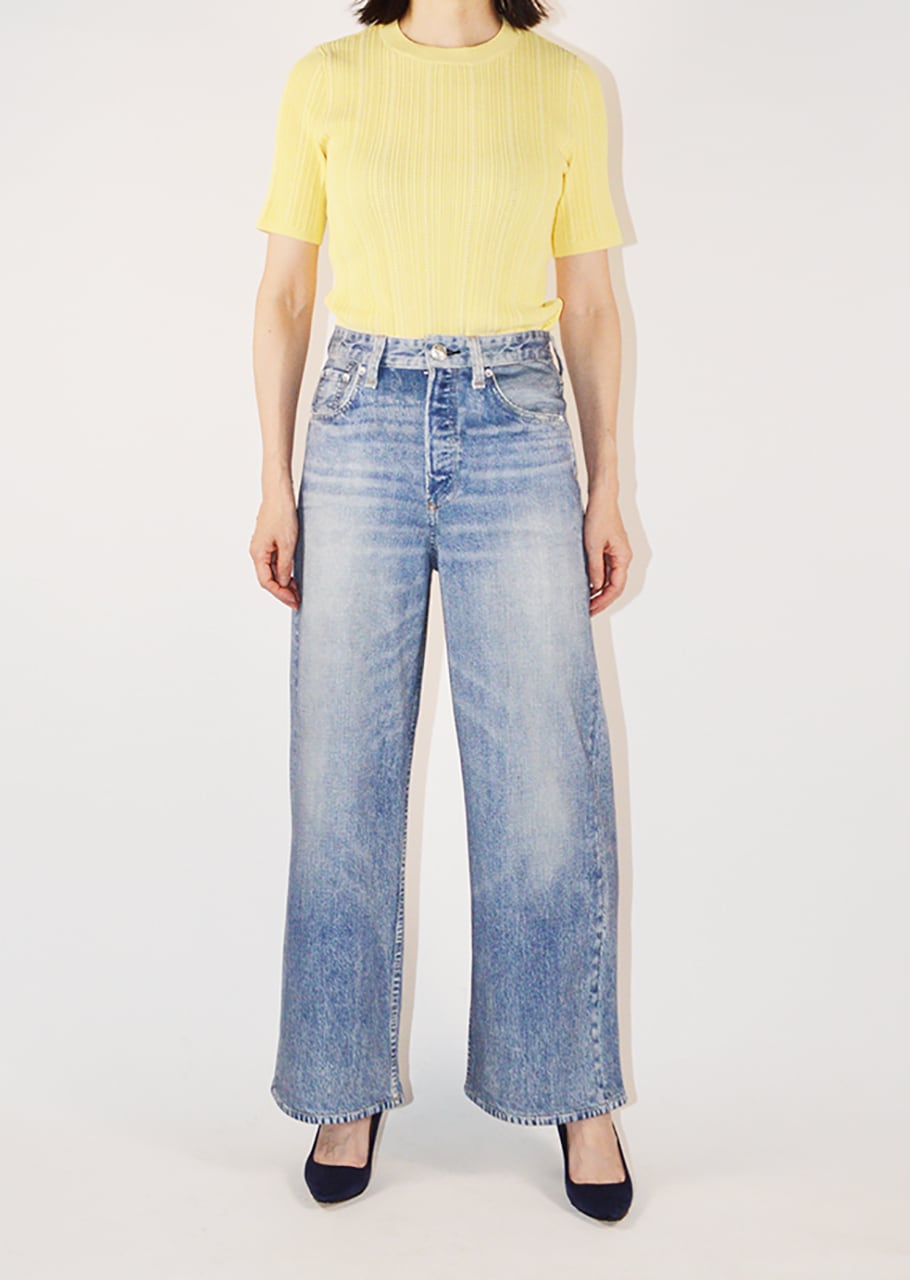 触れなければ気づかないほどの精巧なデニムプリントを施したジャージー素材のパンツ。落ち感あるワイドシルエットで、ウエストボタン仕様が新登場。こんなにシルエットが美しいのに驚くほど履き心地がいいという意外性が人気の理由です。自宅で洗濯できることも人気の理由。