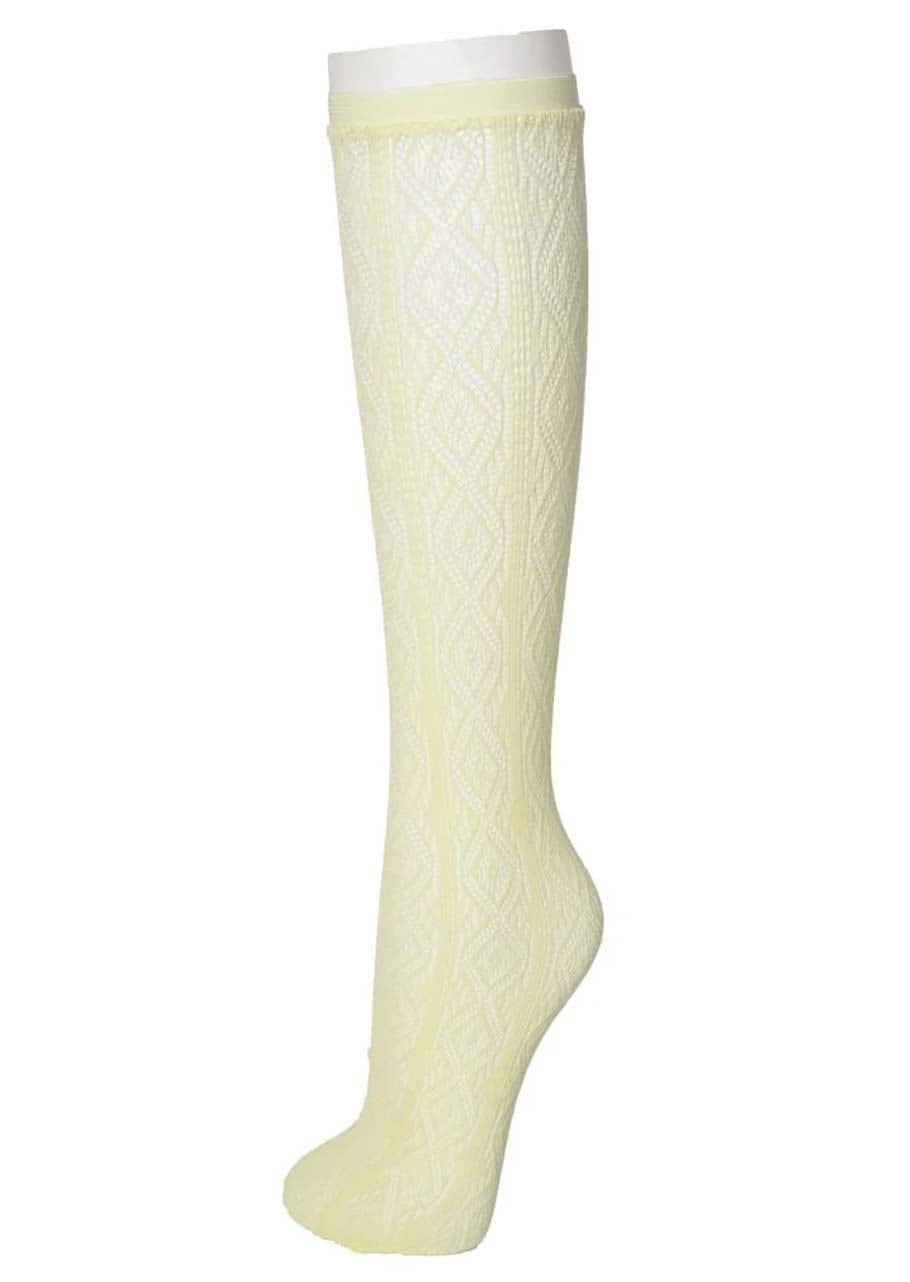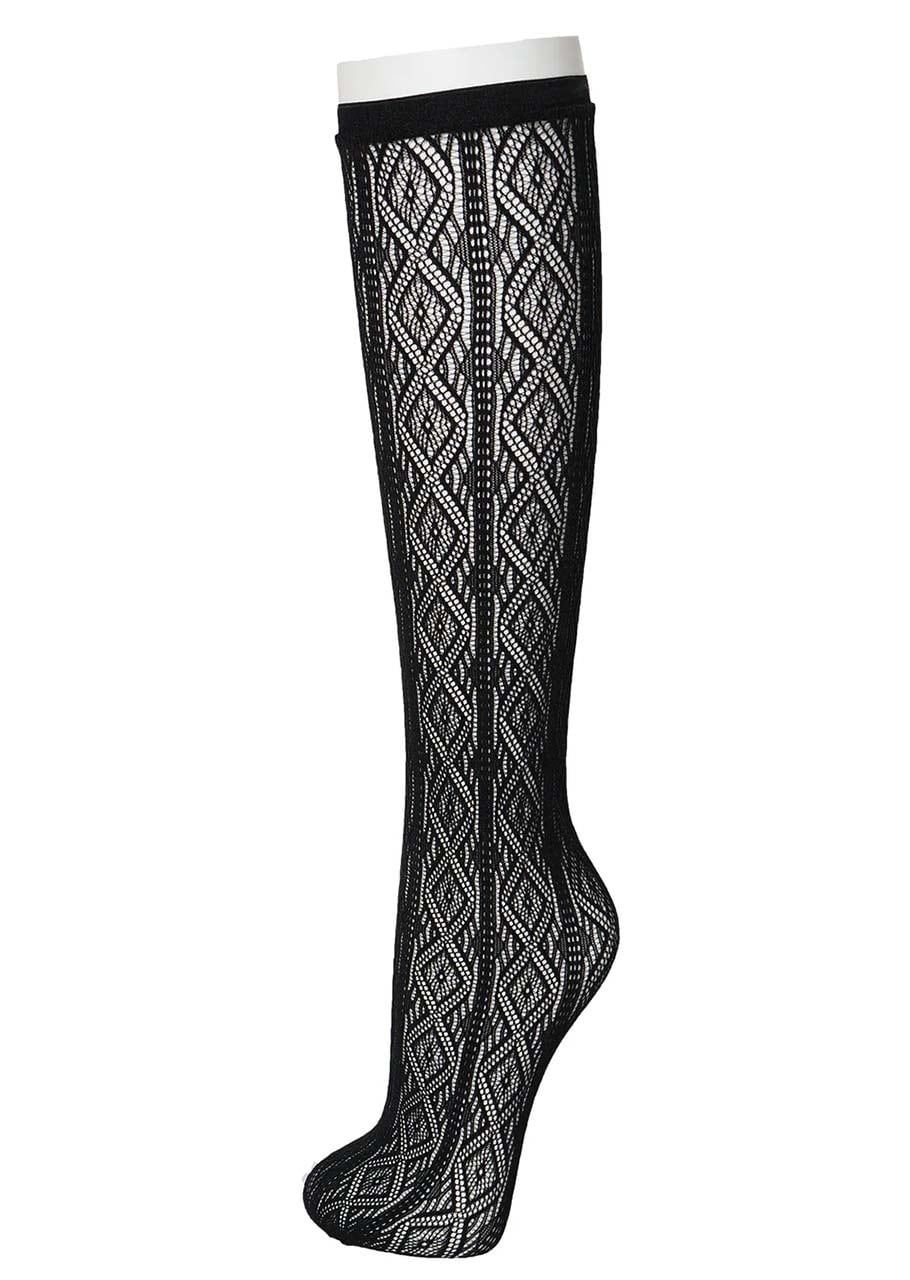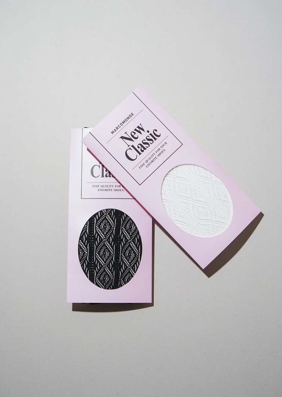 Newタイプのレースソックス。かかとの縫製がないので、足のサイズや形に関わらず足にフィット。長さもクルー丈からハイソックスまでお好きな丈で履いていただけます。