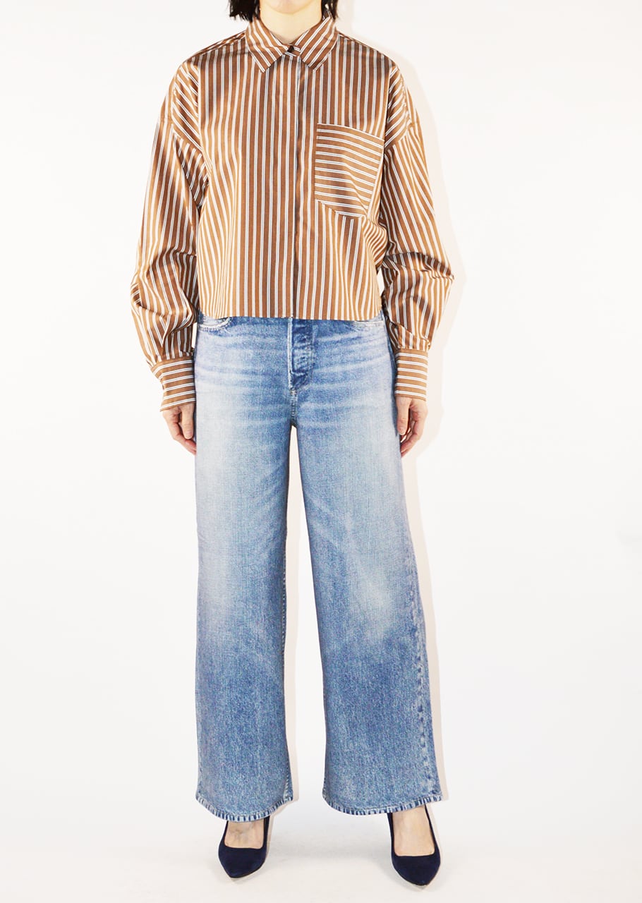 定番とは一味違う、今の気分にぴったりなクロップド丈のボックスシルエット。ハイライズのボトムとの相性もよく、すっきりとしたプロポーションを演出できます。爽やかな印象と上品さを備えており、清涼感のあるさらっとした上質なポプリン生地を採用。ゆとりのあるサイズ感と抜け感のあるレングスが大人っぽく、さまざまなシーンに活躍しそうです。