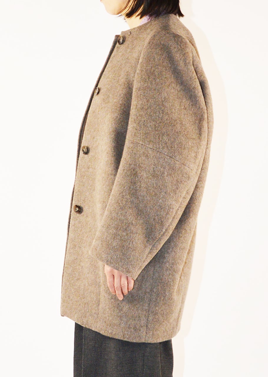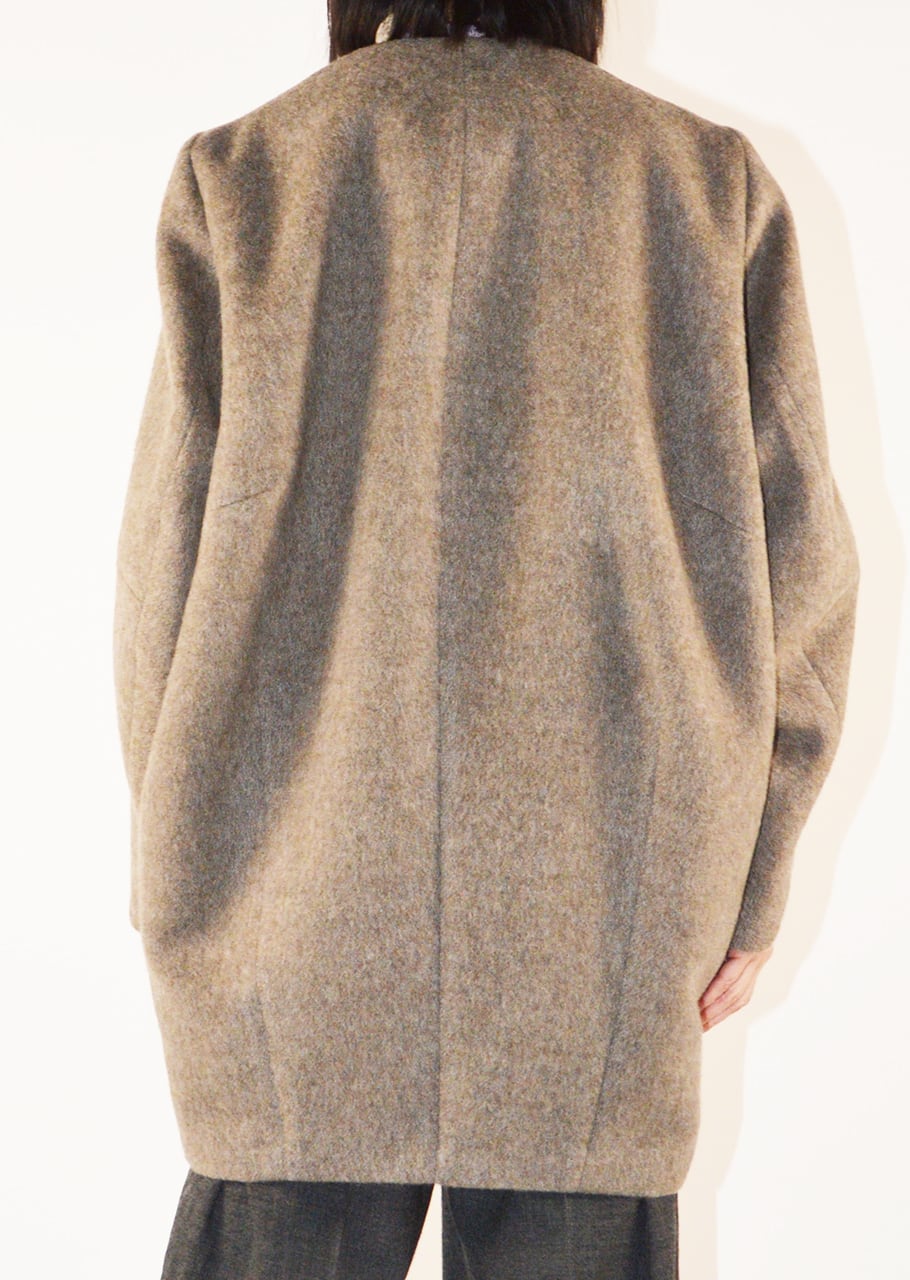 丸みを帯びたユニークなフォルムが印象的なコクーンコート。上質で柔らかな質感のウールビーバーで仕立て、極限までディテールを削ぎ落とし、クチュールライクな手法でミニマル且つフレッシュなフォルムを表現しています。