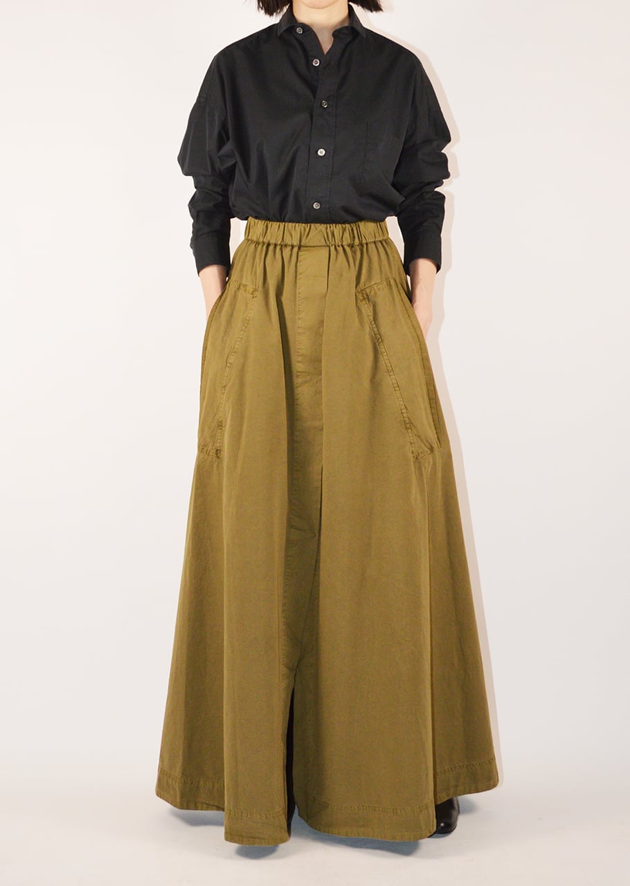 単なるカジュアルに終わらない存在感を放つロングスカート。ブーツやスニーカーを合わせて着こなしたい。
