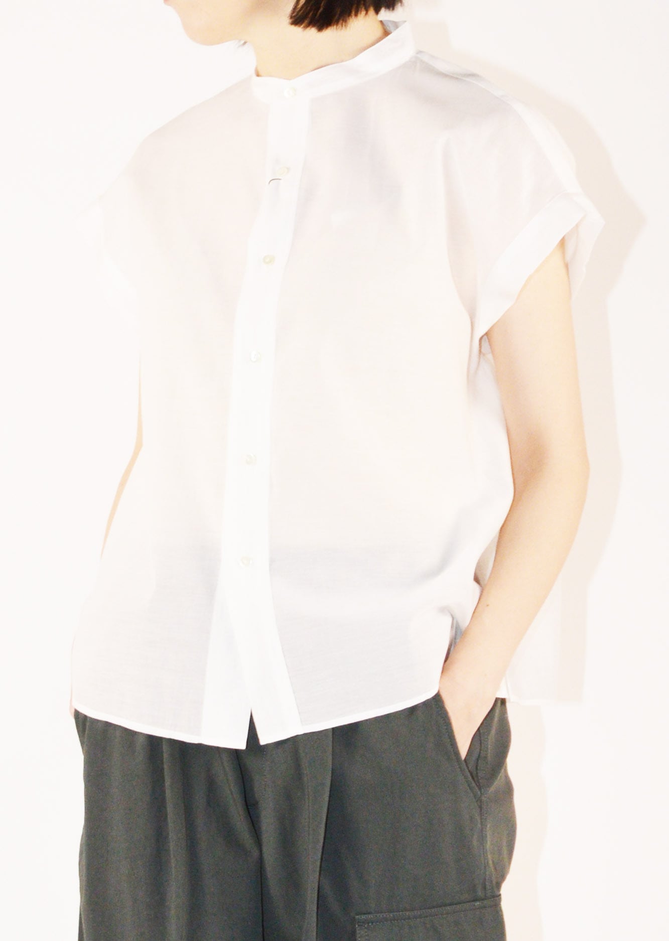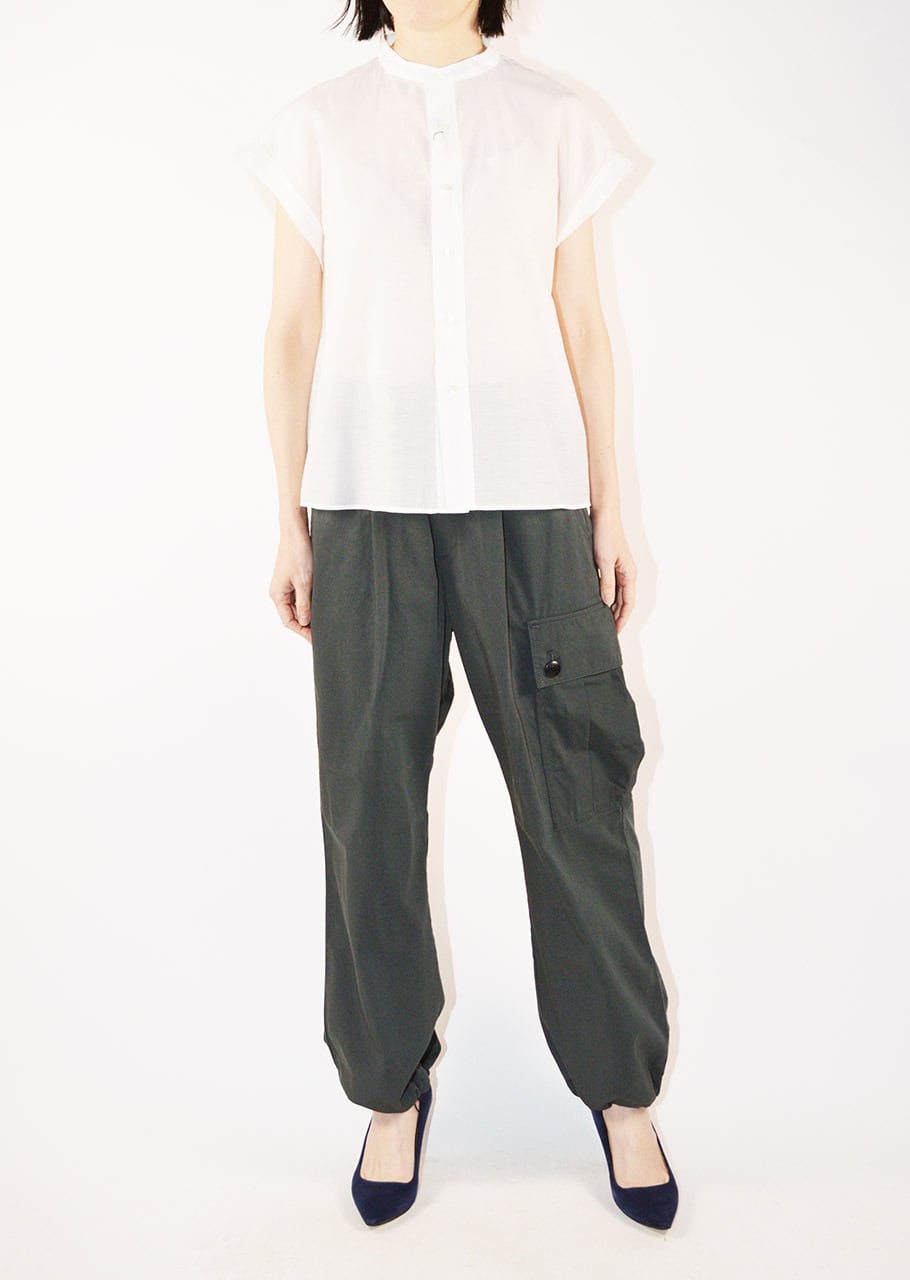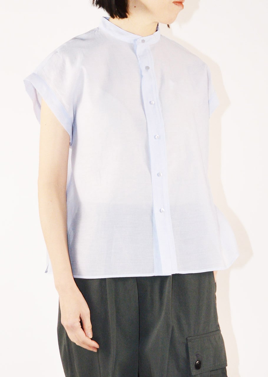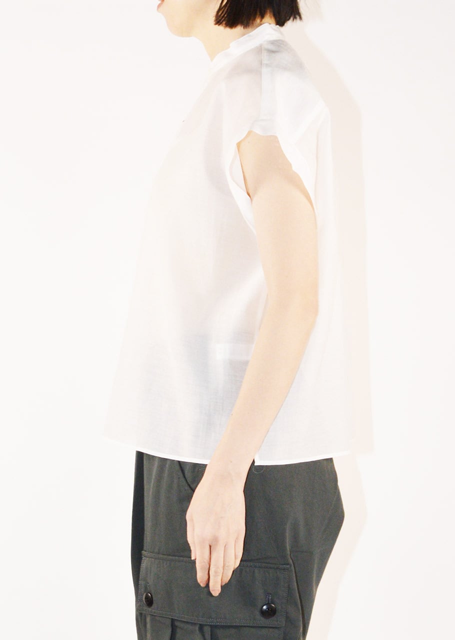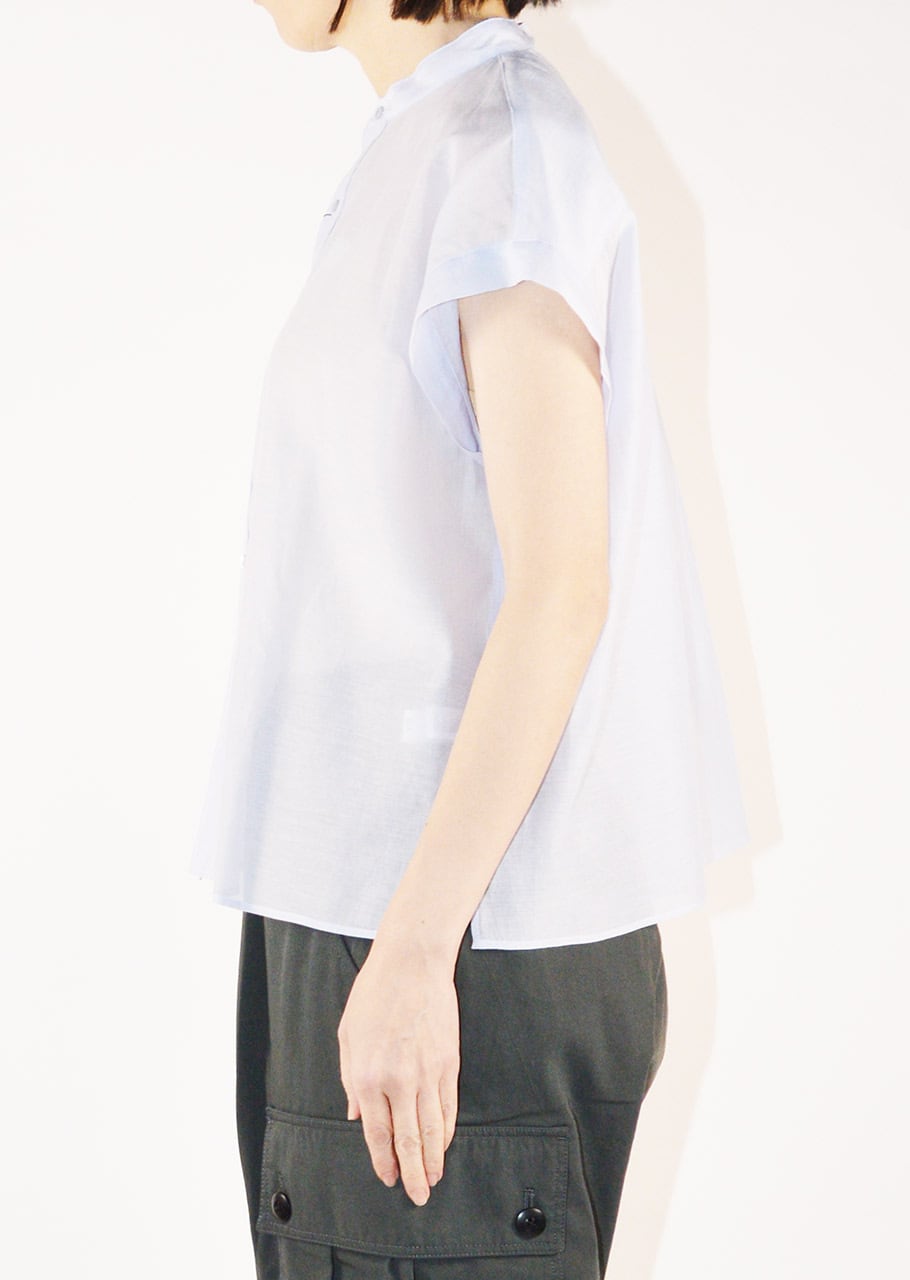 コットンに上質なシルク素材を合わせたしっとりとした滑らかな手触りが心地よいショートスリーブブラウス。オーガンジー用の糸を使って柔らかさの中にほどよいハリとコシを持たせ、ワッシャー加工を施すことで自然な風合いをプラスしています。上品さとリラックス感のあるやさしい風合いが特徴です。