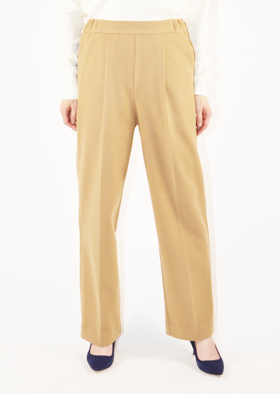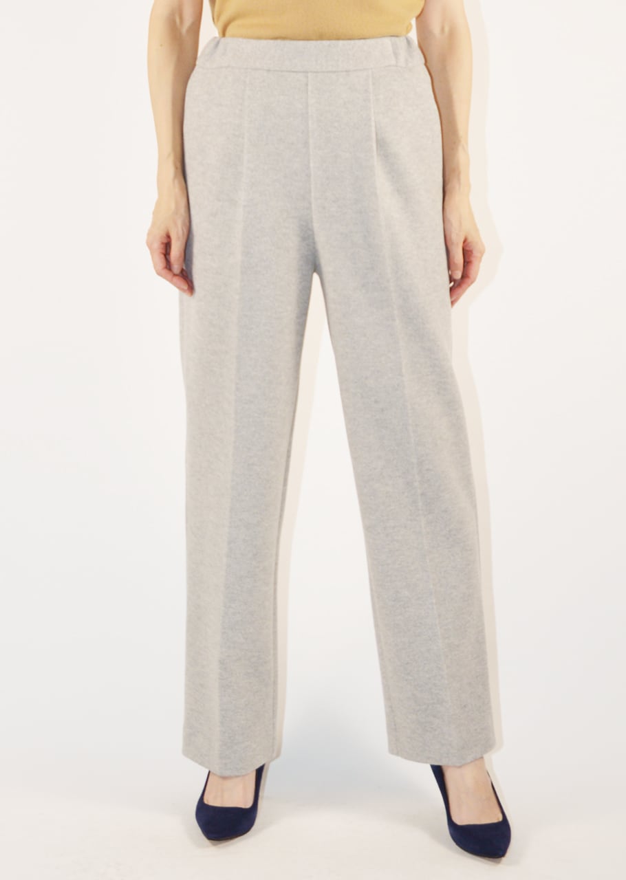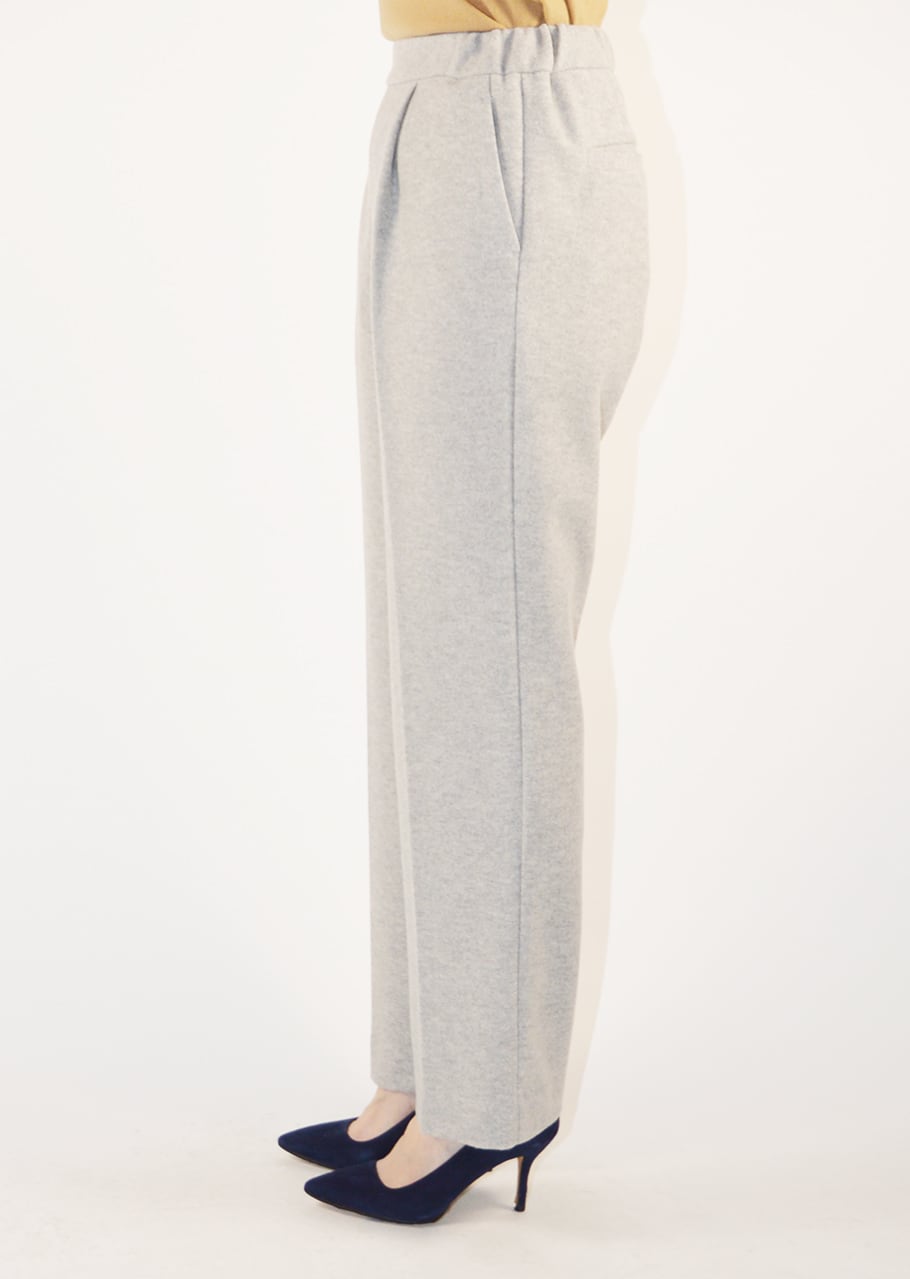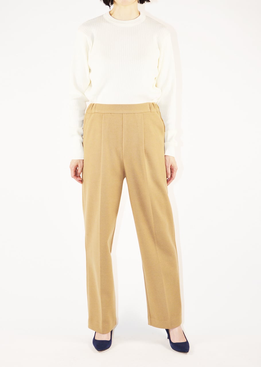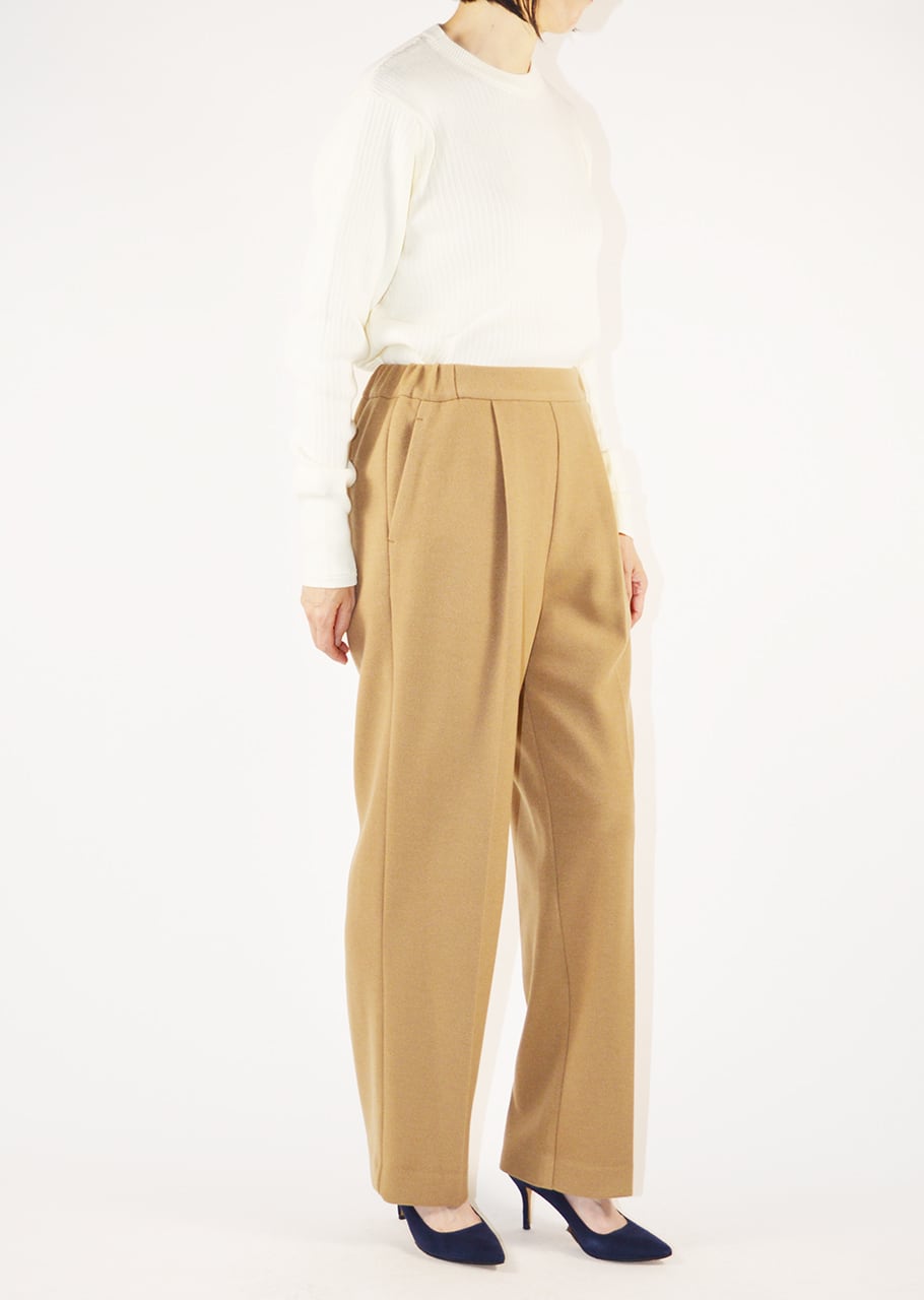 伸縮性のあるジャージー素材のパンツは、まるで見た目はウールメルトン。カジュアルなリラックススタイルはもちろん、キレイめなスタイリングも可能でオンオフ活躍してくれるアイテムです。ウエストゴムで着心地も良く、同素材のトップスと合わせたセットアップスタイルもおすすめです。
