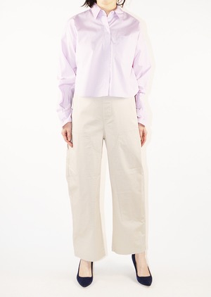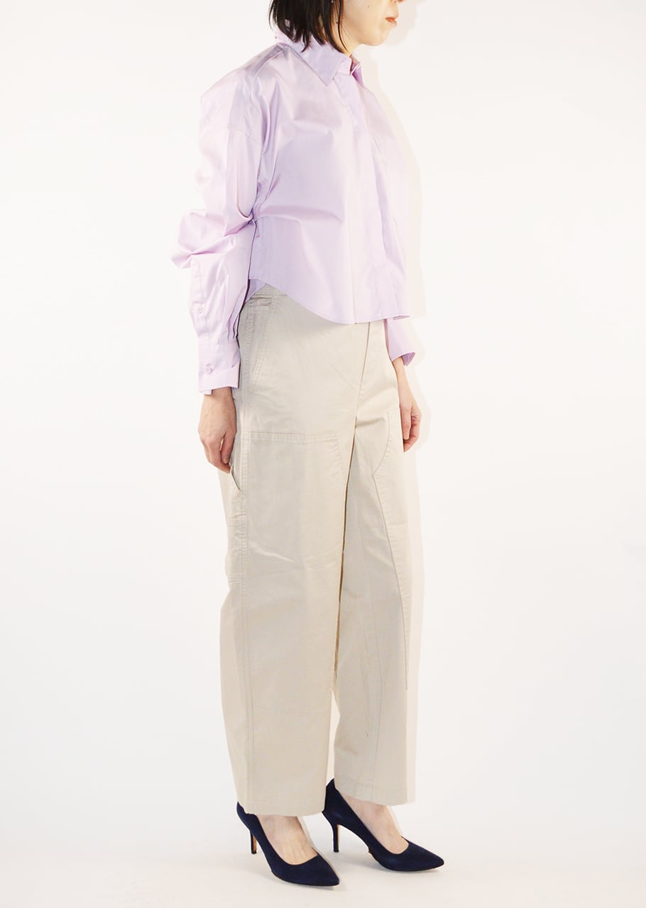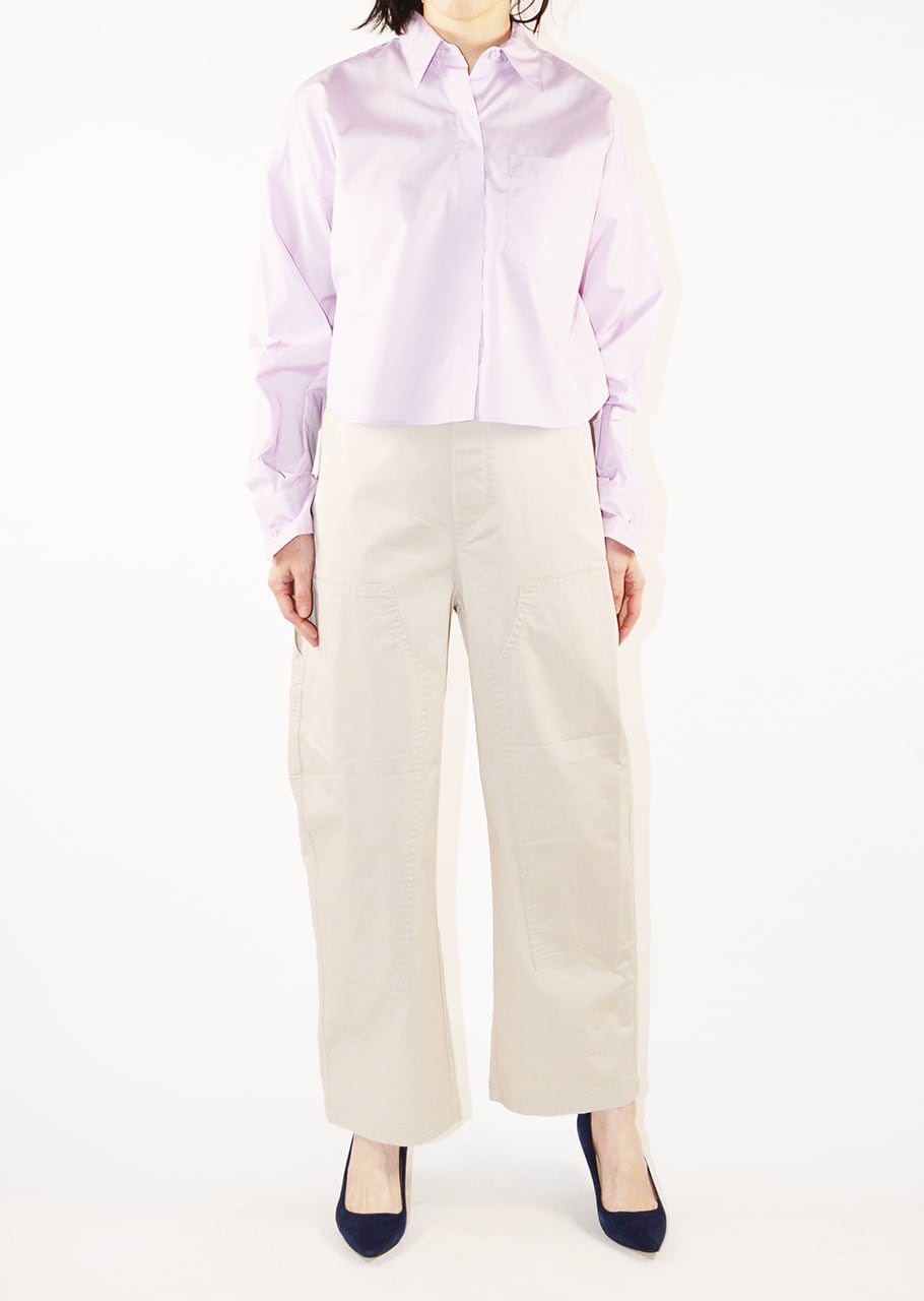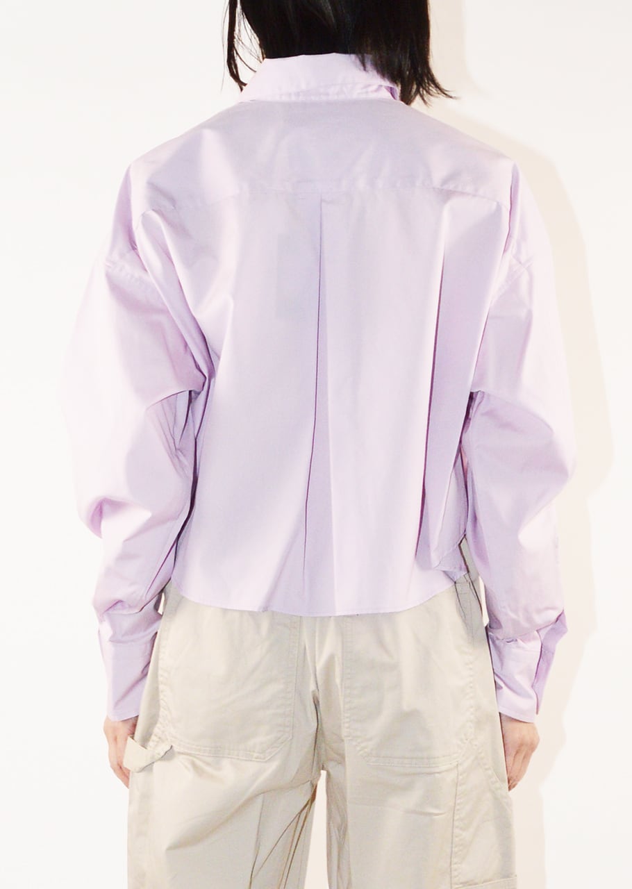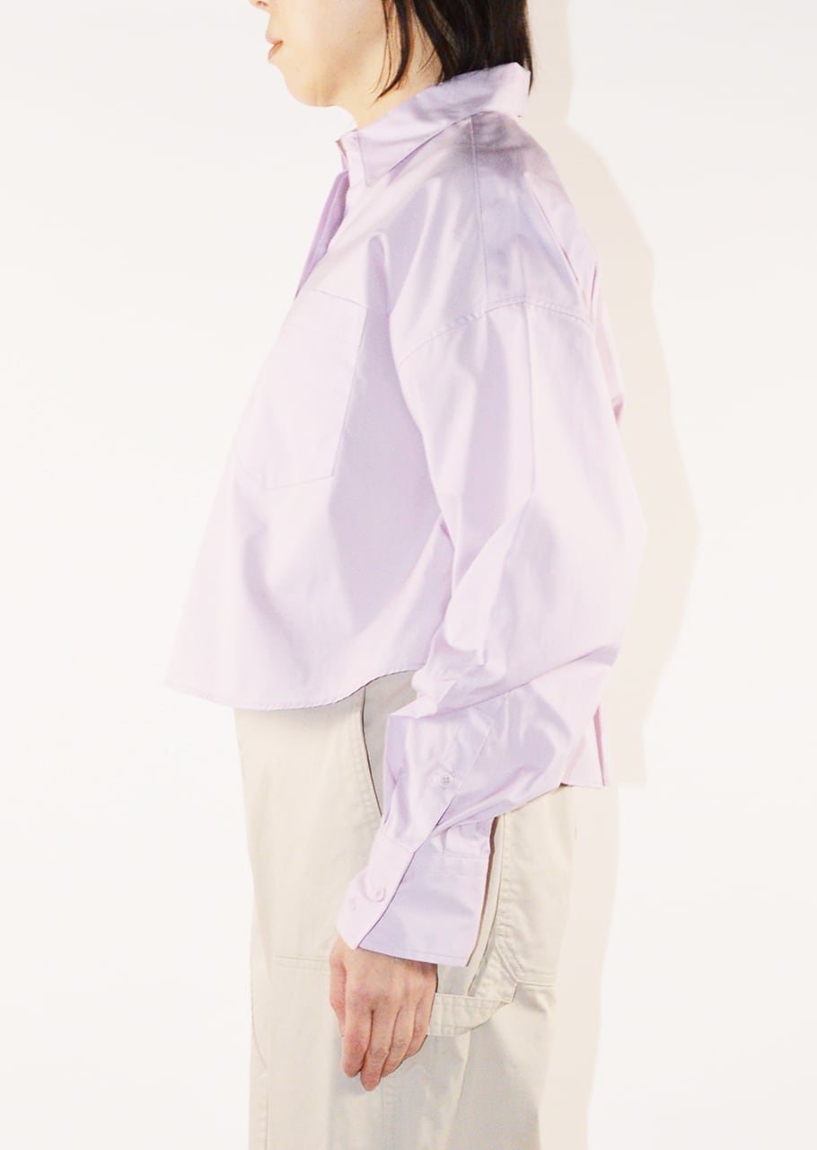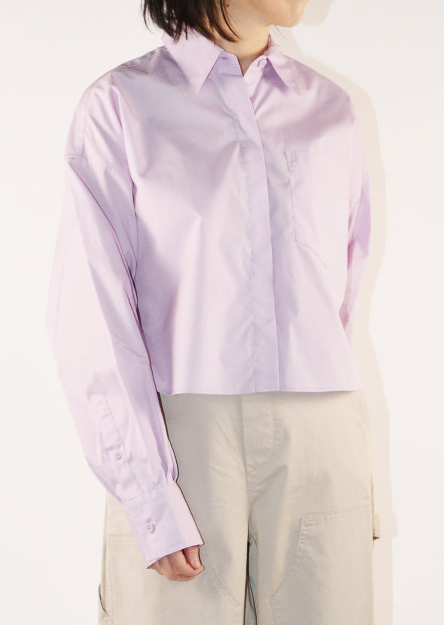 定番とは一味違う、今の気分にぴったりなクロップド丈のボックスシルエット。ハイライズのボトムとの相性もよく、すっきりとしたプロポーションを演出できます。季節を感じさせるラベンダーカラー、ゆとりのあるサイズ感と抜け感のあるレングスが大人っぽく着こなせる。