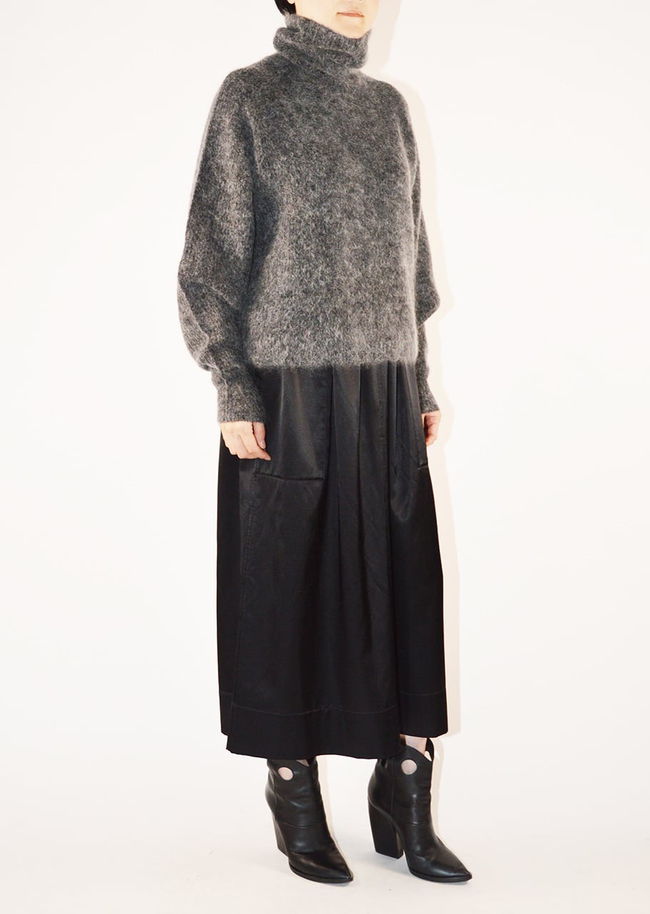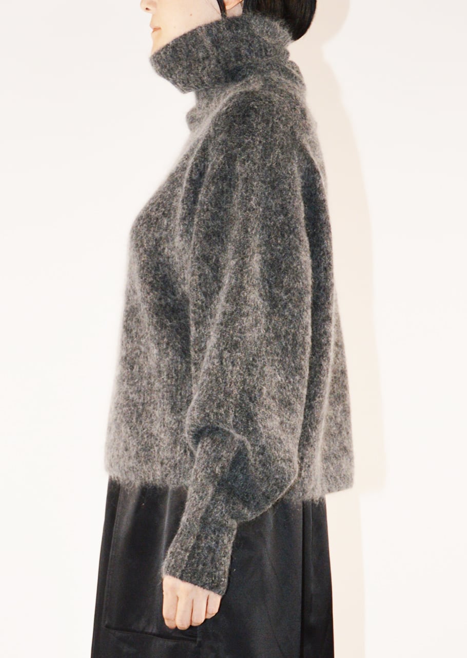 ブランドのシグネチャーにもなっている、モヘアシリーズの新型ハイネックネックカのプルオーバーニット。今シーズンは裾幅をゆったりとってボクシーなシルエットにアップデート。軽くて柔らかいので着心地も良く、ピリングが起こりにくいのも特徴です。