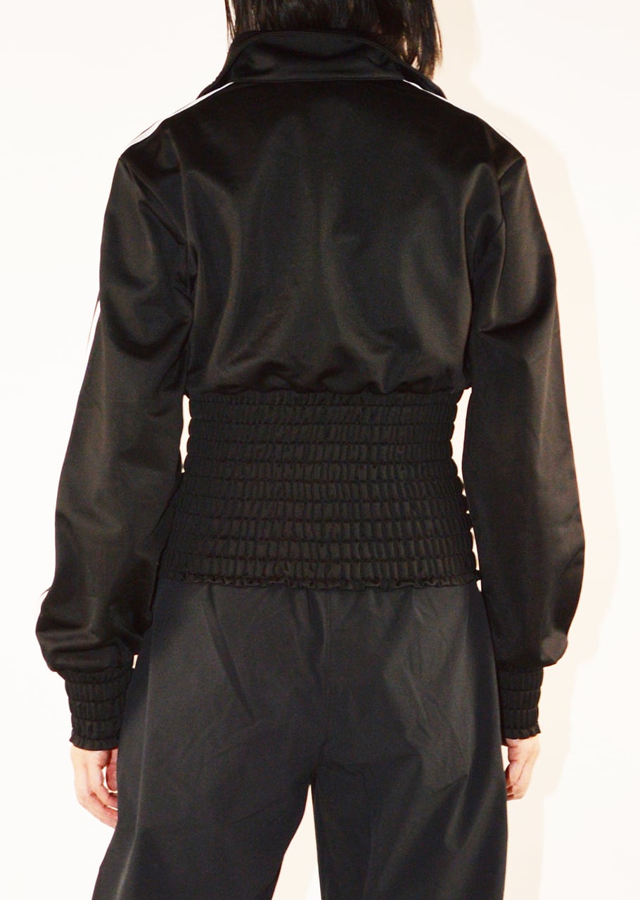表情豊かなディテールでブランドのアイコンを再解釈したトラックトップ。サッカーカルチャーにインスパイアされたクラシックなトラックシェイプを、スモッキングを施すことで、ユニークで個性的なルックに仕上げています。滑らかで耐久性に優れたトリコット生地がベースとなり、ハイネックとフルジップでカバー範囲を調整可能です。