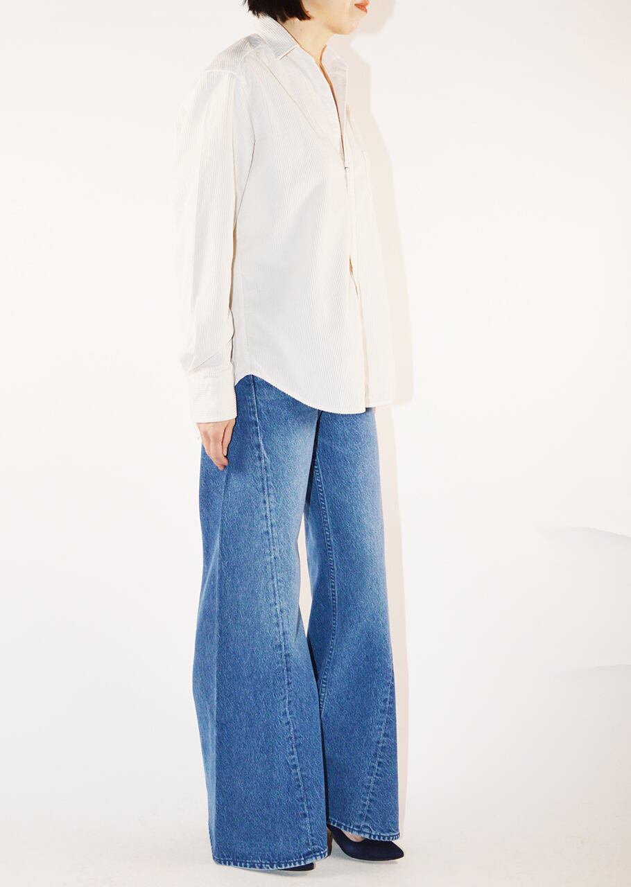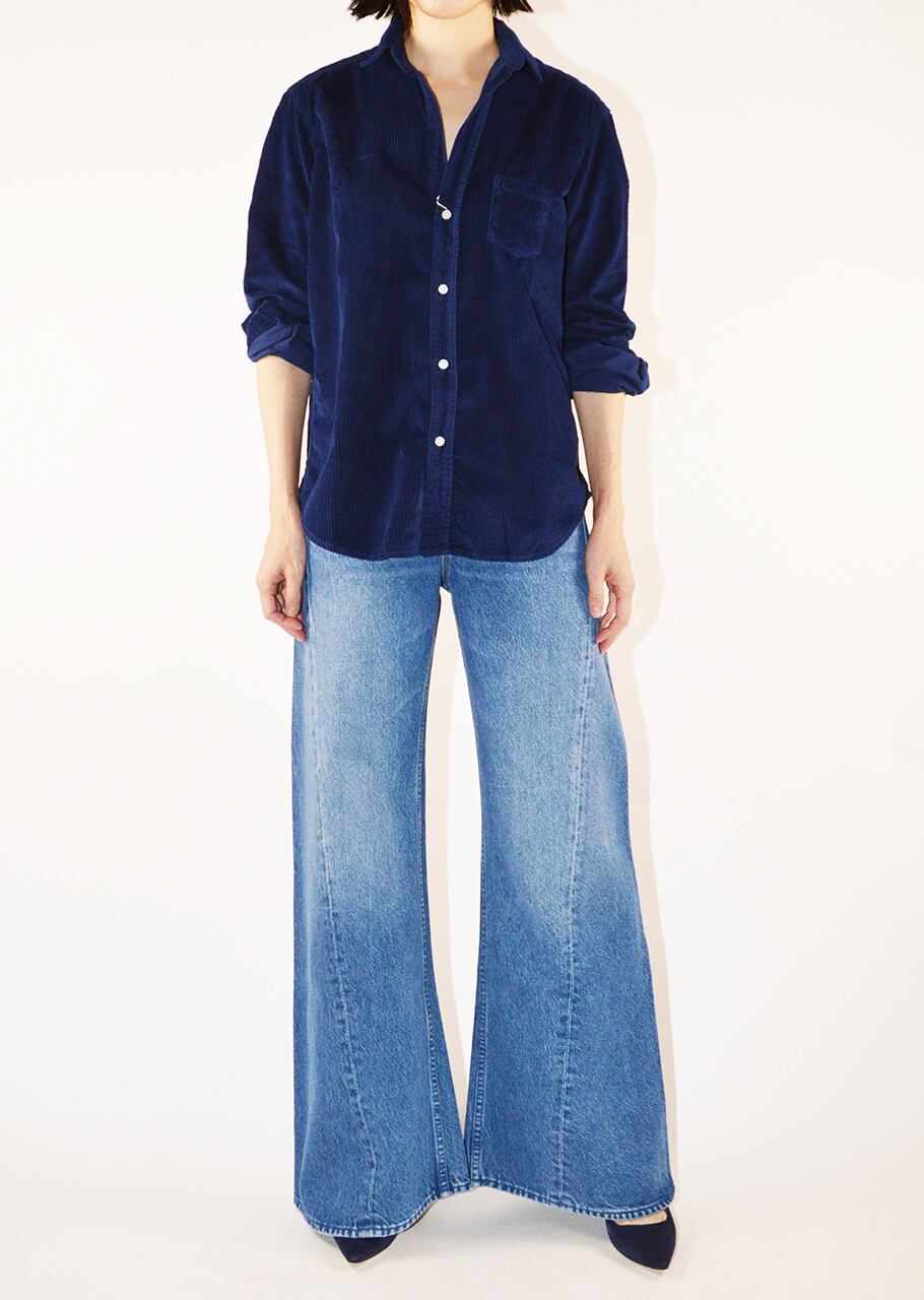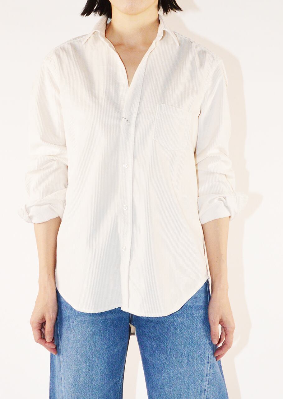 スタイリッシュかつ上品さも感じさせるコーデュロイシャツ。リラックスしたシルエットとコットンコーデュロイ素材の柔らかな肌触りで、着心地抜群。スキニーボトムでメリハリをつけるのはもちろん、ボリュームボトムを合わせて着こなすのが今年の気分です。