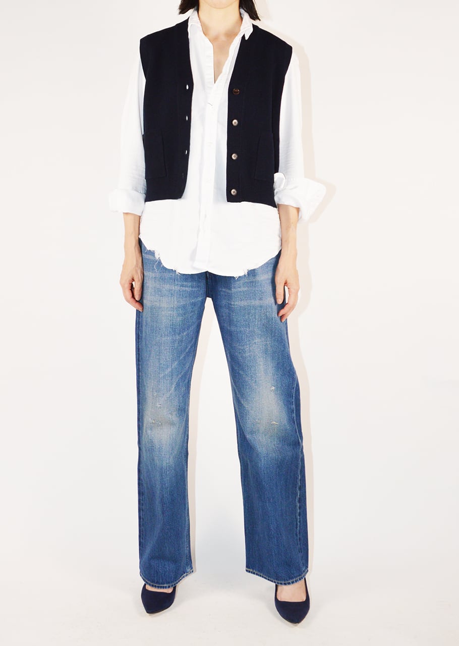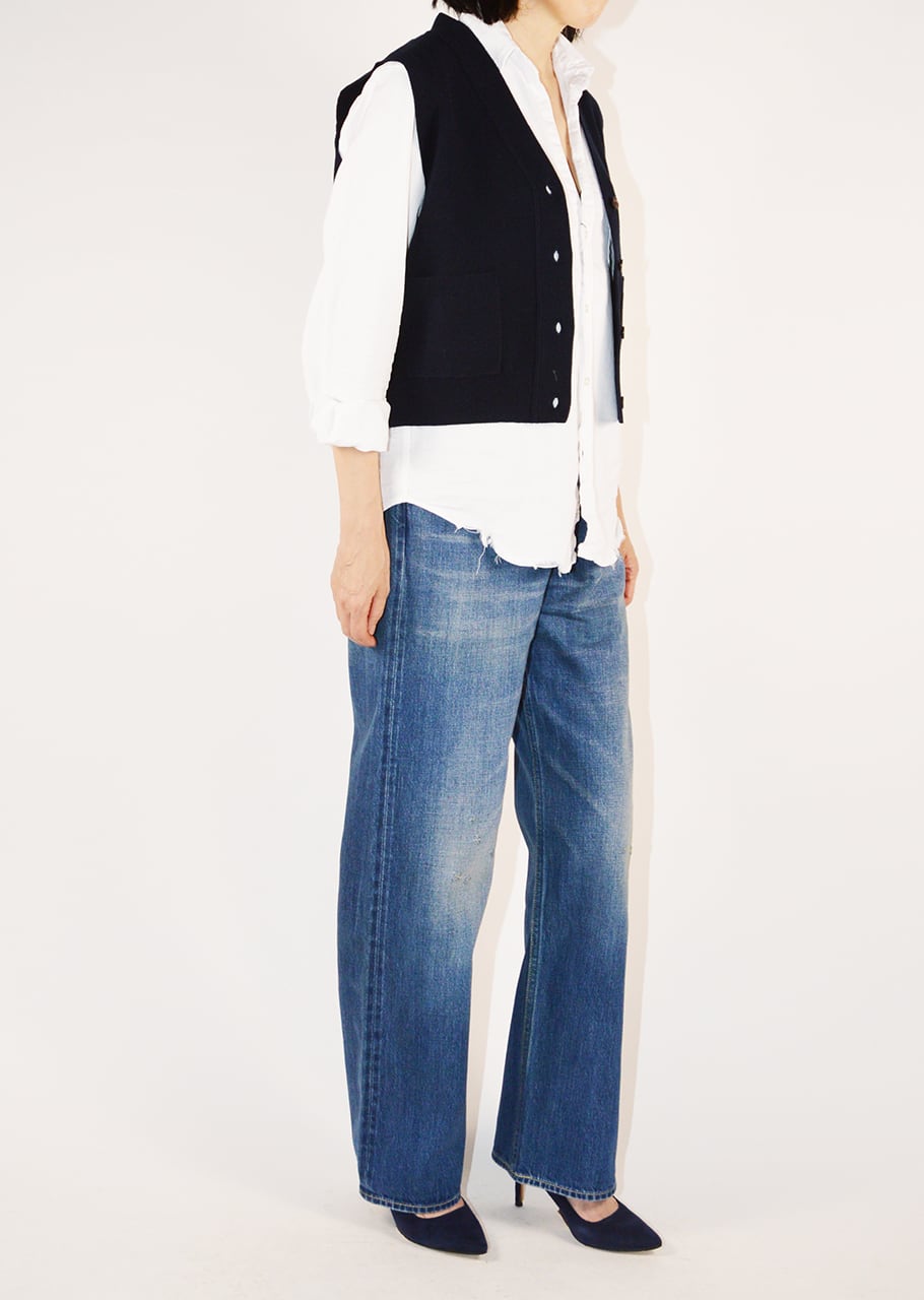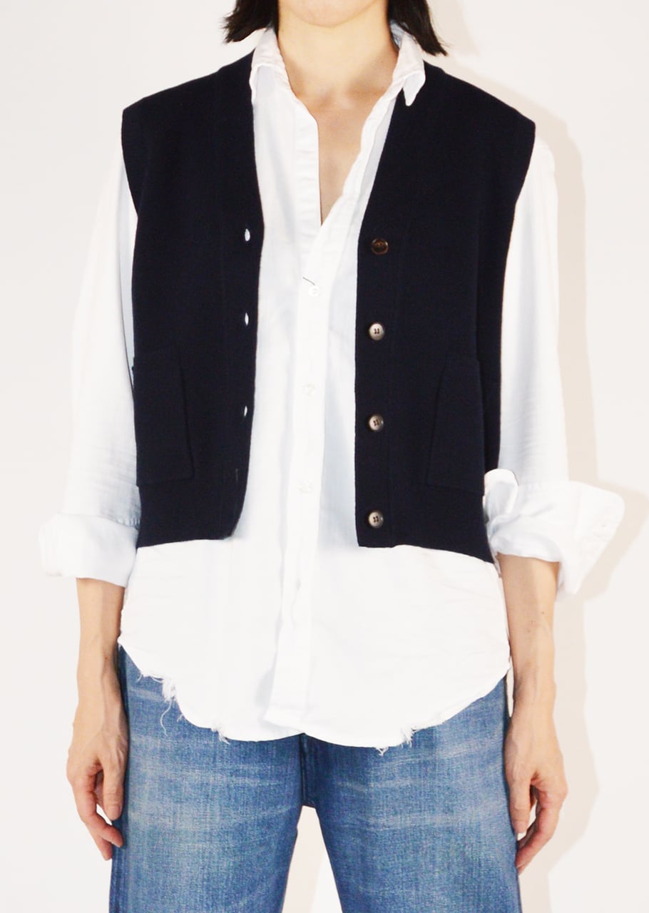 優しい肌ざわりのコットンベースの素材を使用した着心地が魅力のミラノリブのニットベスト。すっきり開いたVネックが抜け感を演出、シックな色合いとほどよくゆったりしたシルエットで着まわし力も抜群です。ややオーバーショルダーのデザインが今季ならではのポイントに。