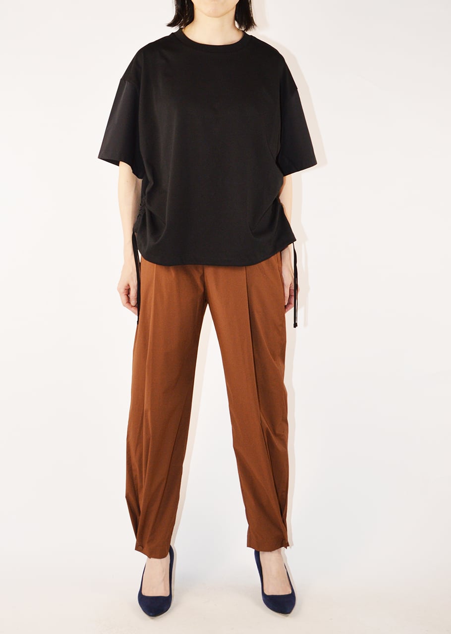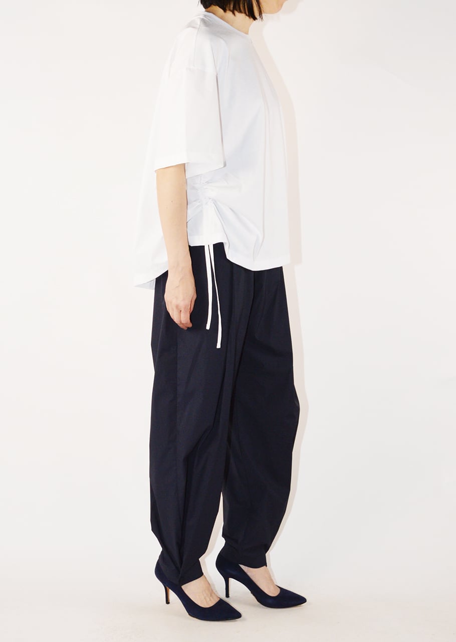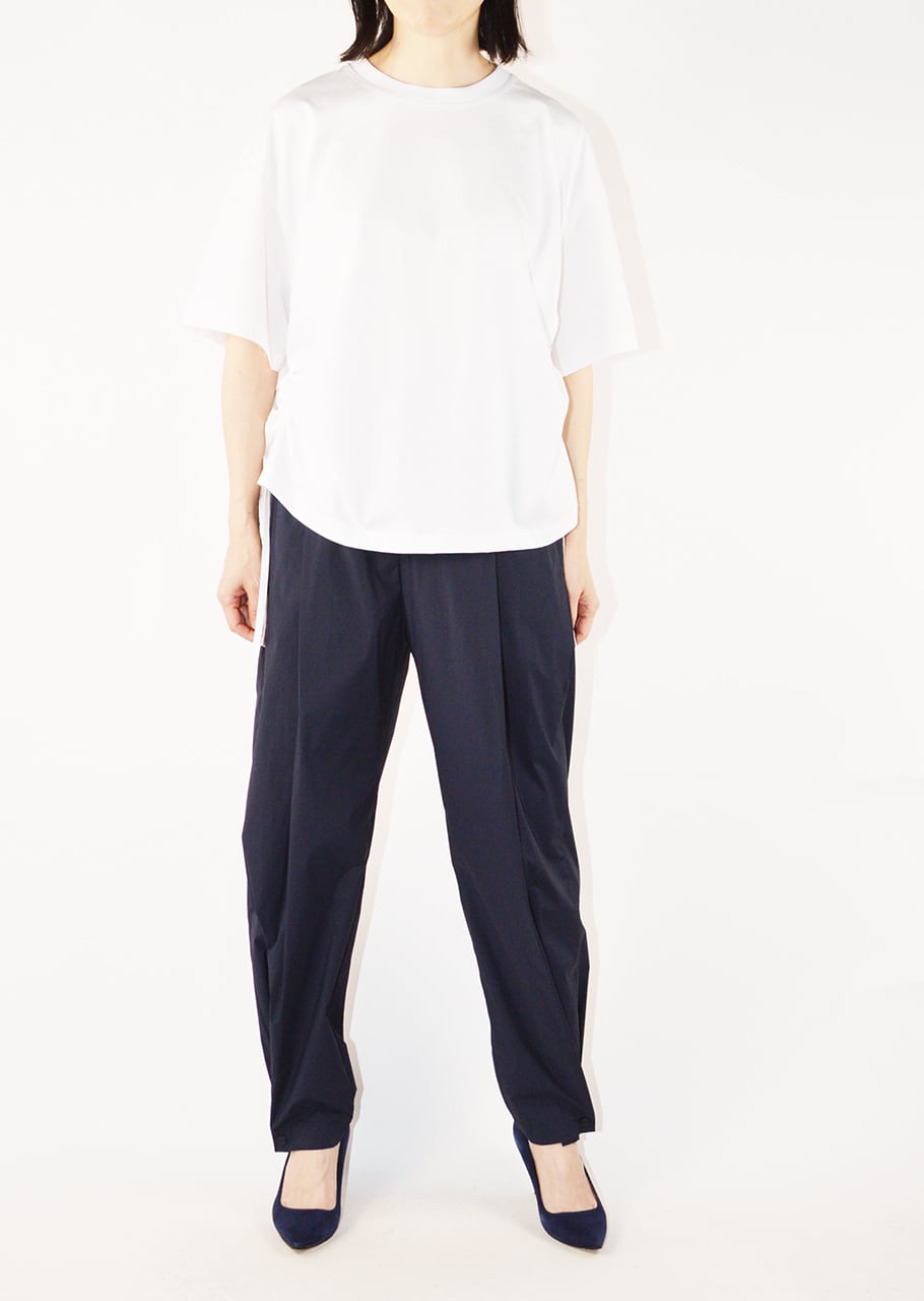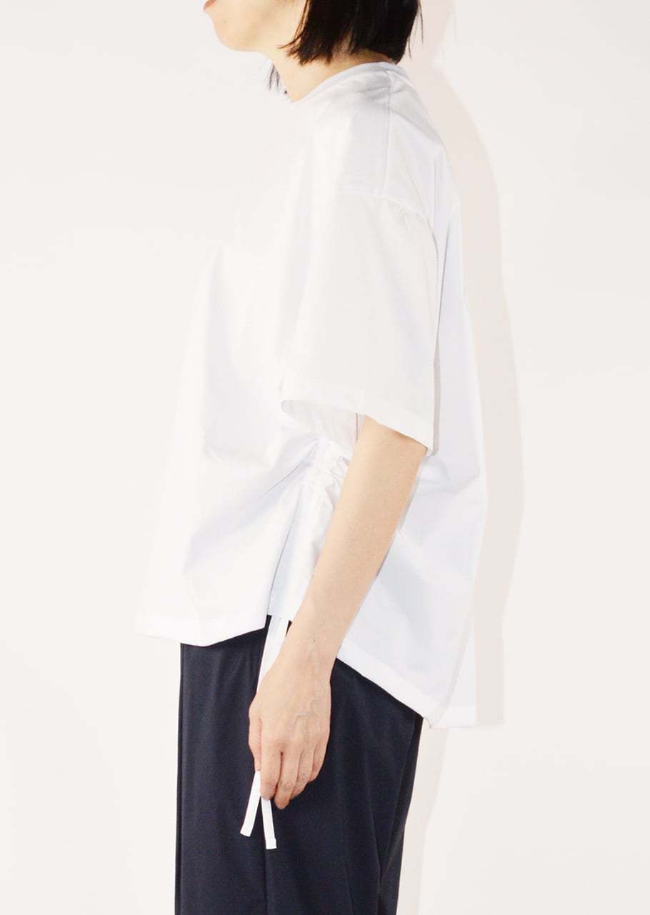 柔らかな肌触りと適度な張りが上品なTシャツです。スポー ティな表情と快適な着心地を実現、ゆった り目の身頃の両サイドには、縦にドロー コードがあり、絶妙な丈感を調整できる優 れた1枚です。