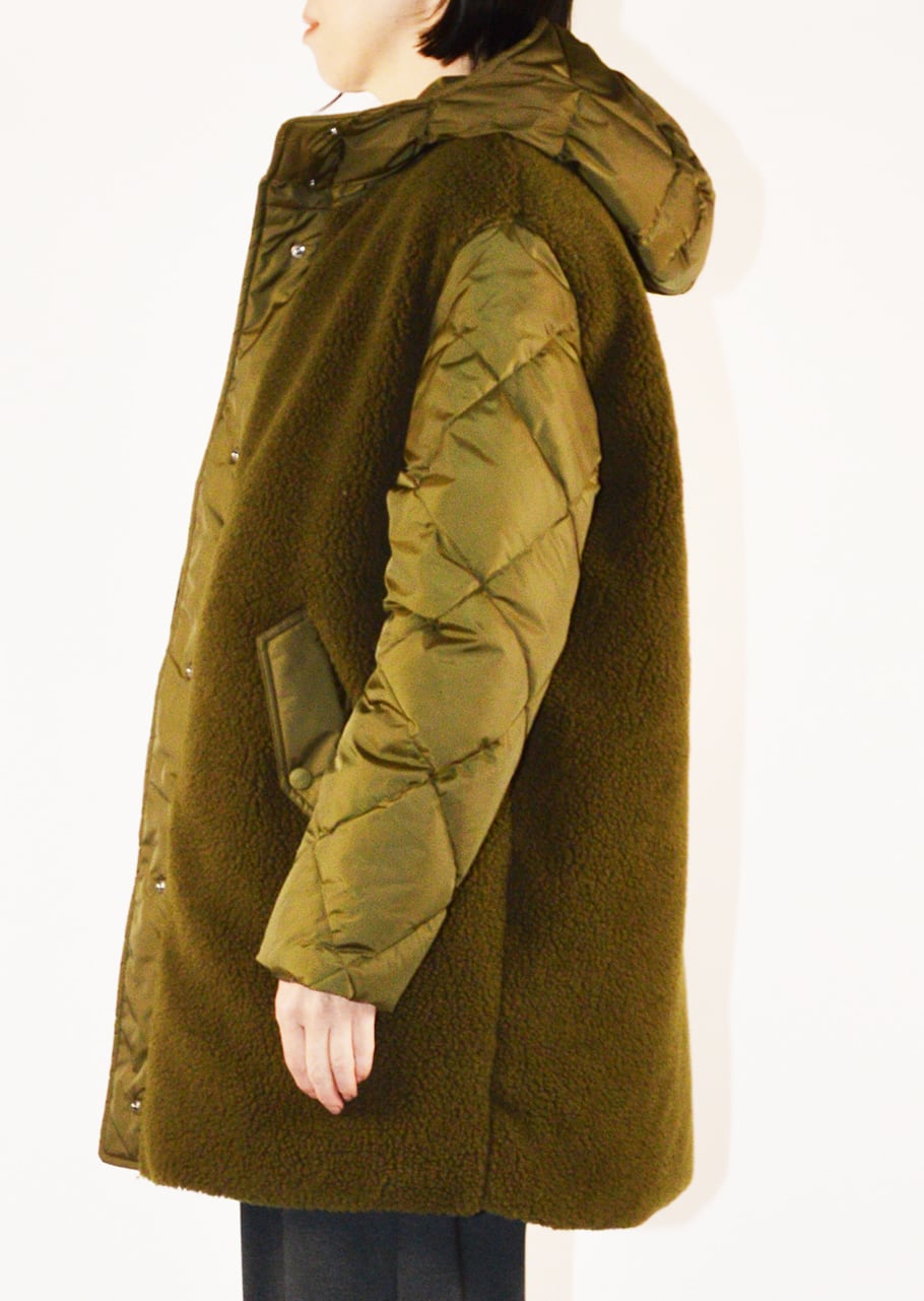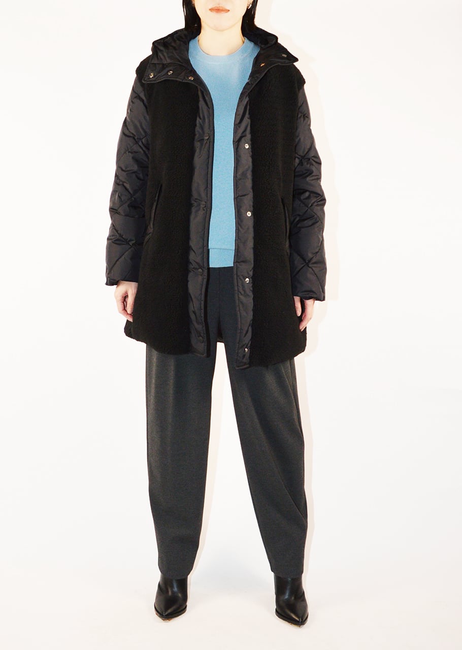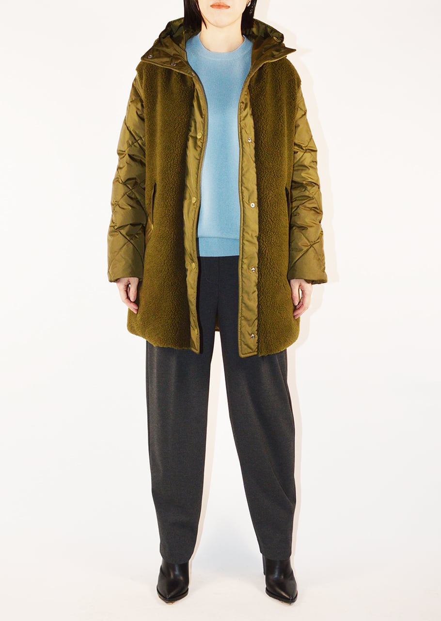 ミニマルなデザインに強撥水・防寒・軽量を兼ね備えた異素材コンビネーションのボアコート。しっかりダウンを詰めて高い防寒性を保ちながらも、ゆるやかに身体にフィットするシルエットで仕上げられています。アウトドアの印象のボアをHERNO(ヘルノ)ならではの解釈で上品にまとめあげられているところが魅力の一着。