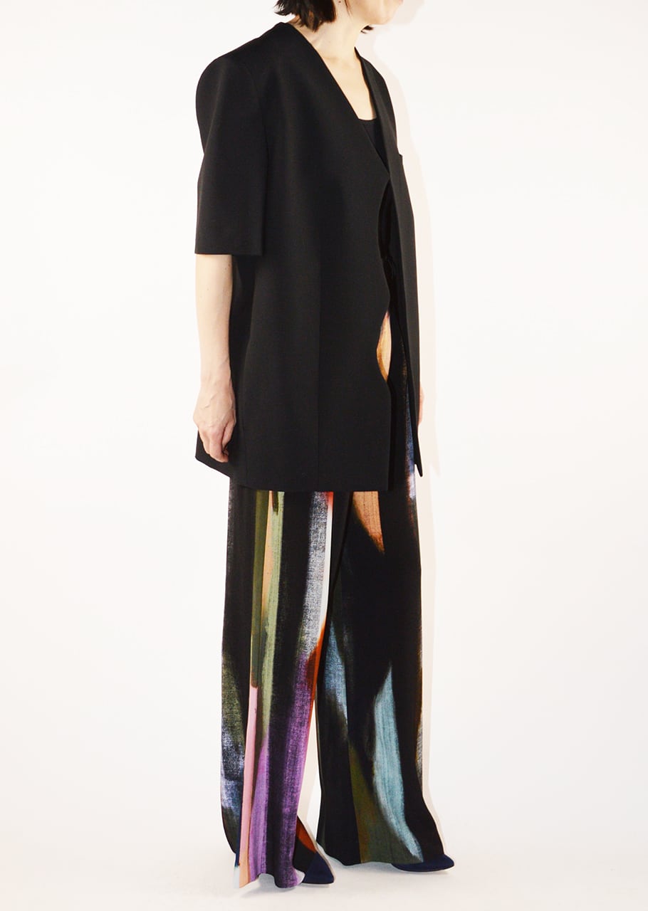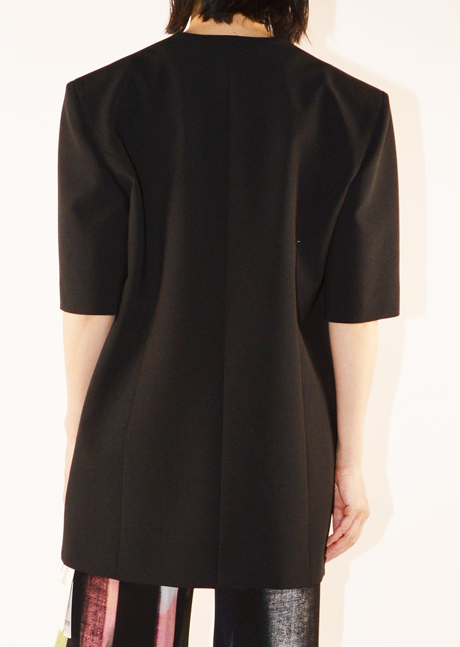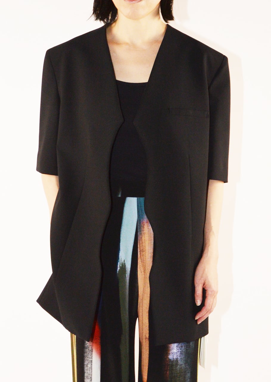 独創的なカッティングが新鮮なハーフスリーブジャケット。シャープなカッティングで仕上げたジャケットは緩やかなカーブとエッジを組み合わせたユニークなラインが唯一無二のバランス。