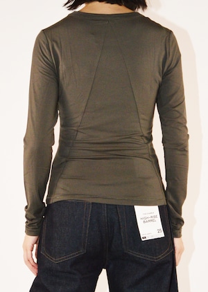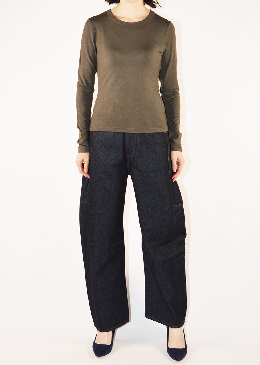 ボディにフィットするコンパクトなクルーネックT。一枚で着た時に空きすぎず、すっきりとした顔まわり、バックスタイルの切り替えもポイント。これ一枚でデニムと合わせたり、ジャケットやシャツのインナーにもと、シーズンを通して活躍します。