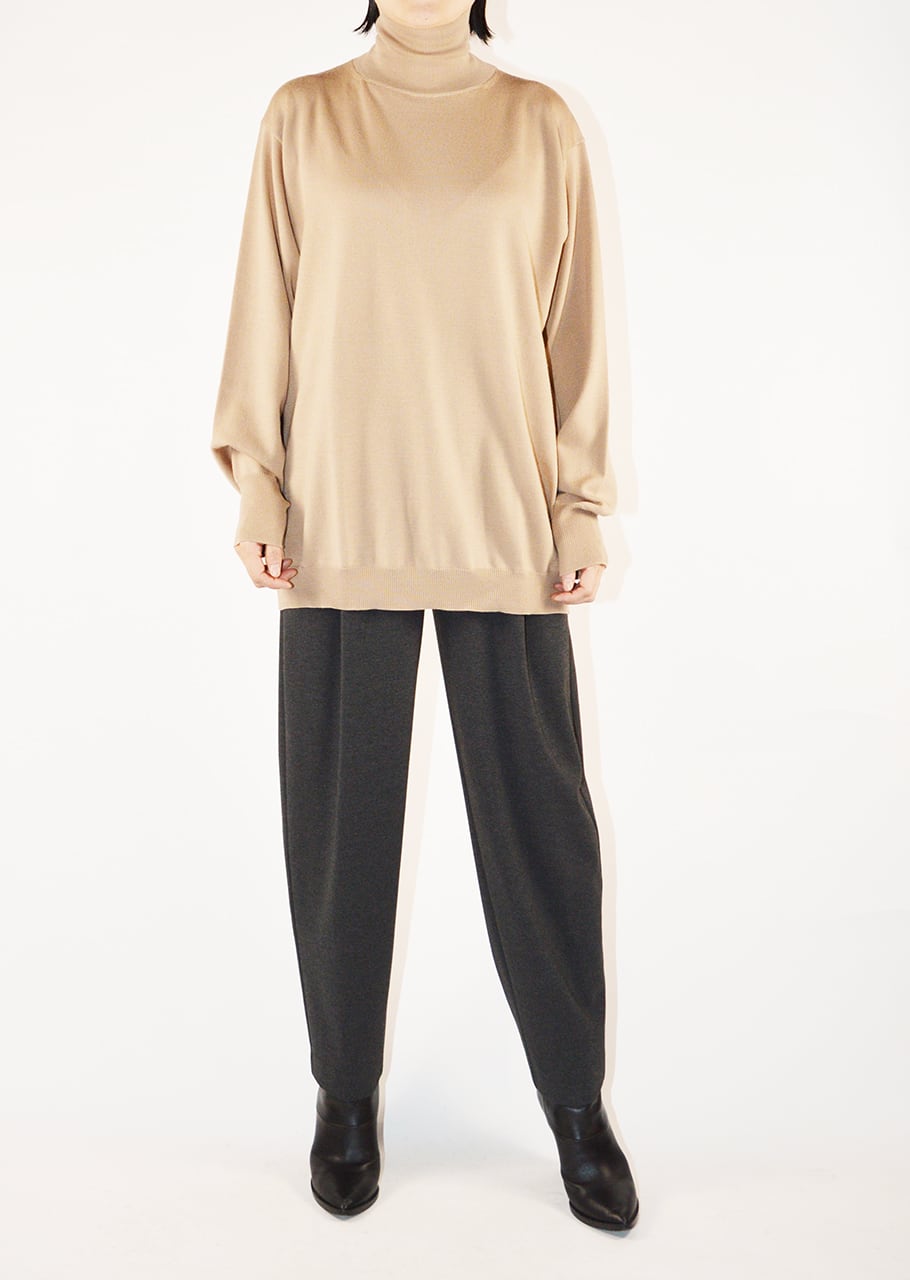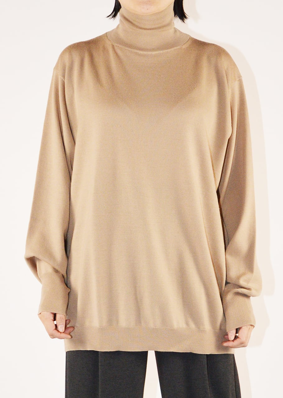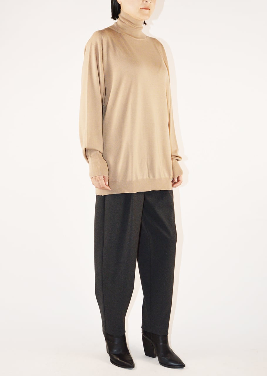 一見シンプルなデザインながらモダンなデザイン性を感じさせるこちらは、ハイネックが洗練された印象をプラスするニットです。さりげないデザインがシンプルなコーディネートにこなれ感を演出、薄く柔らかなエクストラファインメリノで、シーズン長く着ていただけます。