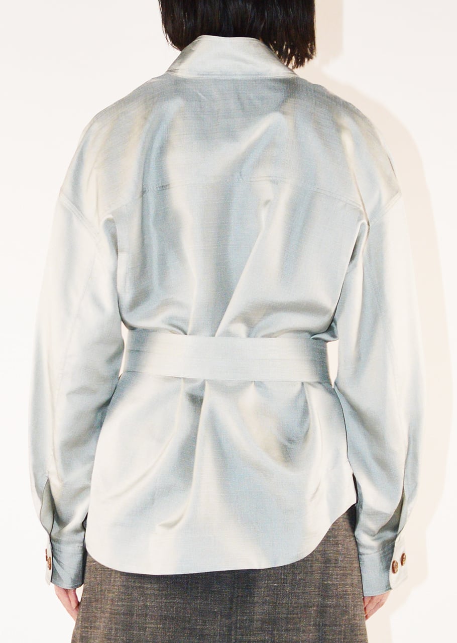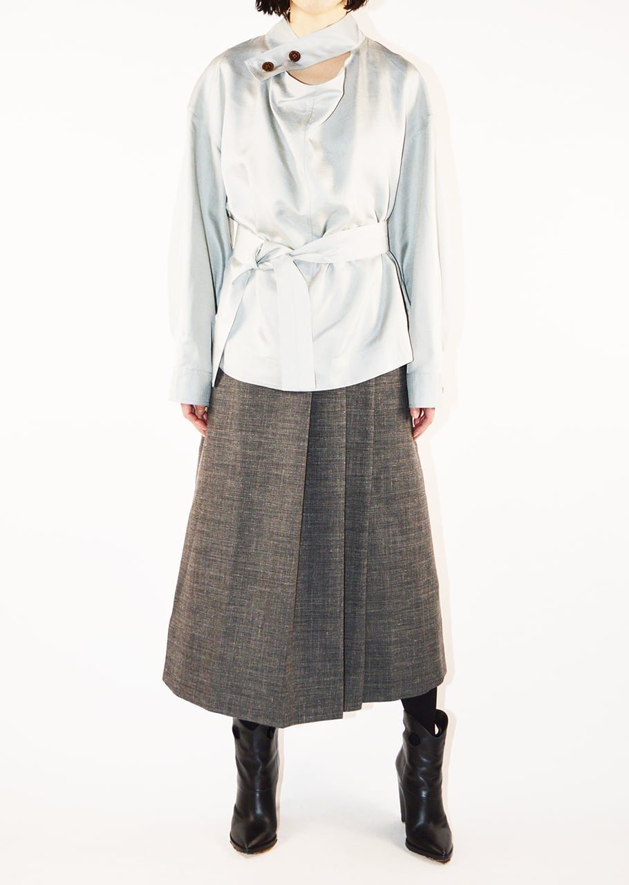 ハリがありつつもソフトで心地よく、上品な表面感も味わうことができるブラウス。ヒップが隠れる着丈で、パンツからスカートまで幅広いボトムとも好相性。リラックスしたムードを演出し、着心地も抜群。もちろん綺麗なボトムを合わせても良く、オンオフ問わず活躍します。