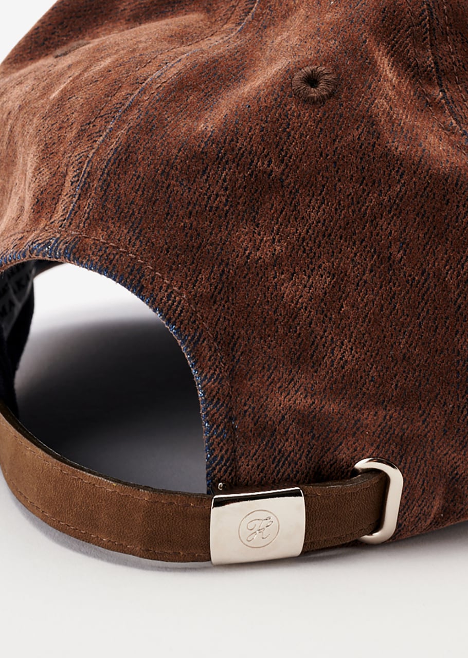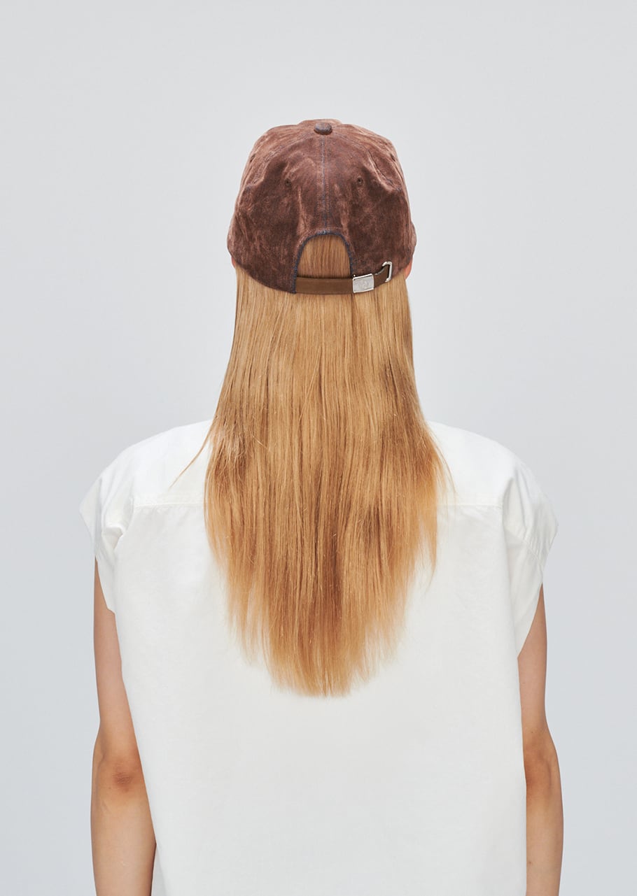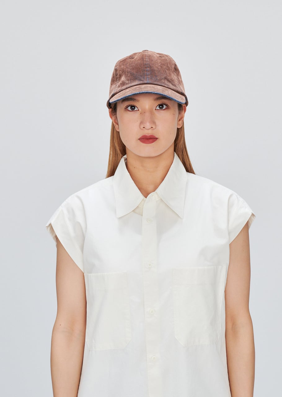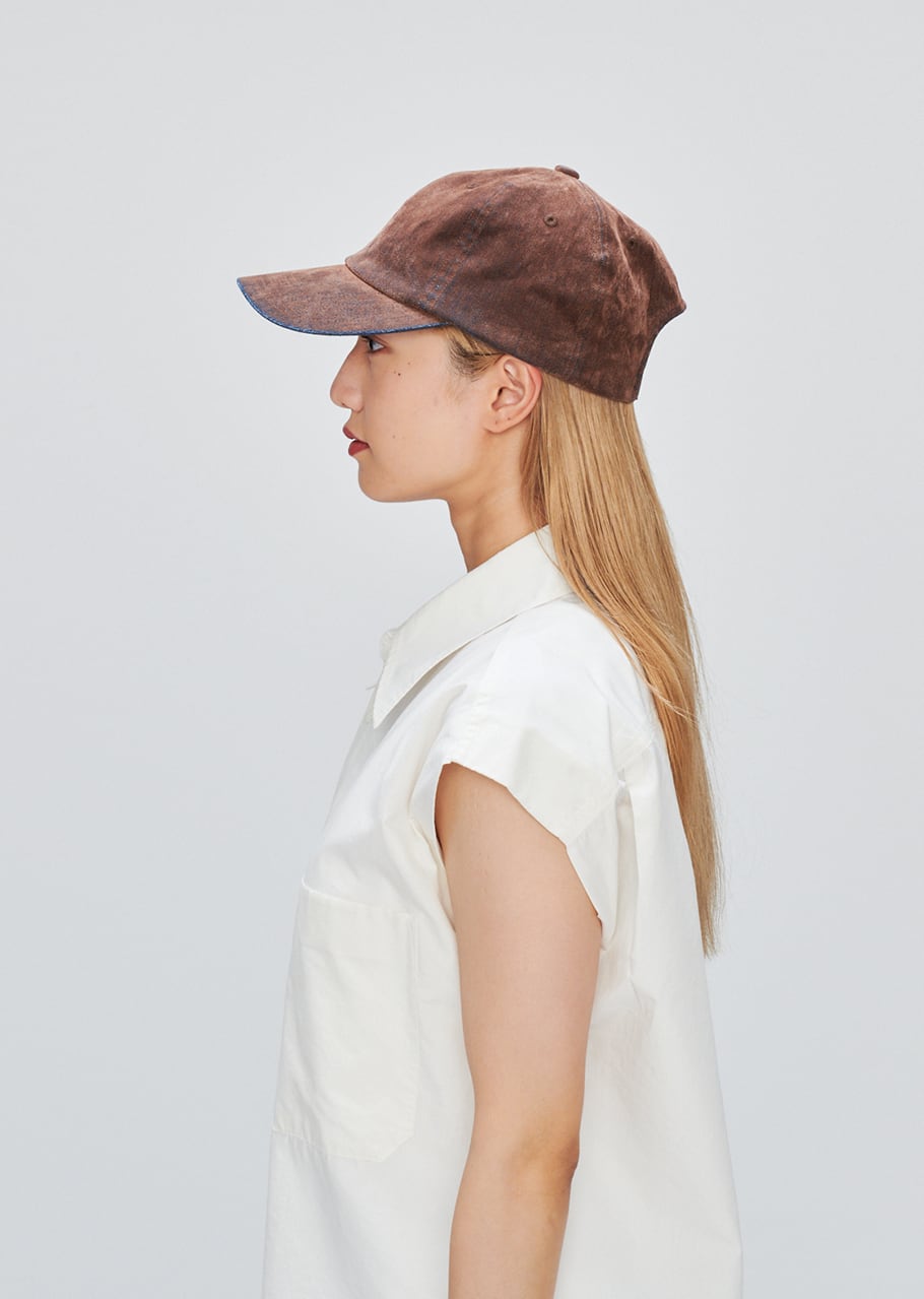 コットンデニムにフロッキープリントを施し、経年変化を楽しめるアイテムです。ヴィンテージフィニッシュが味わい深く、 共地のアジャストベルトにオリジナルスライドバックルがアクセントに。ハンドウォッシュ可能なのも魅力です。