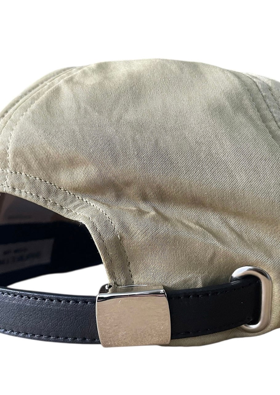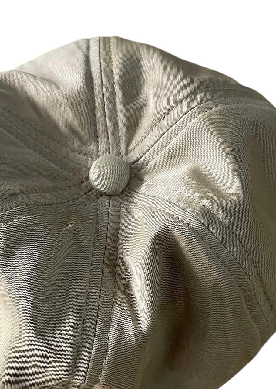 艶のあるレーヨンコットンサテンのシンプルなキャップです。アイレットを省いたミニマルな仕上がりで、ウォッシャブルレザーのアジャストベルトにスライドバックルがアクセントになっています。ハンドウォッシュ可能なのも魅力です。