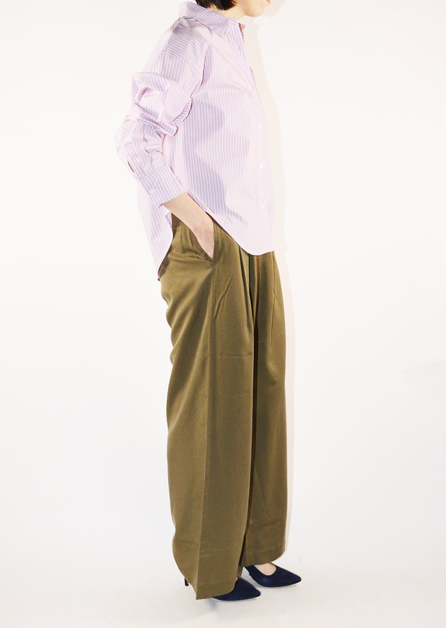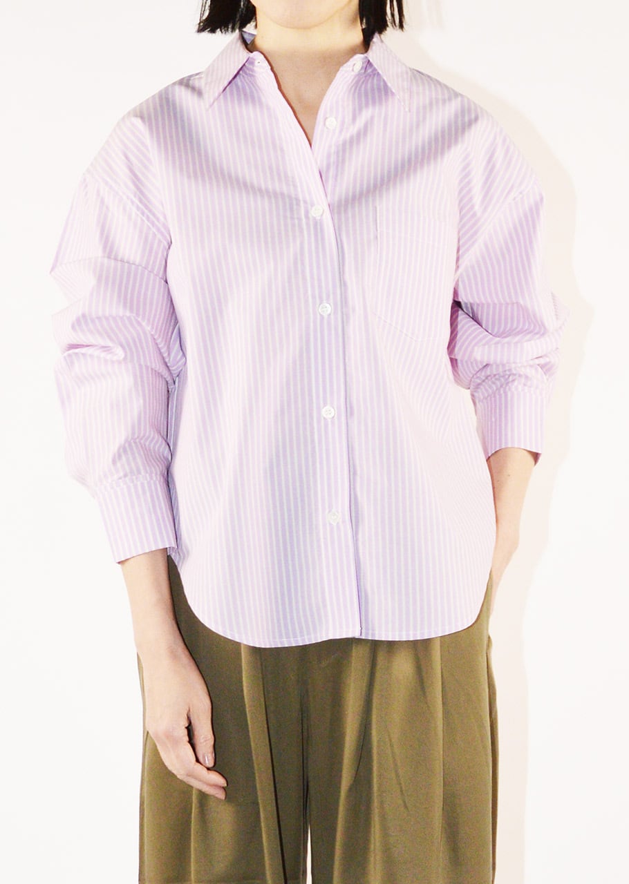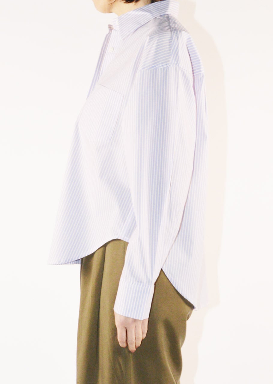 コットン100%の高密度に織り上げられたマルチストライプシャツ。ルーズフィットでリラクシーなデザインでいながら、上質なブロード素材でクリーンな印象に。サイドに切り替えのあるディテールで一枚はもちろん、インナーにまたTシャツの羽織りにと幅広いスタイリングが可能です。