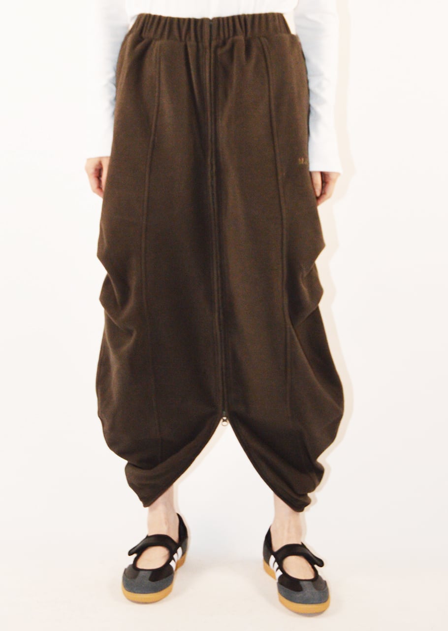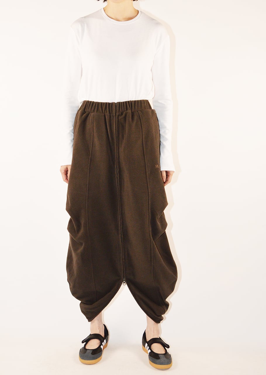 摩擦や引き裂き,擦り切れにとても強いCORDURA(コーデュラ)のフリースを採用のスカート。前後の中心にファスナーで開くデザインになっており、お好きな位置で開いて頂く事で着用が出来ます。また両サイドにタックを施す事により立体的なシルエットを演出。左脇のロゴ刺繍がポイントです。