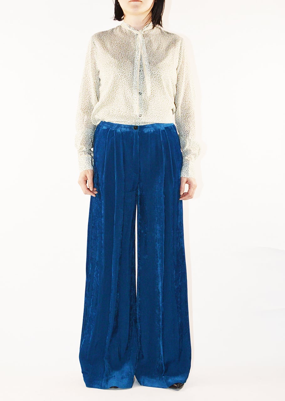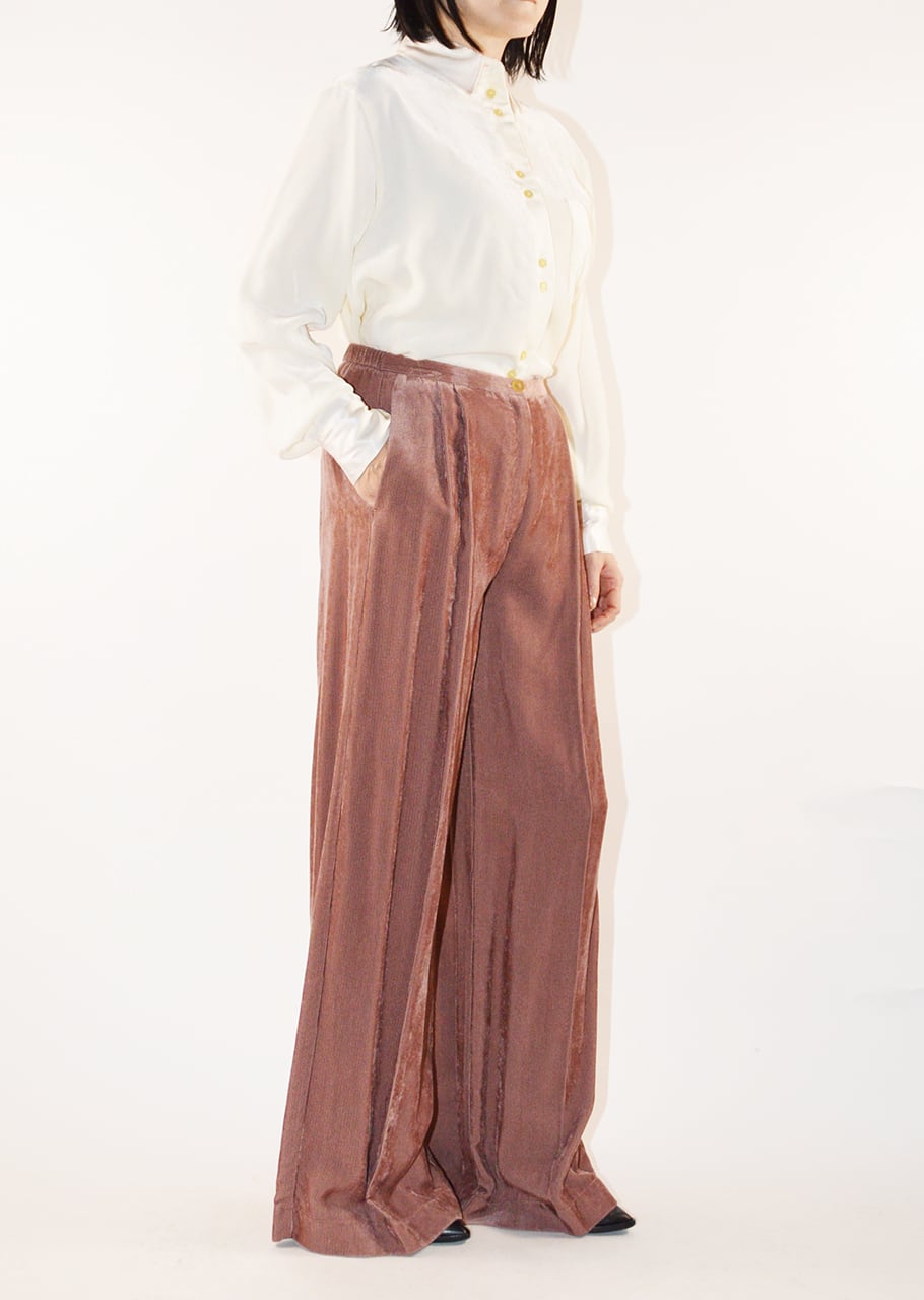 コーデュロイのカジュアルなムードをなめらかな素材で特別なムードに表現したパンツです。ワイドなシルエットが縦のラインを強調し、美しいシルエットを演出。シーズンを通して使えるため、様々に着こなし可能です。