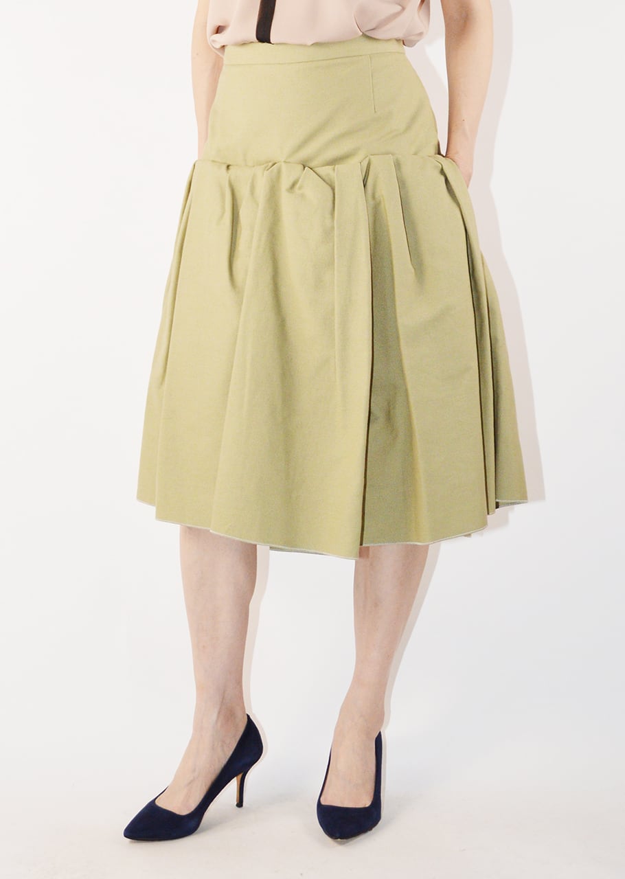 エレガントなデザイン、ディティールを、カジュアルなコットン素材で表現したユニークなスカートです。歩くたびに揺れるランダムな裾のシルエットが美しく、女性らしい印象に。ブラウスやジャケットで着れば端正な印象に、Tシャツを合わせて遊び心のある着こなしも素敵。