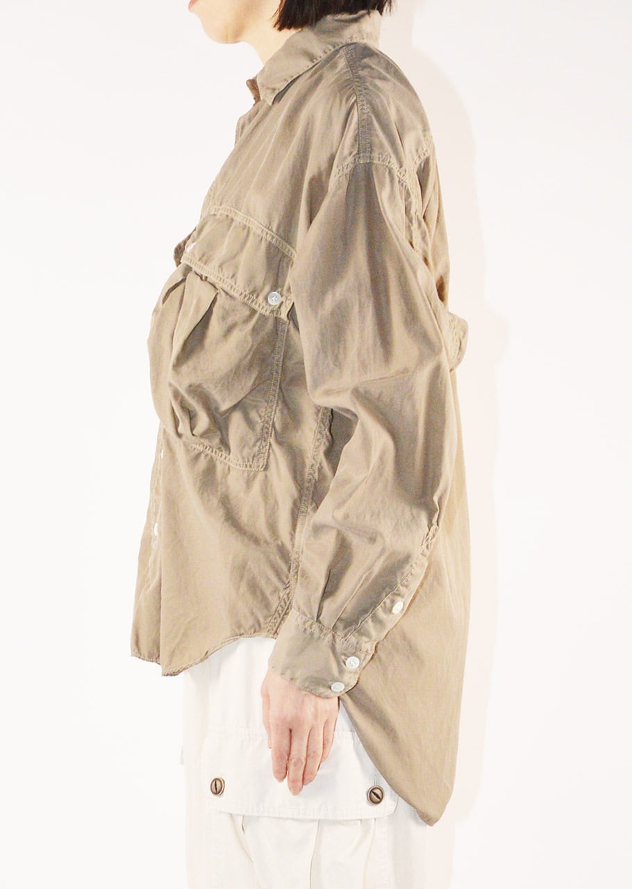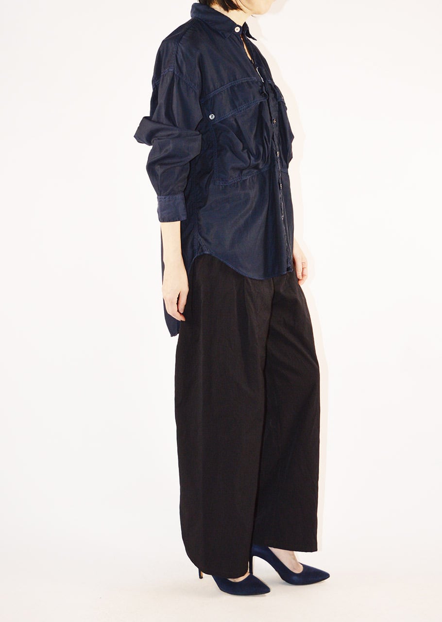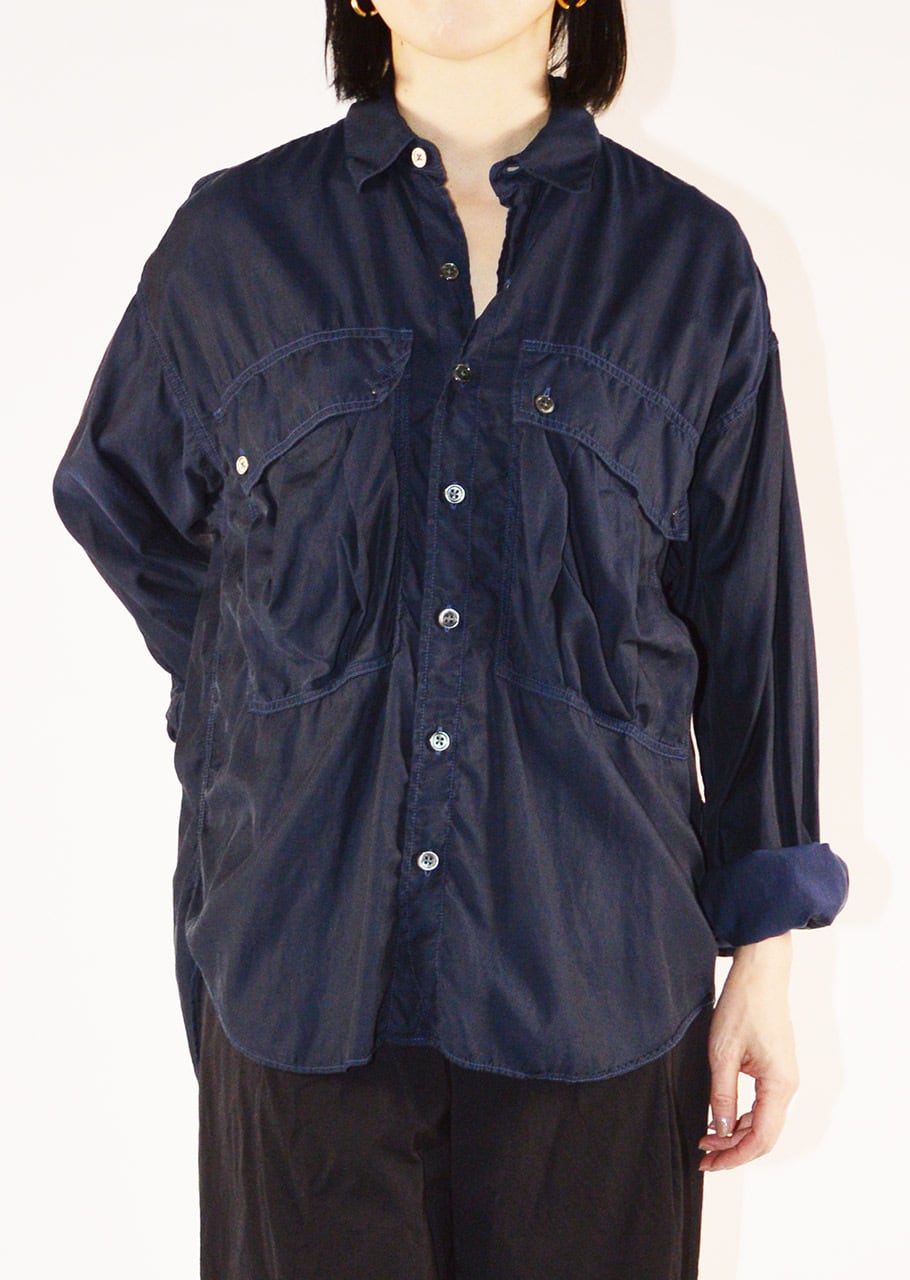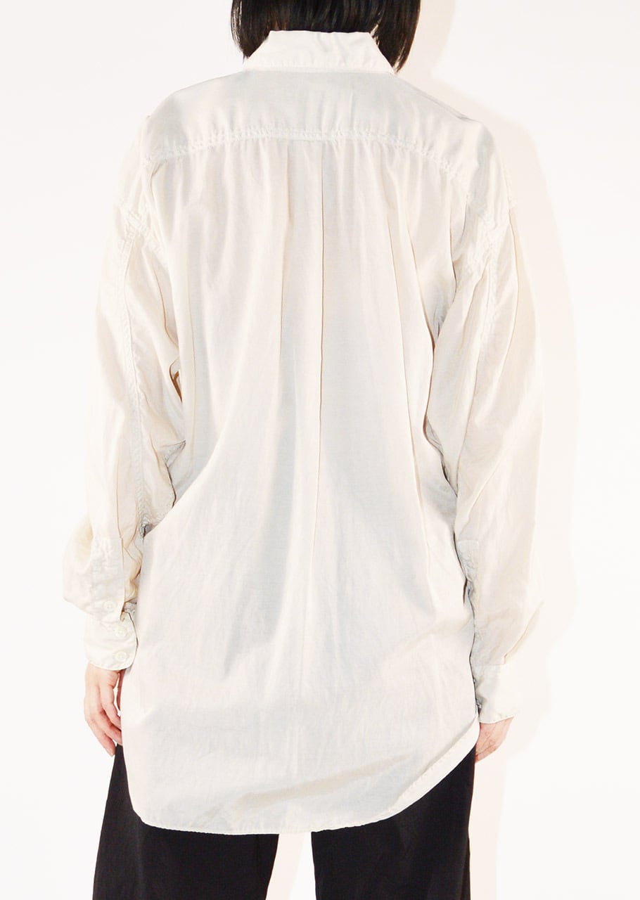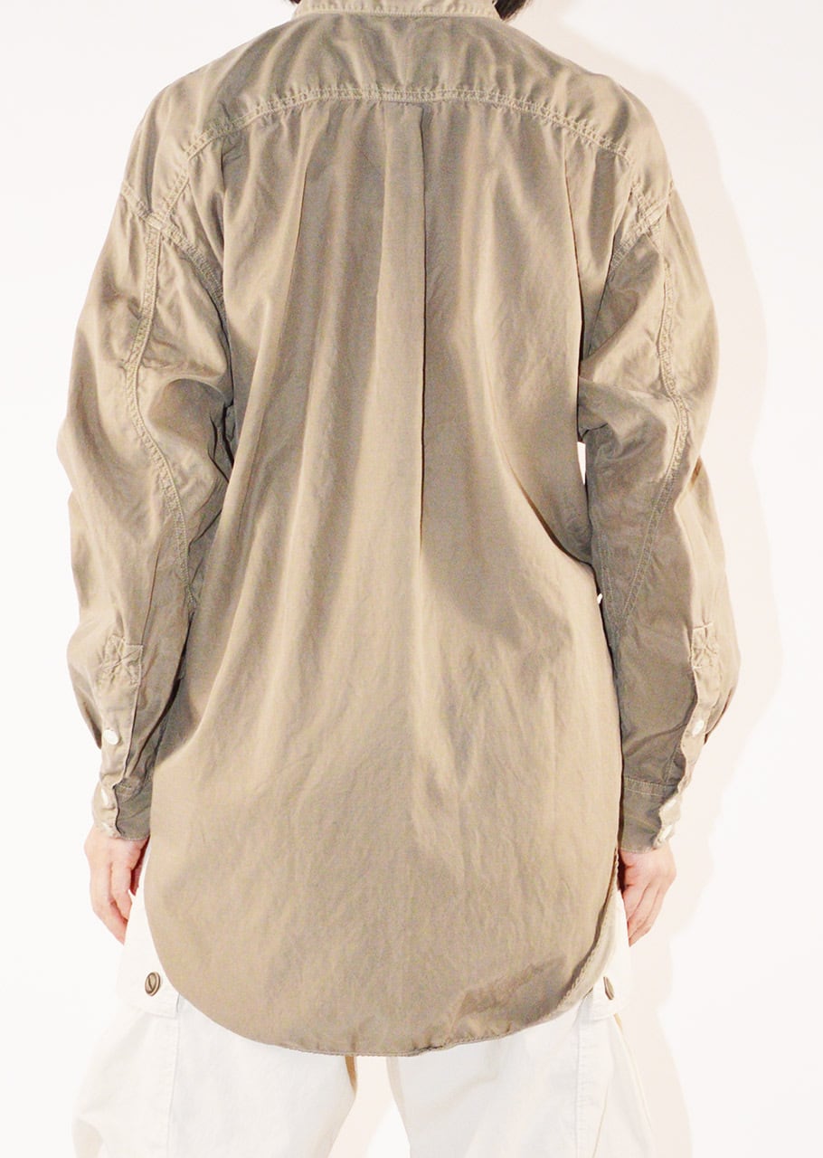 コレクションスタートからの定番であり、ベストセラーとなっているロングテールのパラシュートシャツ。ありそうでなかった、ほかには真似のできない絶妙なシルエットです。キュプラコットンをガーメントダイ、ヴィンテージ加工による縫い目のパッカリングもポイントです。今シーズンニューカラーのMOCAがラインナップ。