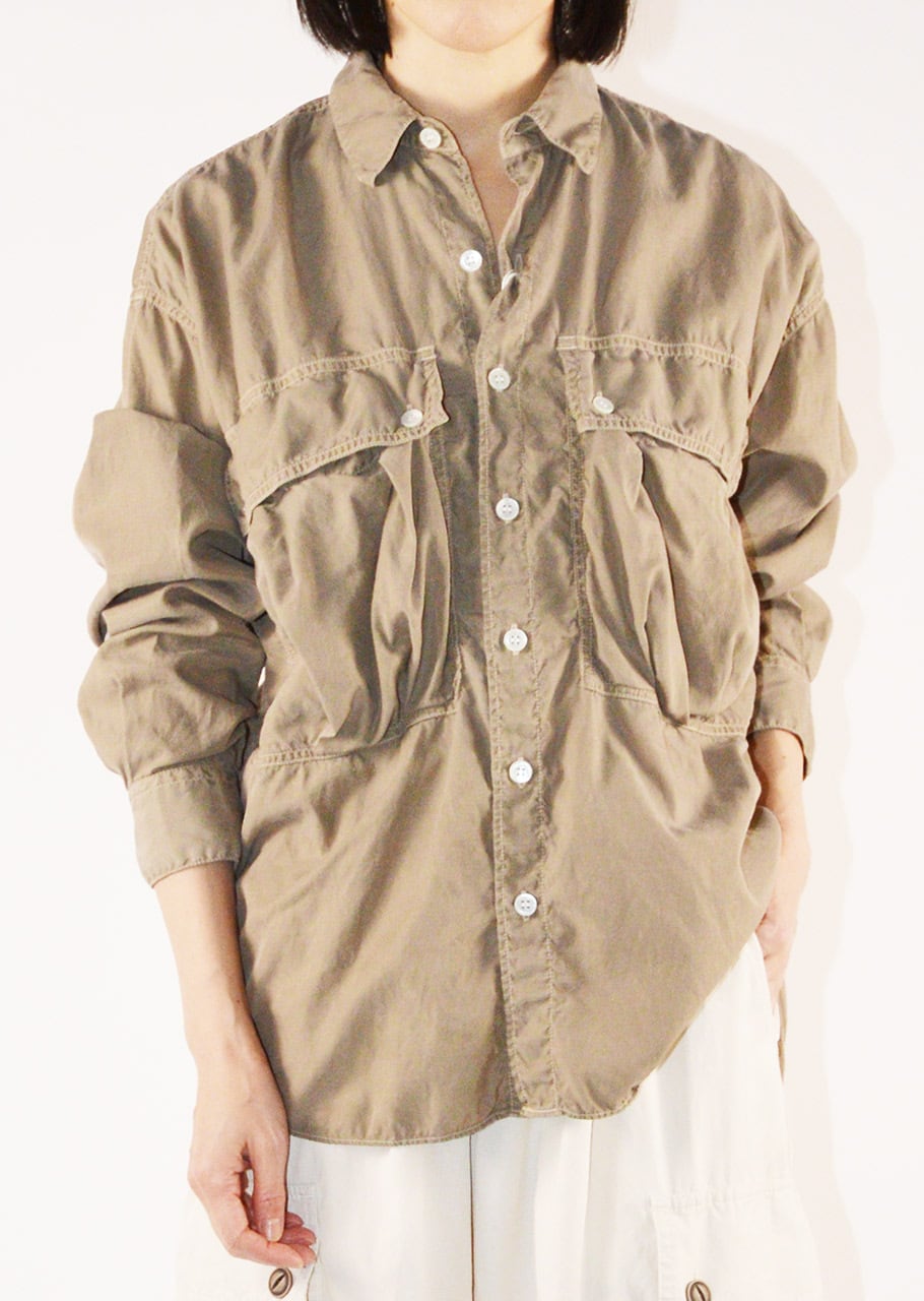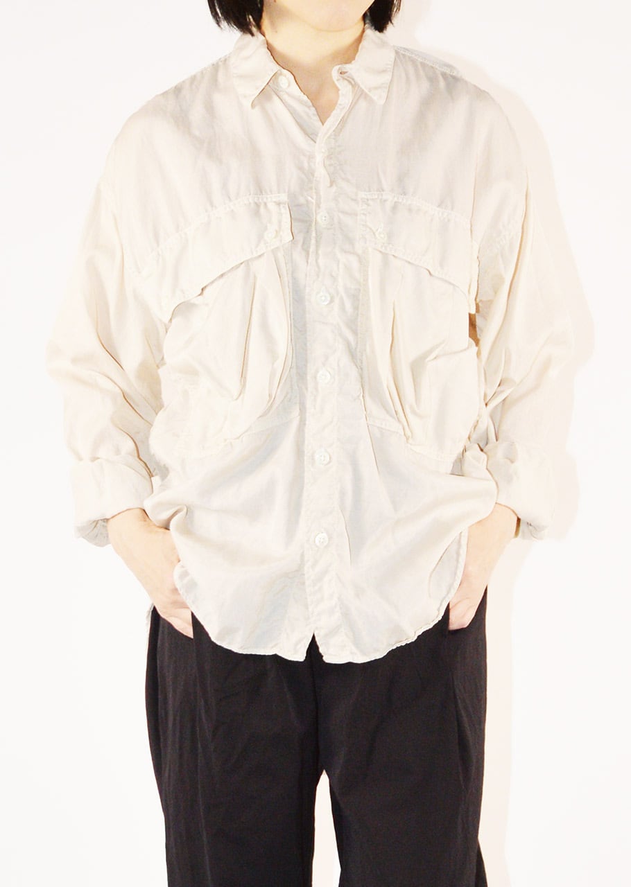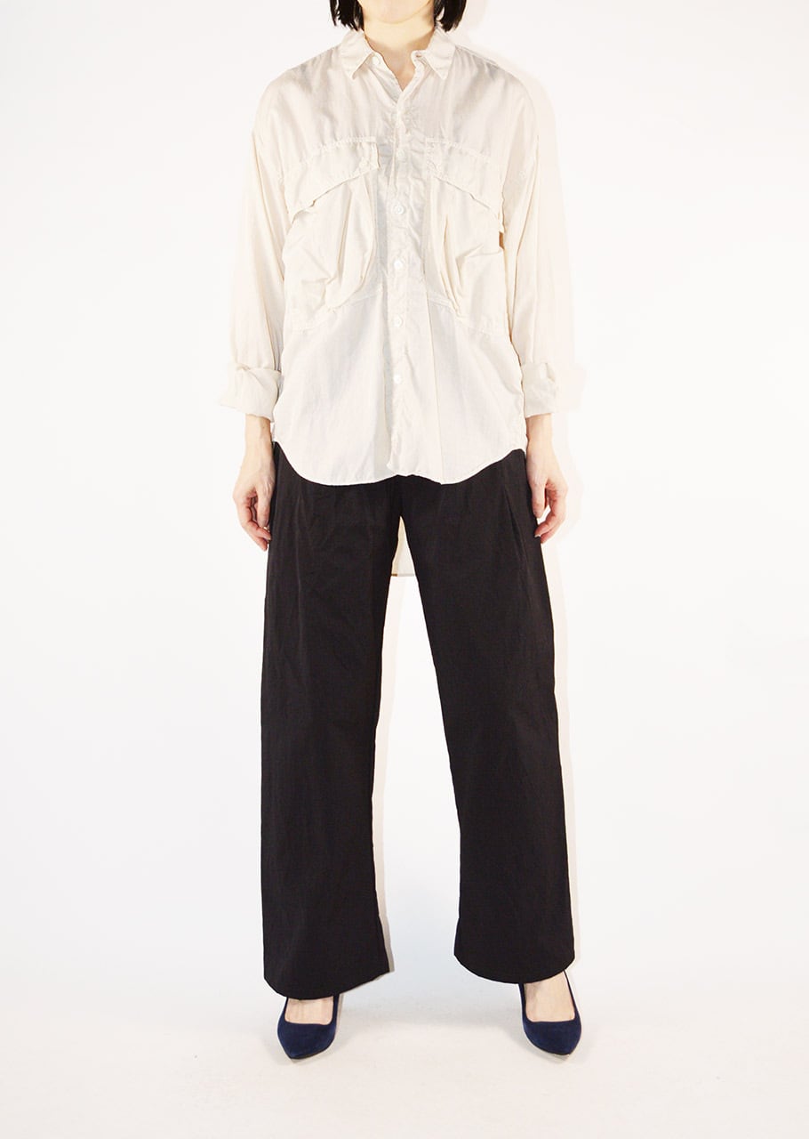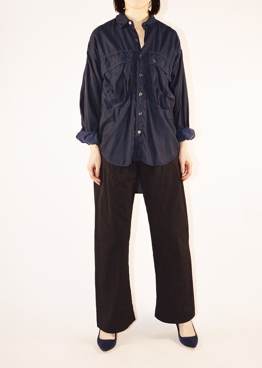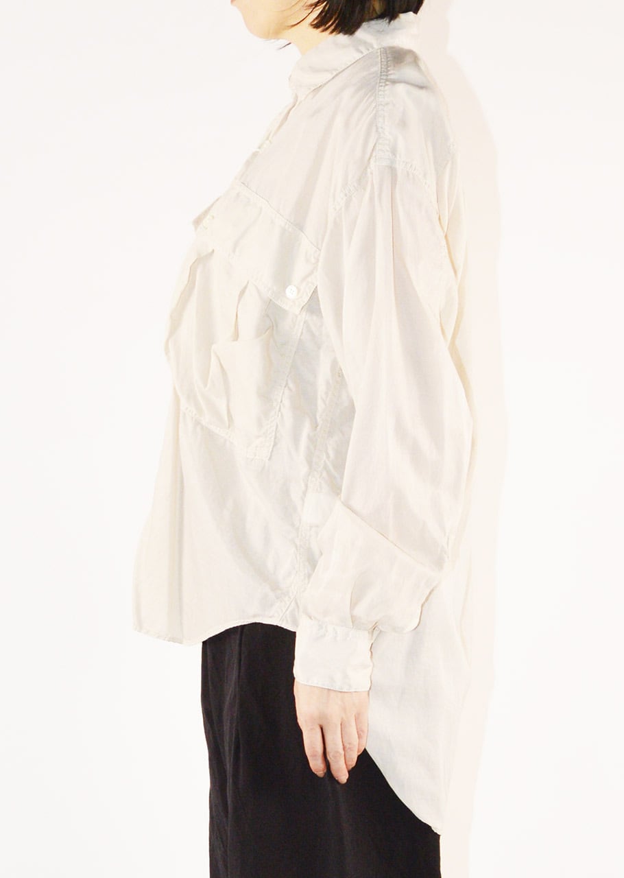 コレクションスタートからの定番であり、ベストセラーとなっているロングテールのパラシュートシャツ。ありそうでなかった、ほかには真似のできない絶妙なシルエットです。キュプラコットンをガーメントダイ、ヴィンテージ加工による縫い目のパッカリングもポイントです。今シーズンニューカラーのMOCAがラインナップ。