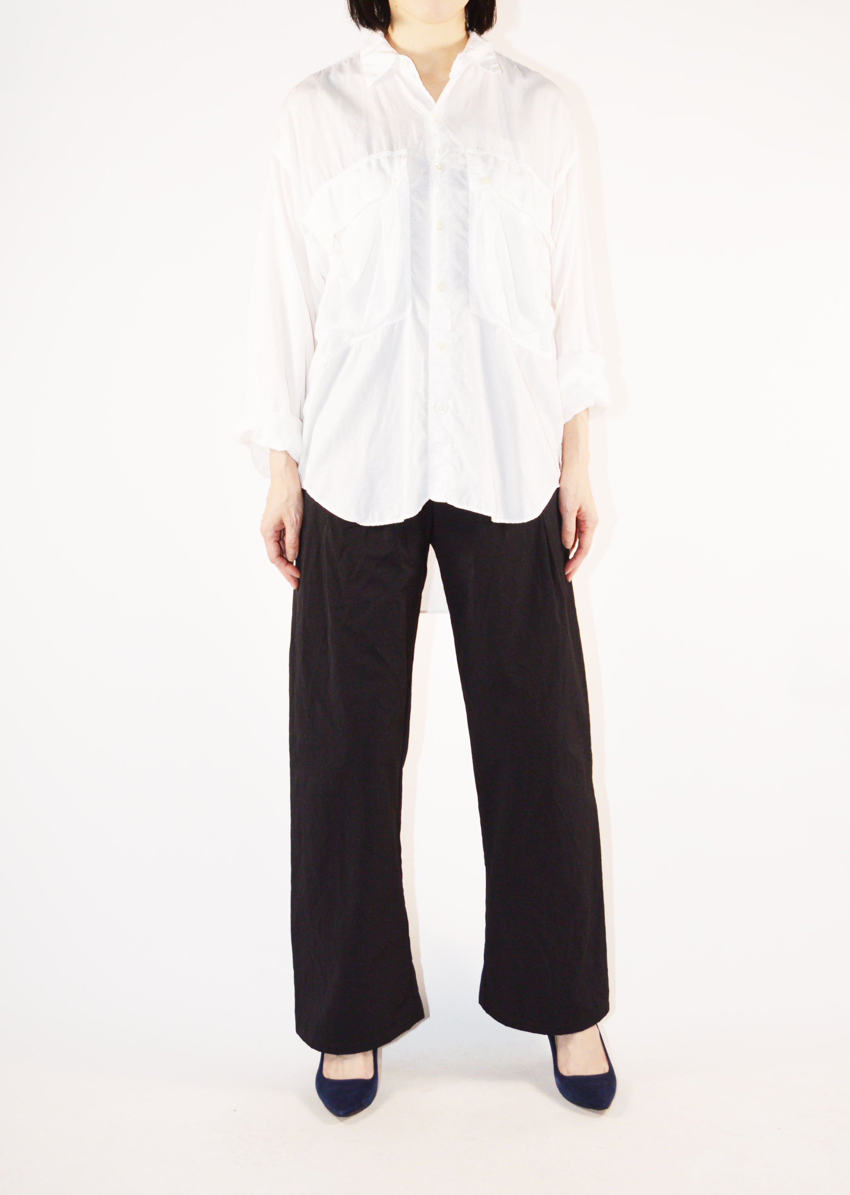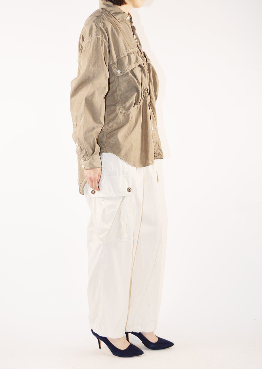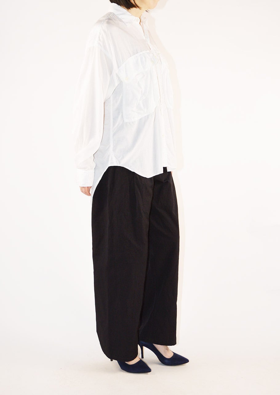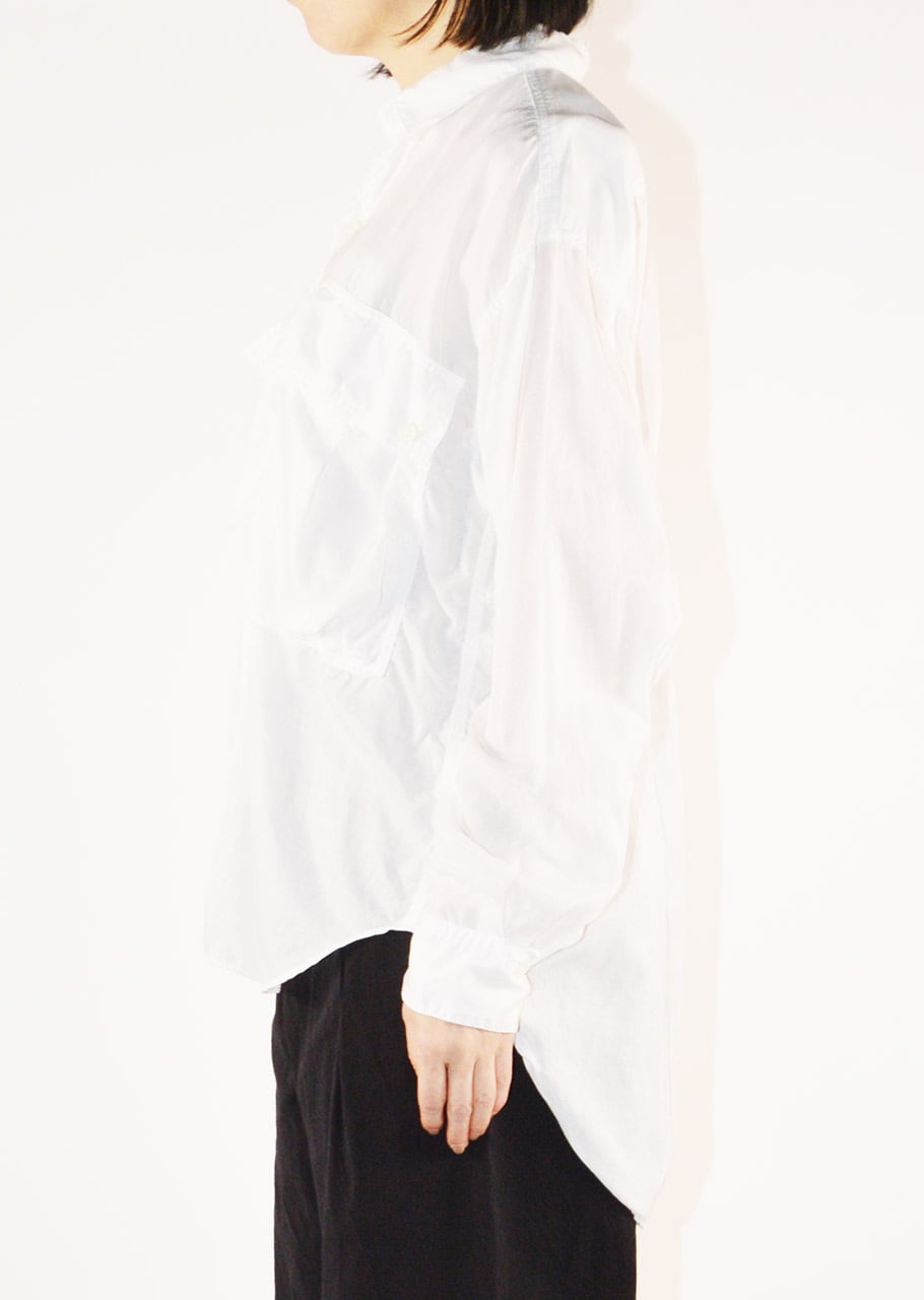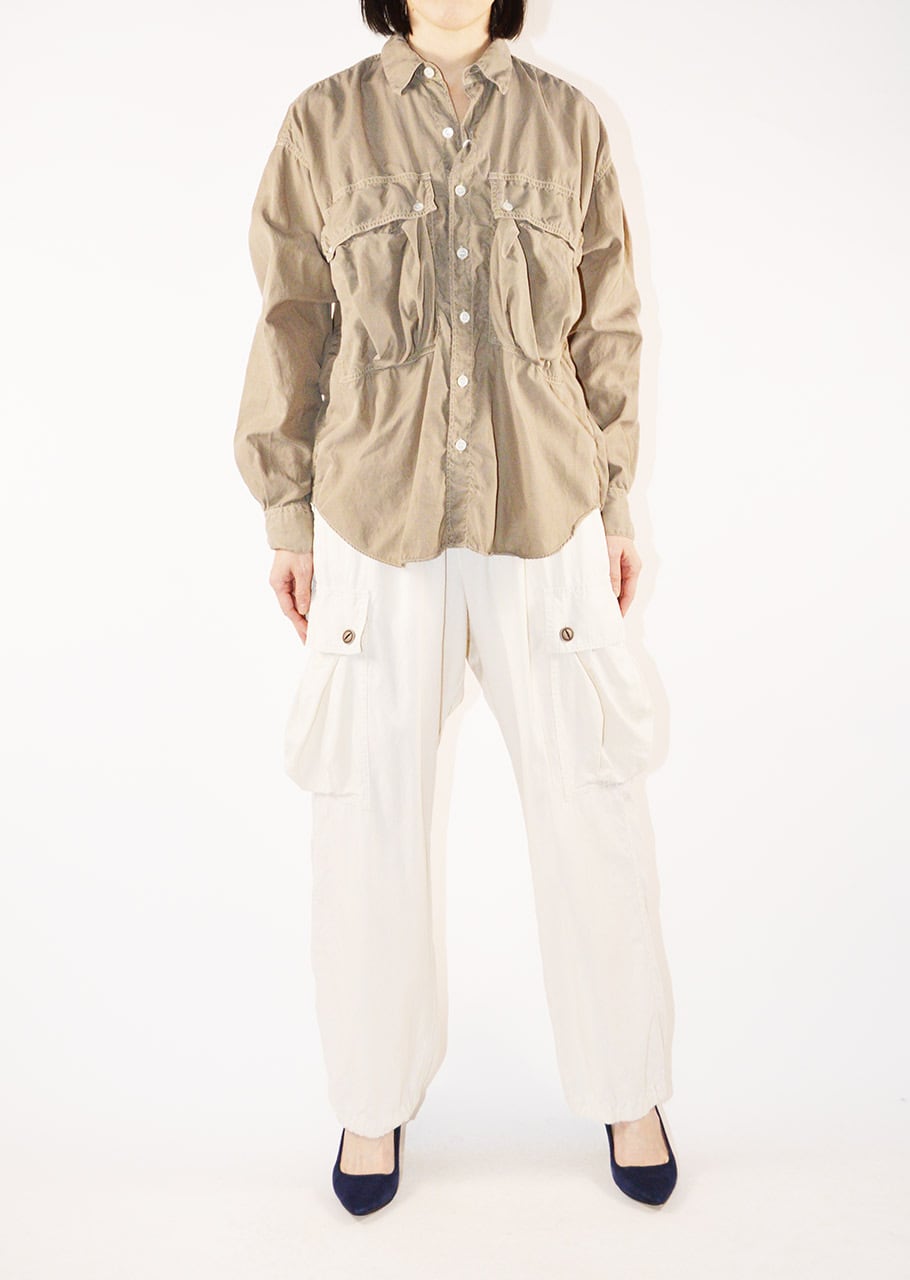 コレクションスタートからの定番であり、ベストセラーとなっているロングテールのパラシュートシャツ。ありそうでなかった、ほかには真似のできない絶妙なシルエットです。キュプラコットンをガーメントダイ、ヴィンテージ加工による縫い目のパッカリングもポイントです。今シーズンニューカラーのMOCAがラインナップ。