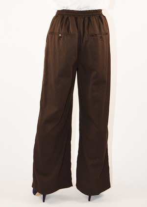 ウォッシャブル加工のウールギャバジンを用いたワイドパンツ。2プリーツのイージーパンツはウールの上質感を持ちながらも製品洗いすることで、よりこなれた着こなしが可能に。オンオフ問わず使える優秀なアイテムです。