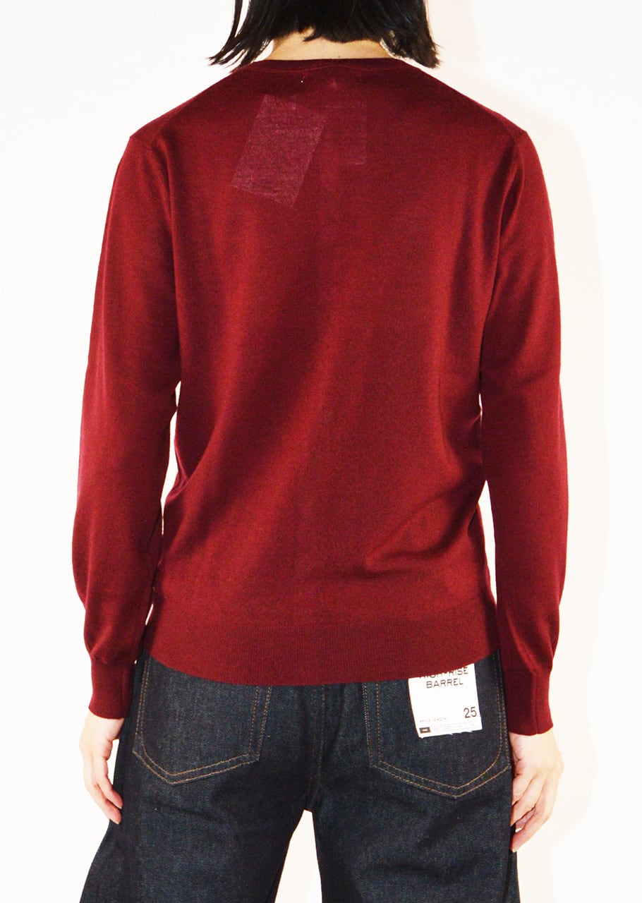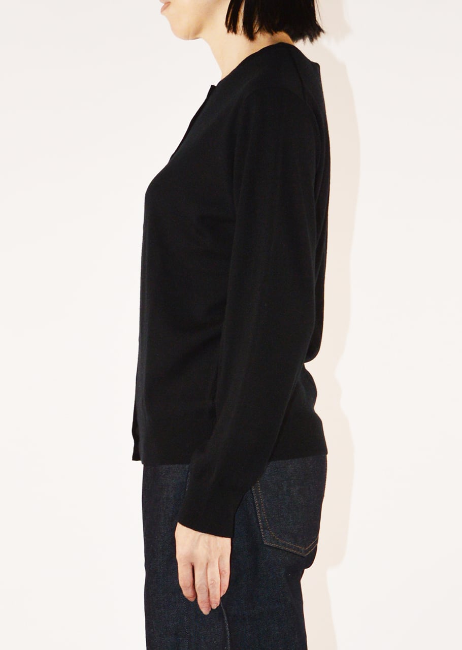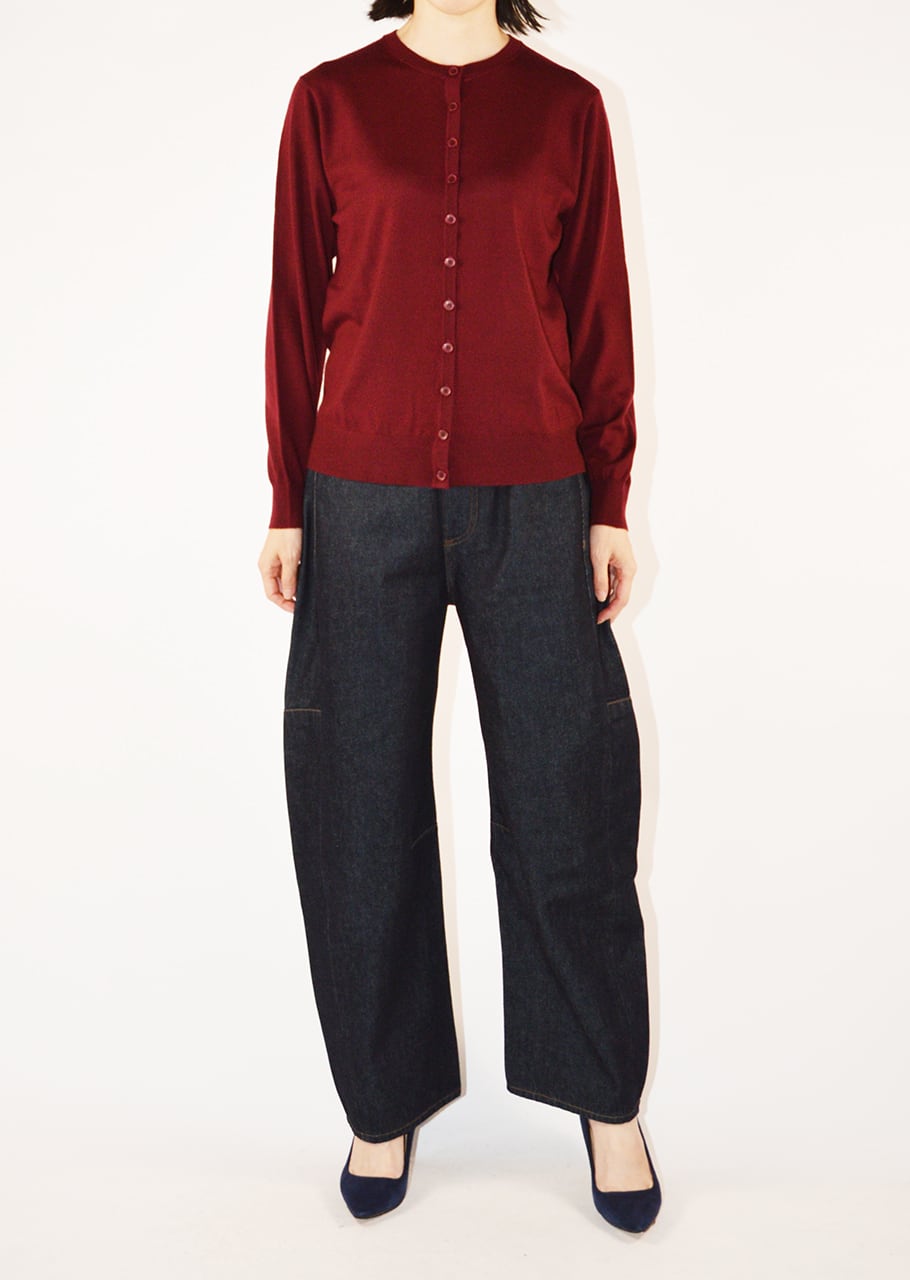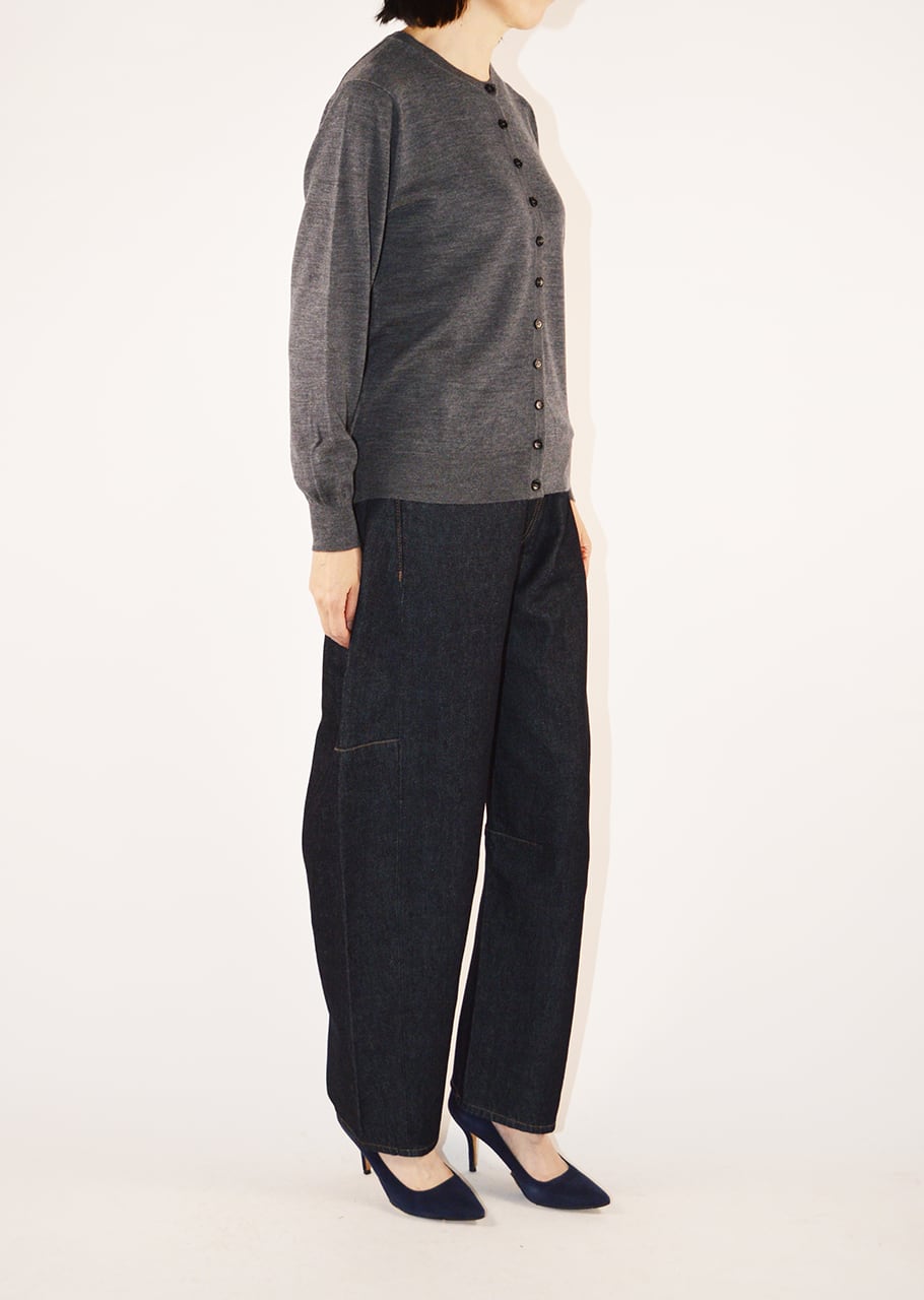 ウール素材の中でも最高級と云われるメリノウール。繊維が細く、しなやかで優しい着心地の糸を使用したクルーネックのカーディガンです。ボタンを多数つけることで、デザインのアクセントになっています。