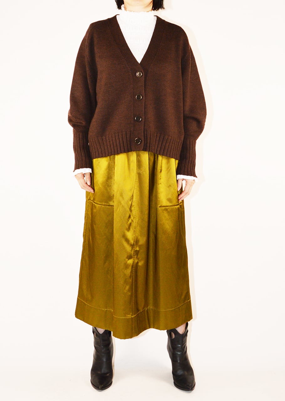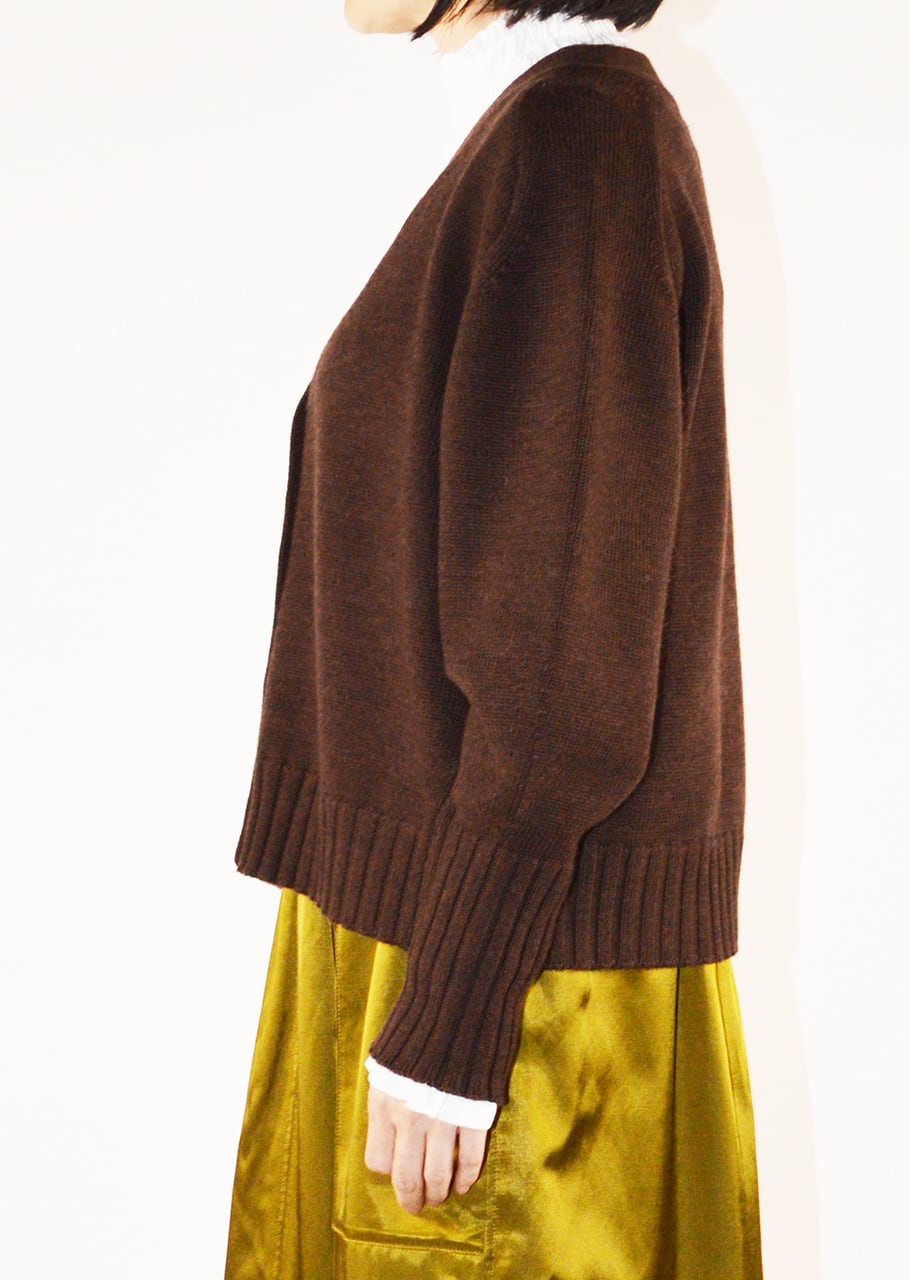 ベーシックなVカーディンガンを、身幅や袖のデザインで新しさを表現している一着です。インナー次第でカジュアルにもキレイめにもスタイリング可能な一着です。