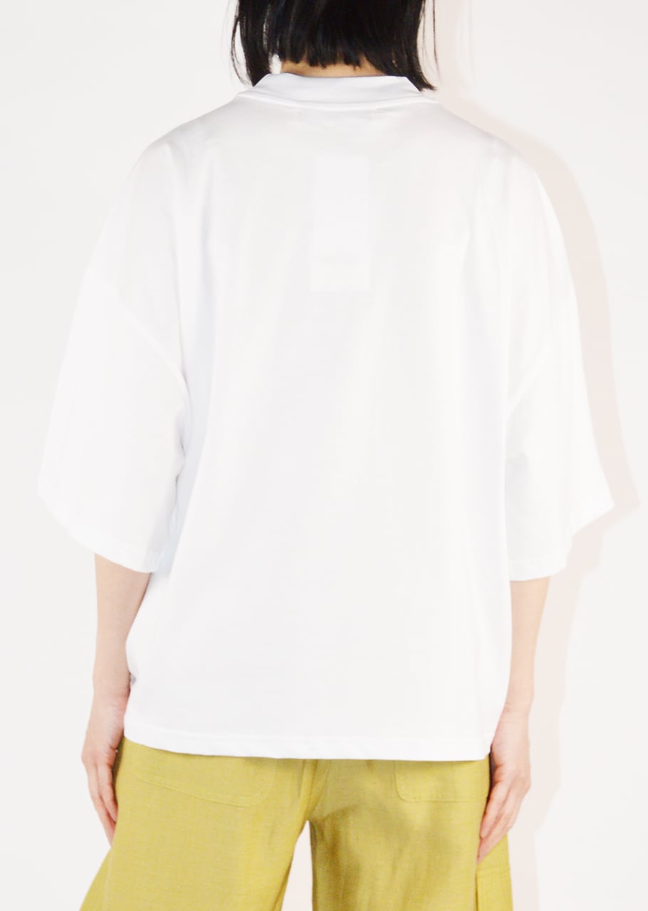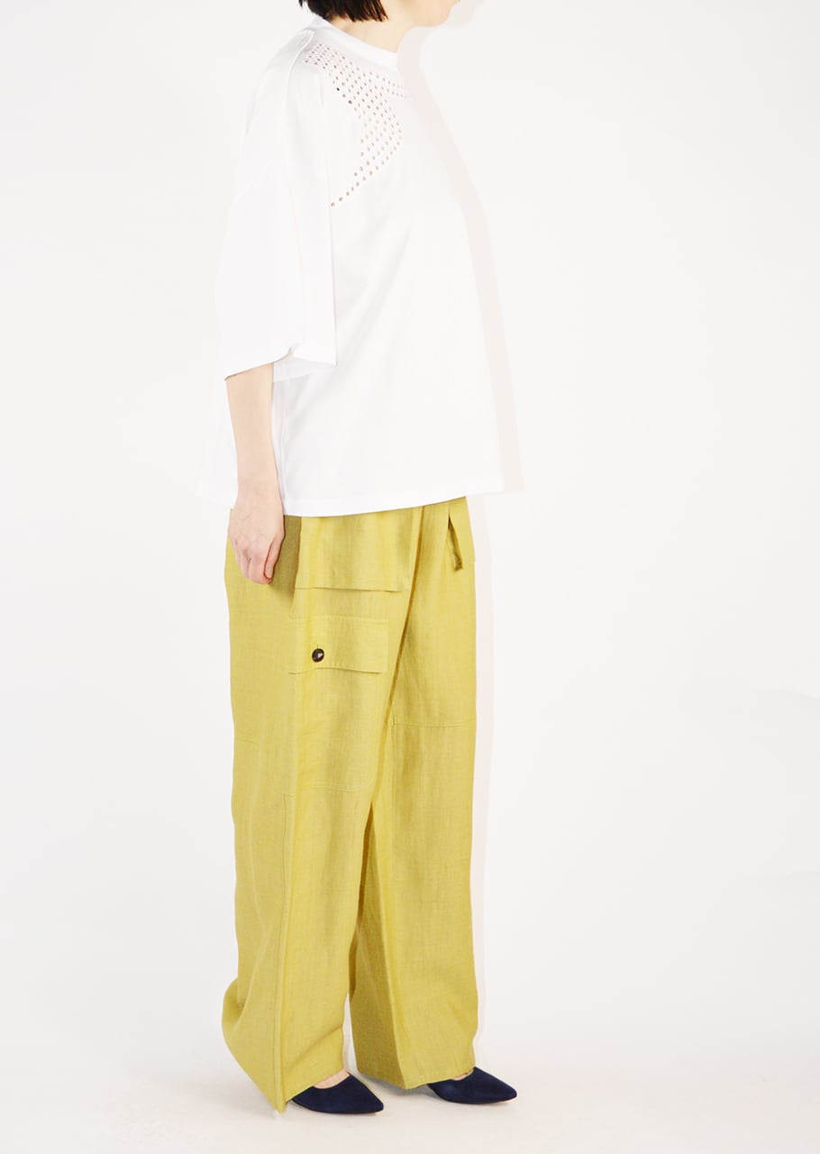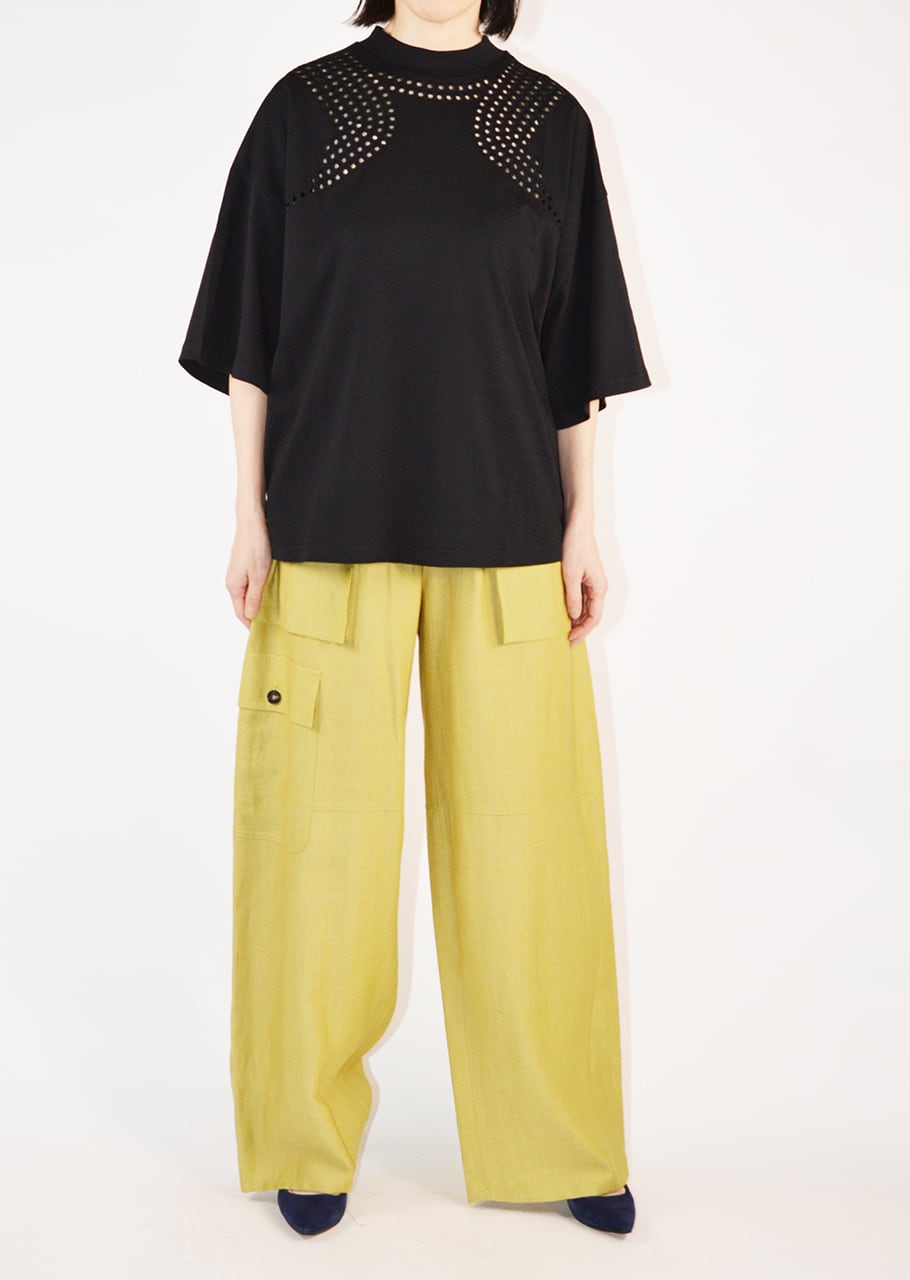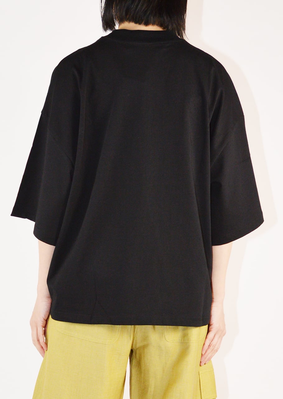 コットン100%のとても滑らかな肌触りのTシャツです。肩のメッシュ使いが大人っぽくフェミニンな印象です。 ややゆったりとしたシルエットでどんなプロポーションにもフィットし、着心地も抜群のアイテムです。