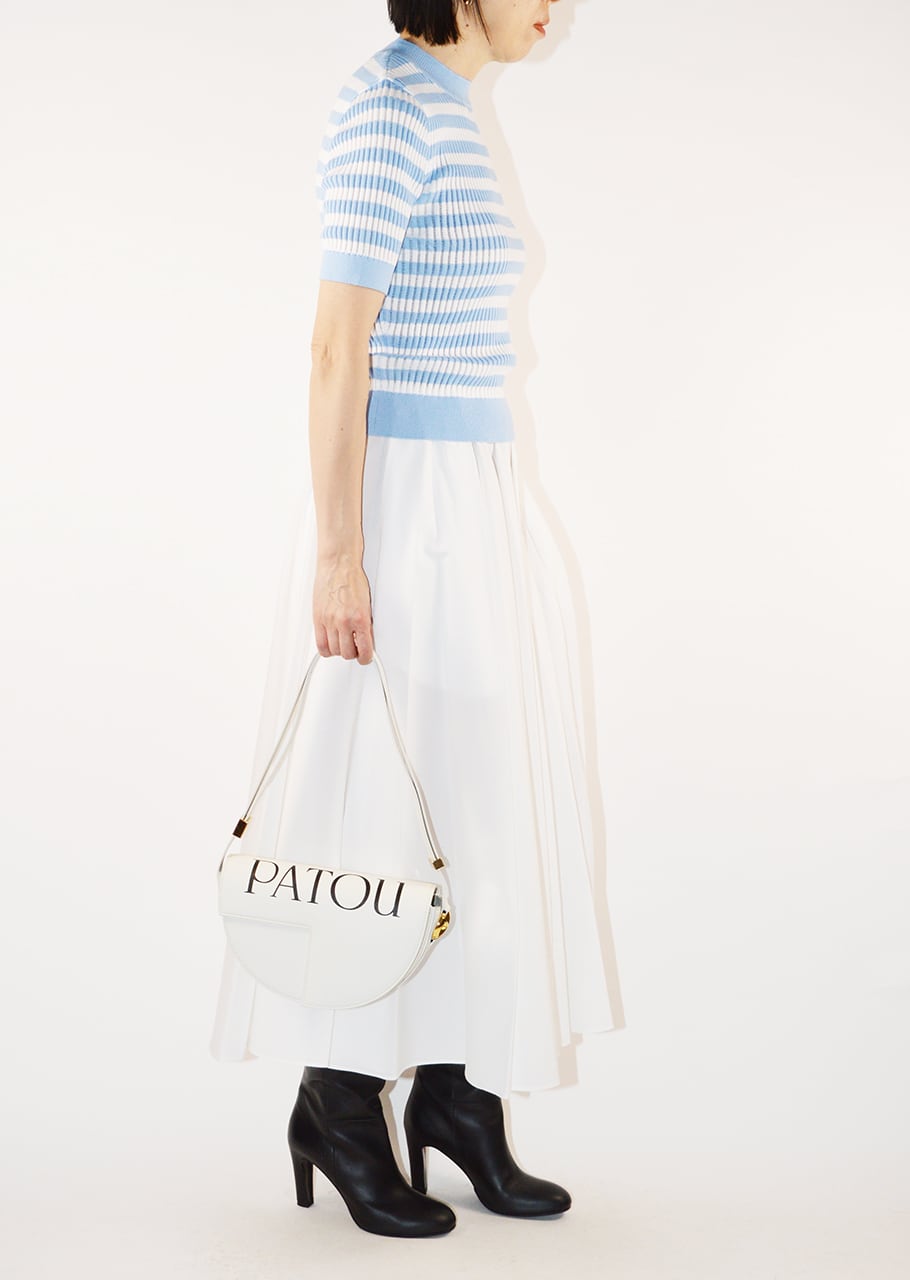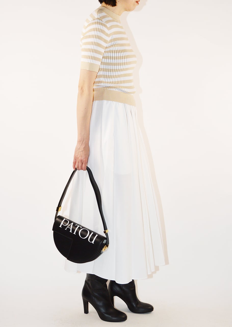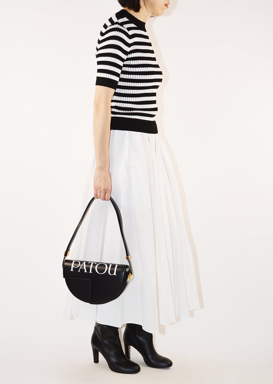 コンパクトなフォルムはボリュームボトムとのスタイリングがおすすめです。ジャケットやブルゾンのインナーとしても着こなしやすいデザインです。